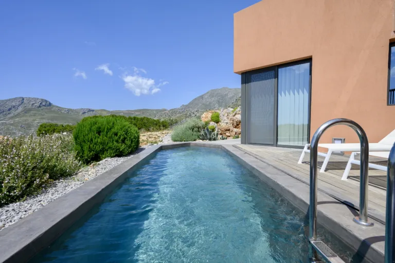 Κάθε βίλα απολαμβάνει την απόλυτη ιδιωτικότητα και την άνεση να έχει ιδιωτική πισίνα για να απολαμβάνετε τον ζεστό καιρό και να κάνετε μια δροσιστική βουτιά όλες τις ώρες της ημέρας.