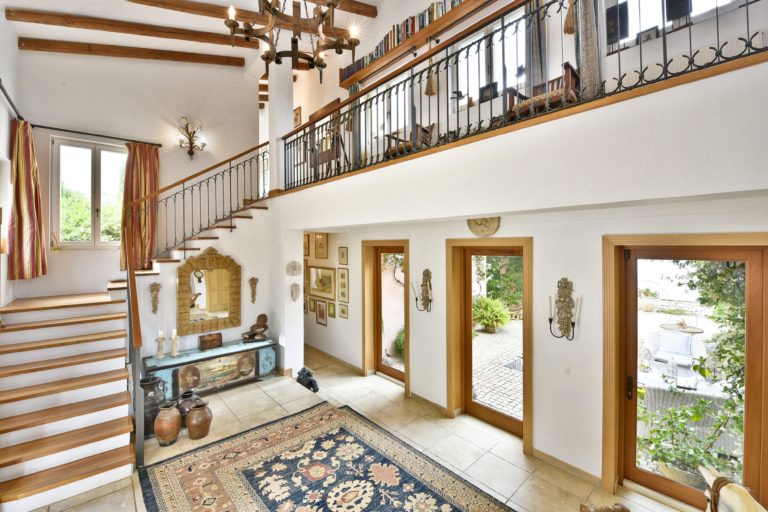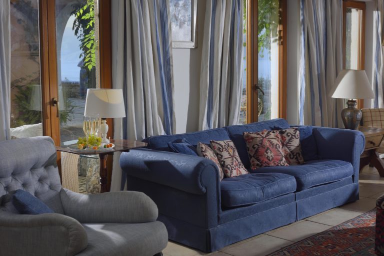 Μπαίνοντας στην κύρια κατοικία, θα σας υποδεχτεί ένας μεγάλος διάδρομος διπλού ύψους που κοσμείται από αποικιοκρατικού τύπου σπαρταριστές σκάλες - ένα εκπληκτικό προοίμιο για τη χλιδή που σας περιμένει στο εσωτερικό της. Οι πόρτες της βεράντας από το δάπεδο μέχρι την οροφή σας καλούν, αποκαλύπτοντας ένα πανόραμα που προκαλεί δέος και ξεπερνά κάθε περιγραφή. Το ευρύχωρο καθιστικό, στολισμένο με ένα μεγαλοπρεπές πέτρινο τζάκι, επεκτείνεται απρόσκοπτα στη βεράντα, προσφέροντας ένα ιδανικό σκηνικό για εκλεπτυσμένες συγκεντρώσεις και ψυχαγωγία.