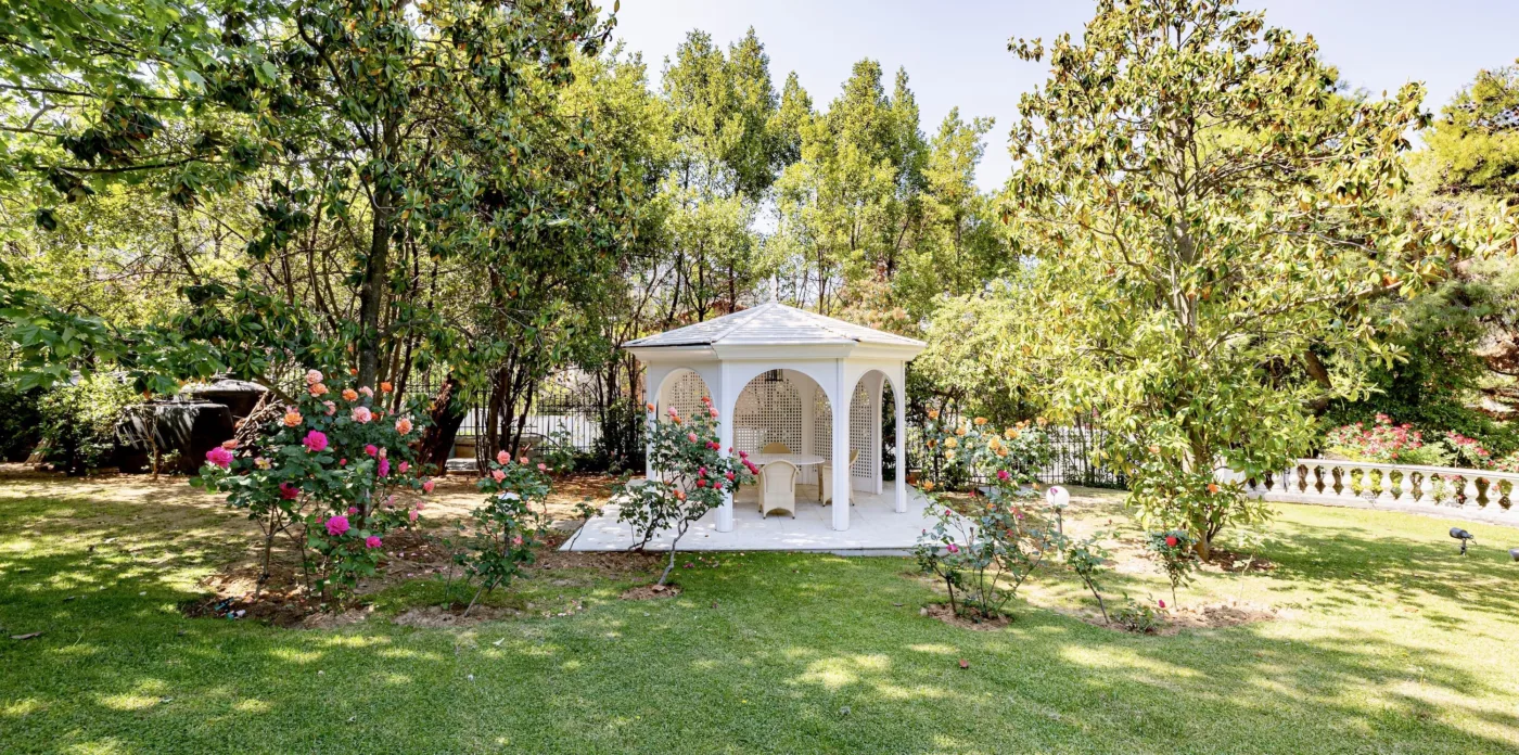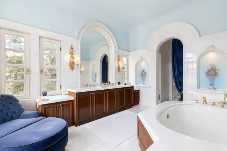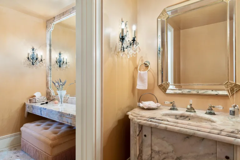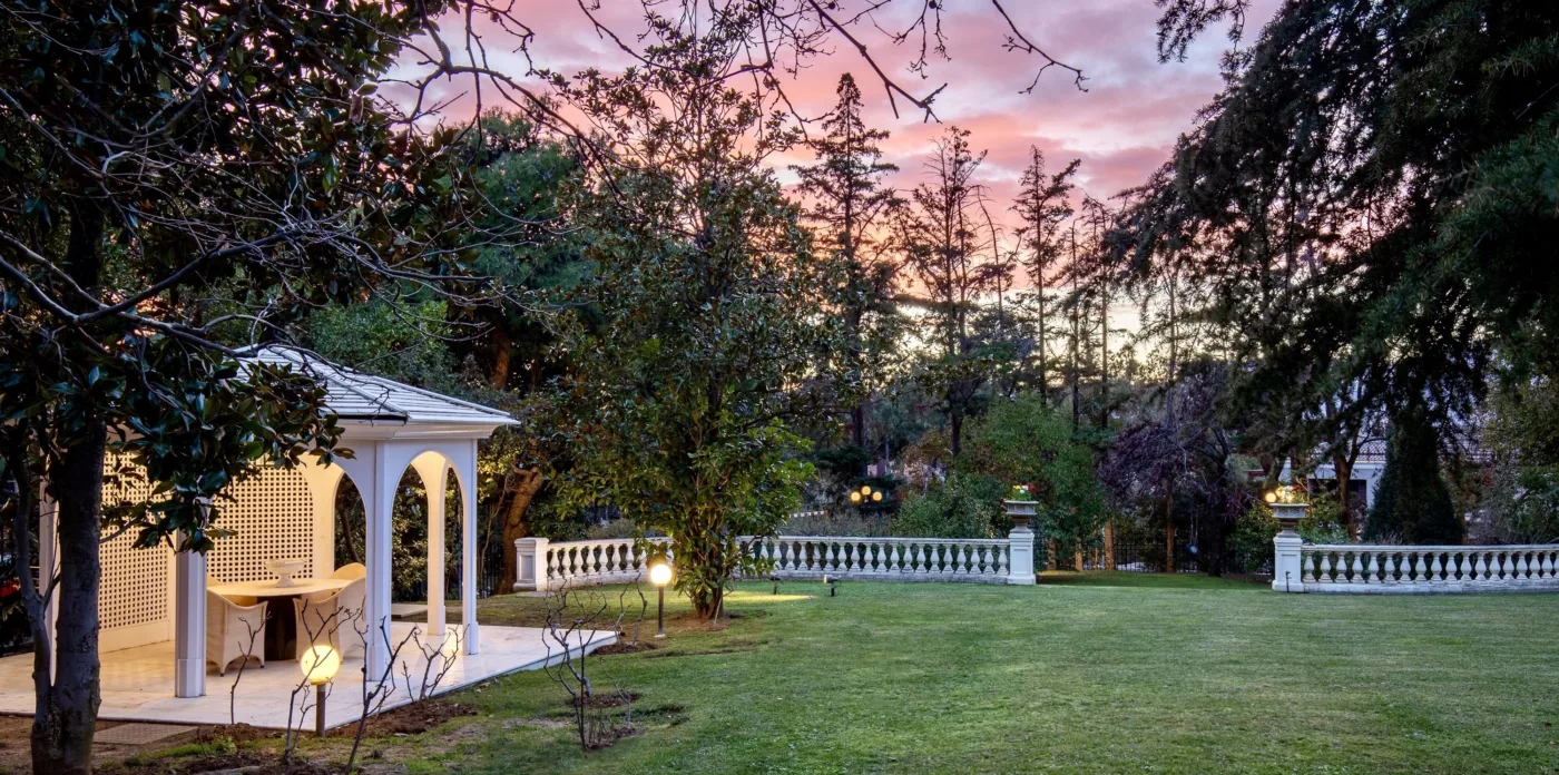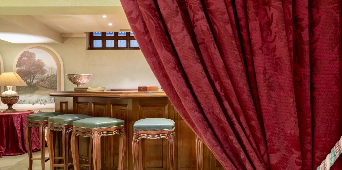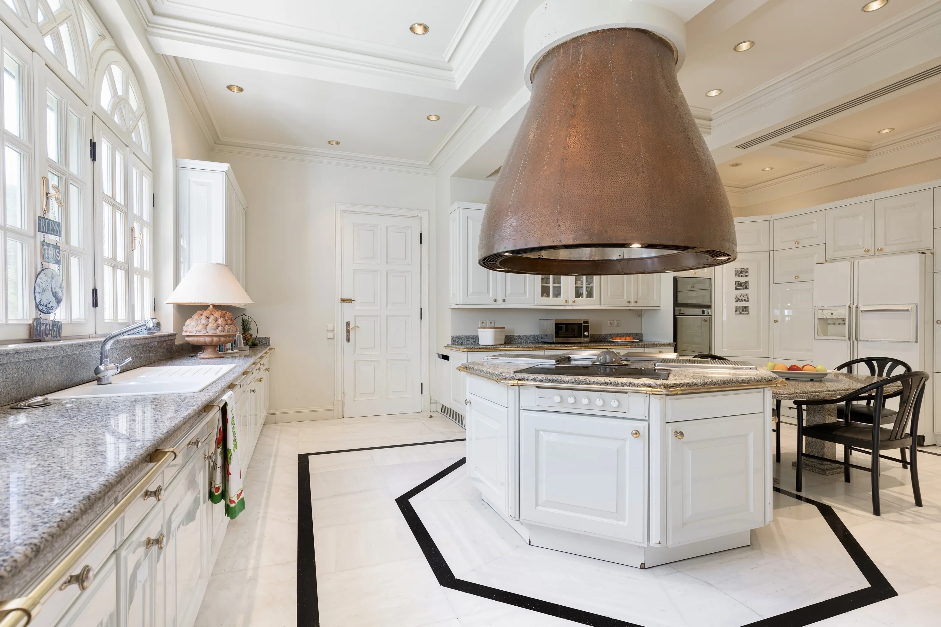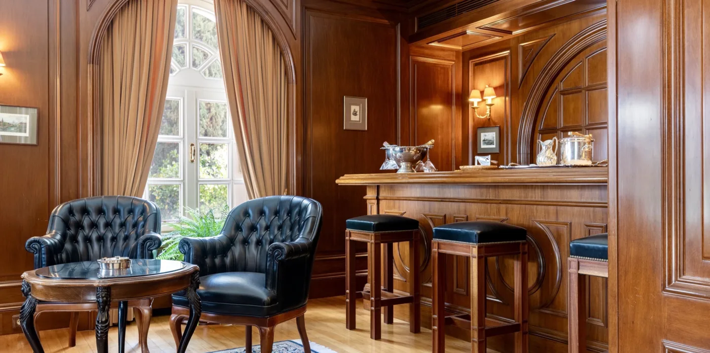 Το φυσικό φως εισέρχεται στο δωμάτιο μέσω ενός εκπληκτικού φωτιστικού οροφής. Κλασικά χρωματικά θέματα όπως το μπορντό, το μπλε του βεραμάν, το απαλό κρεμ και το ανοιχτό πράσινο κυριαρχούν σε όλο το αρχοντικό. Τοξωτές γυάλινες πόρτες και παράθυρα, βελούδινα έπιπλα εποχής και πλούσια ξύλινη επένδυση είναι μερικά από τα διακοσμητικά στοιχεία που θυμίζουν μια αριστοκρατική αίσθηση. Υπάρχει άφθονος χώρος για να χαλαρώσετε και να διασκεδάσετε, είτε δίπλα στο τζάκι στο καθιστικό ή στη βιβλιοθήκη είτε στο σαλόνι και την τραπεζαρία.