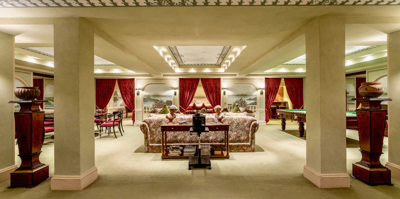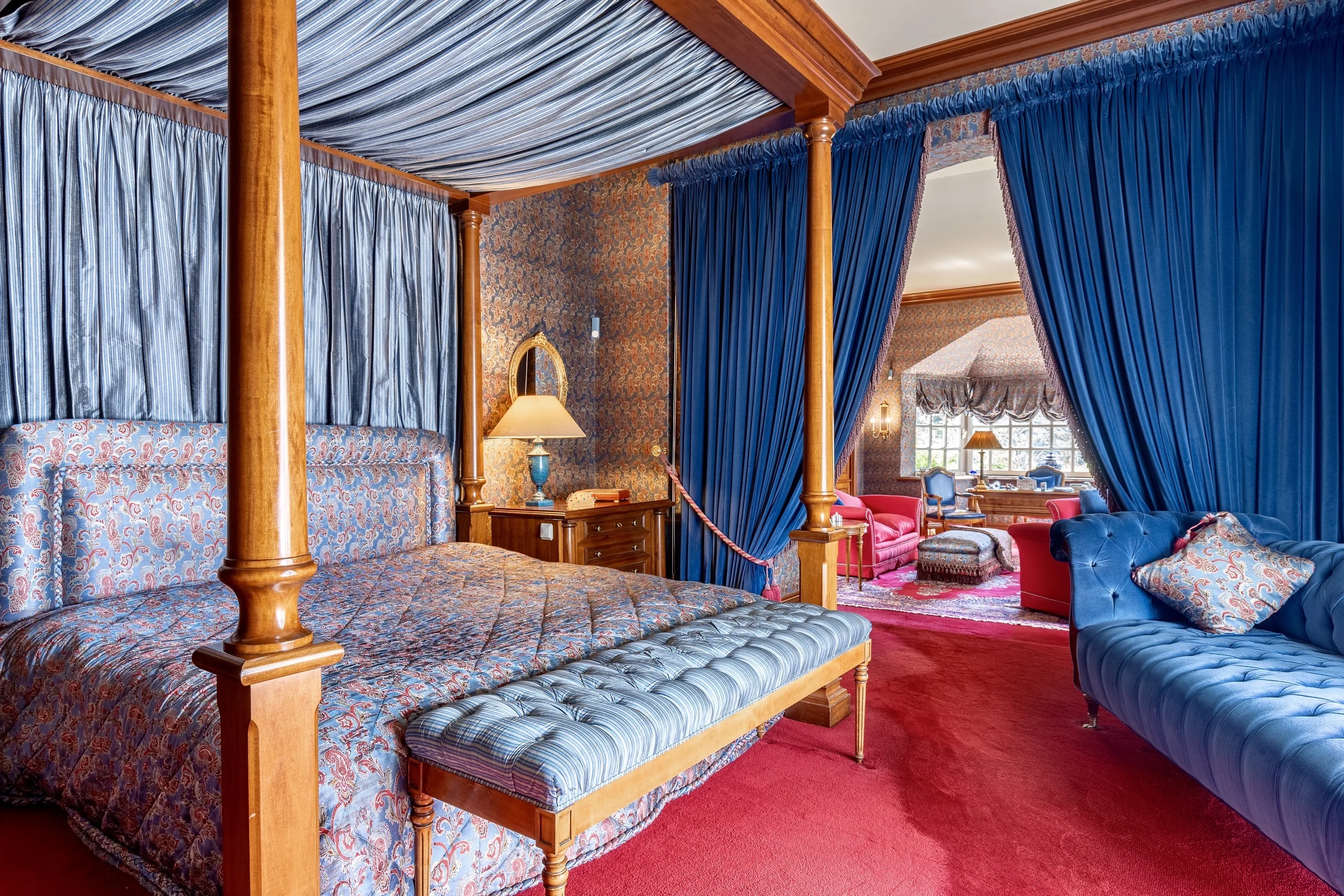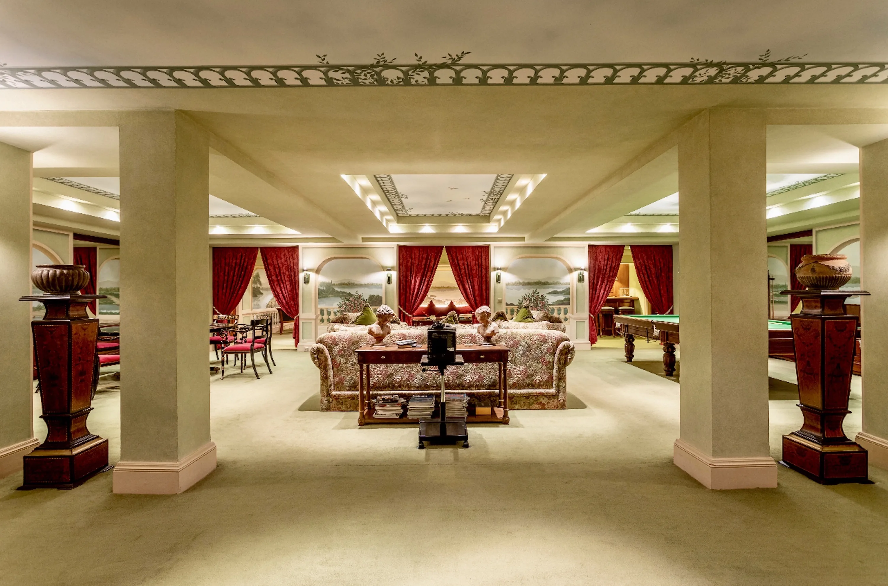 Στα δύο ανώτερα επίπεδα υπάρχουν έντεκα ευάερα και ευρύχωρα υπνοδωμάτια, το καθένα διακοσμημένο με γούστο. Ακριβώς κάτω από το κύριο επίπεδο όμορφα ζωγραφισμένοι στο χέρι τοίχοι που απεικονίζουν τοπία διακοσμούν το δωμάτιο παιχνιδιών και το home theater. Ένα γυμναστήριο και μια σάουνα βρίσκονται επίσης σε αυτό το επίπεδο.