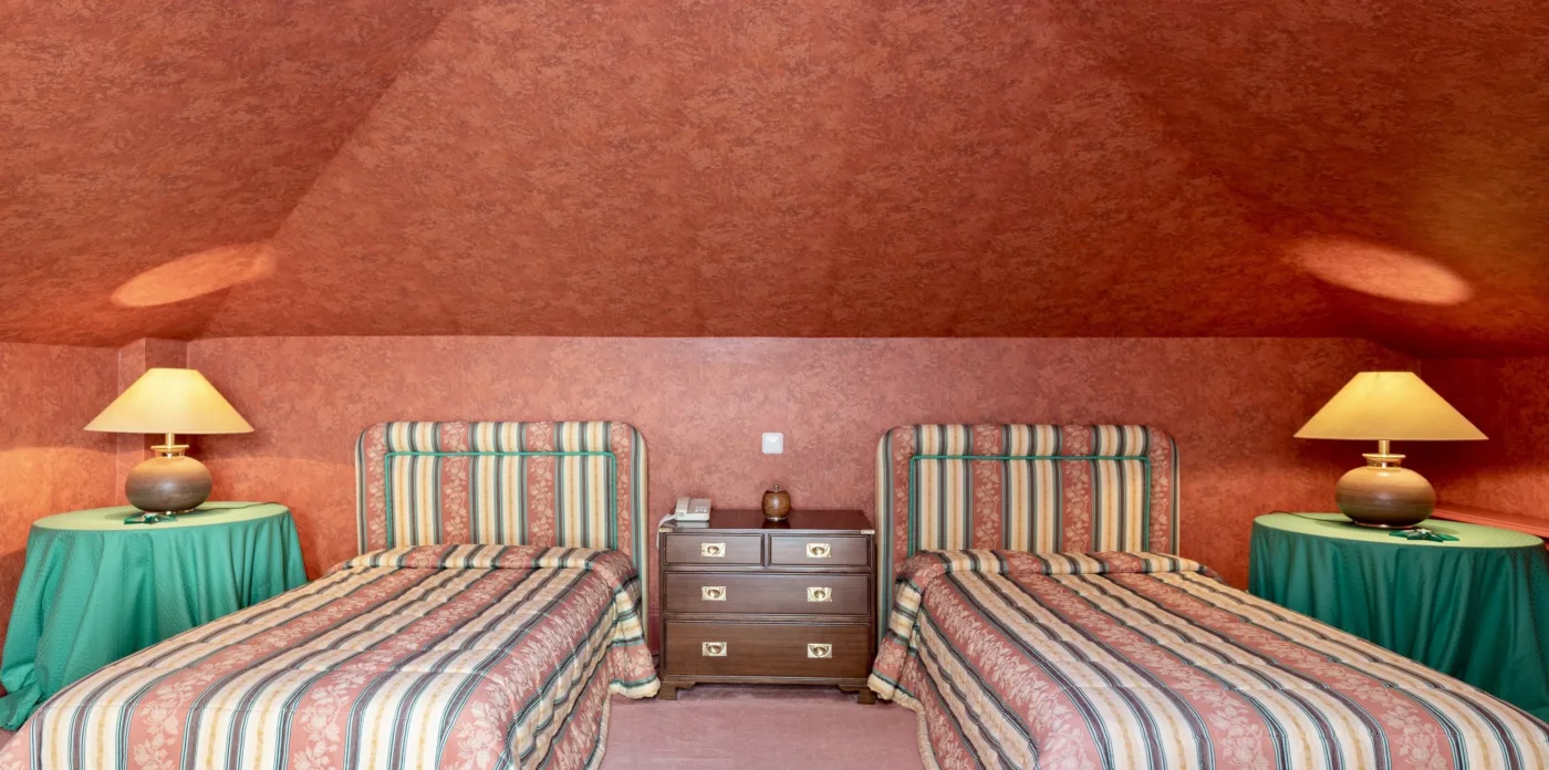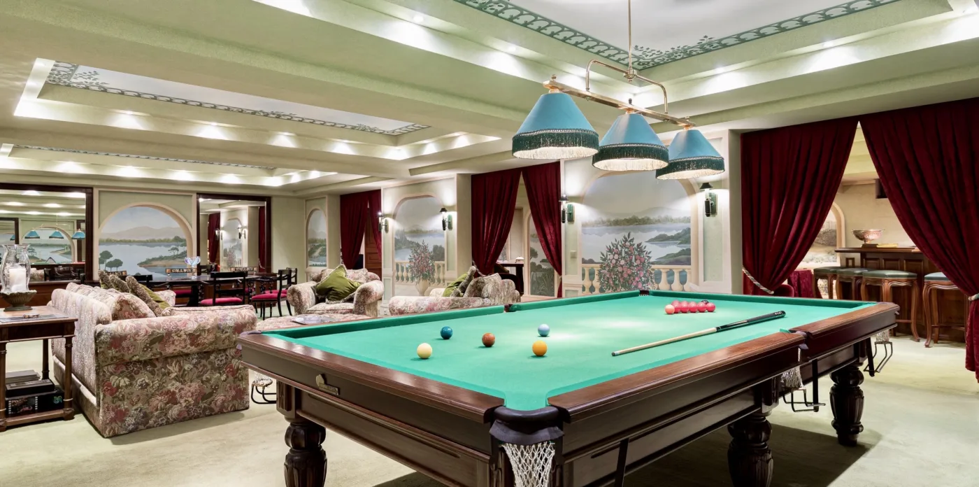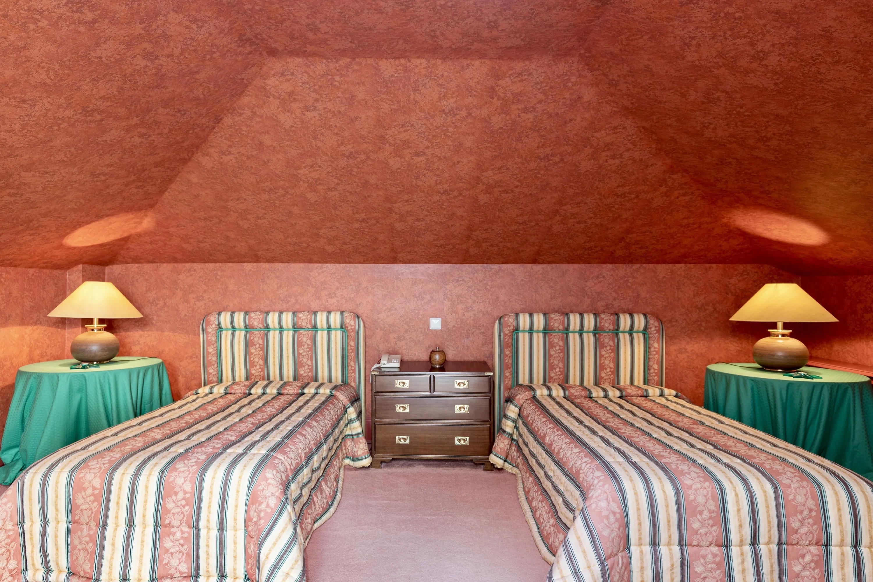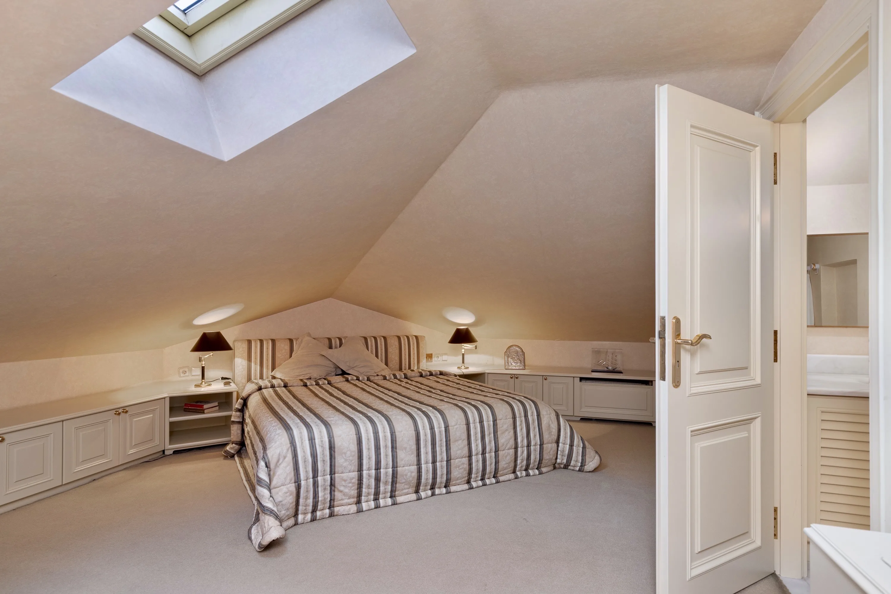 Στα δύο ανώτερα επίπεδα υπάρχουν έντεκα ευάερα και ευρύχωρα υπνοδωμάτια, το καθένα διακοσμημένο με γούστο. Ακριβώς κάτω από το κύριο επίπεδο όμορφα ζωγραφισμένοι στο χέρι τοίχοι που απεικονίζουν τοπία διακοσμούν το δωμάτιο παιχνιδιών και το home theater. Ένα γυμναστήριο και μια σάουνα βρίσκονται επίσης σε αυτό το επίπεδο.
