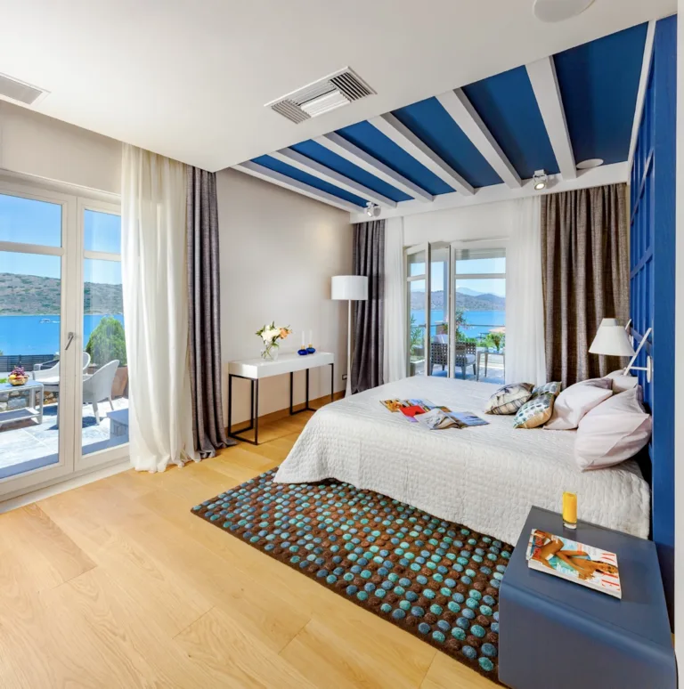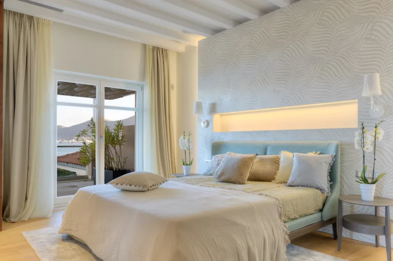 Στο ανώτερο επίπεδο βρίσκεται η σουίτα του κύριου υπνοδωματίου. Εκτός από τα πέντε υπνοδωμάτια στο κυρίως σπίτι υπάρχει ένα αυτόνομο διαμέρισμα ιδανικό για επιπλέον διαμονή επισκεπτών. Διαθέτει ενιαίο χώρο καθιστικού, κουζίνα και υπνοδωμάτιο με διπλό κρεβάτι.