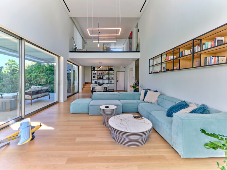 Μια εσωτερική σκάλα και ένας ανελκυστήρας KONE συνδέουν άψογα το ισόγειο με τον ημιώροφο και το υπόγειο. Ο ημιώροφος, που περιλαμβάνει 89 τετραγωνικά μέτρα, προσφέρει δύο επιπλέον κύρια υπνοδωμάτια, το καθένα με ιδιωτικό μπάνιο, και ένα άνετο καθιστικό, παρέχοντας άπλετο χώρο για την οικογένεια και τους επισκέπτες.