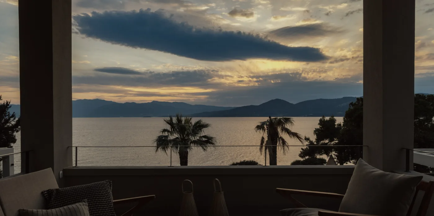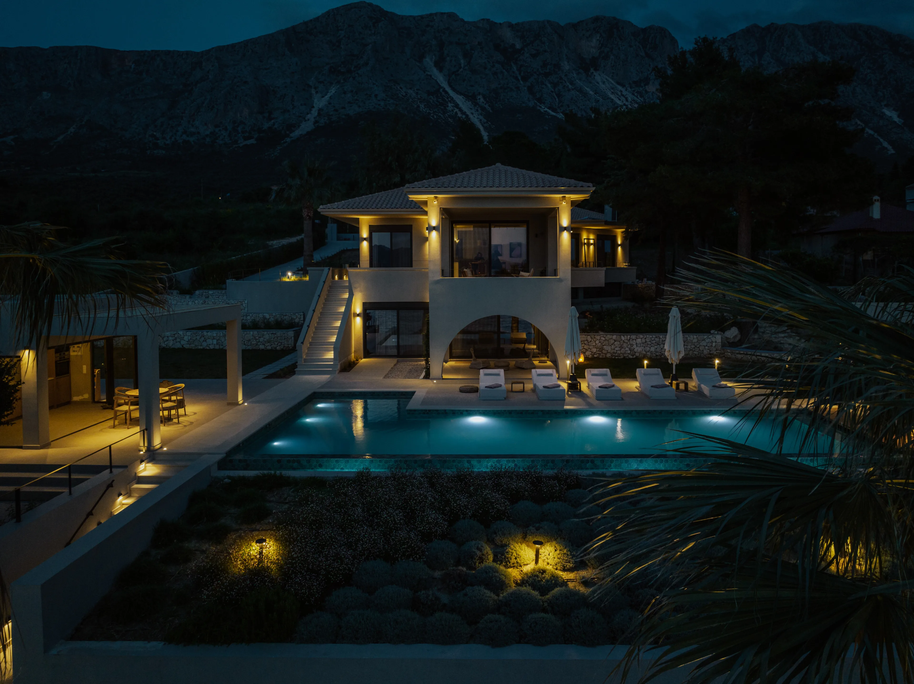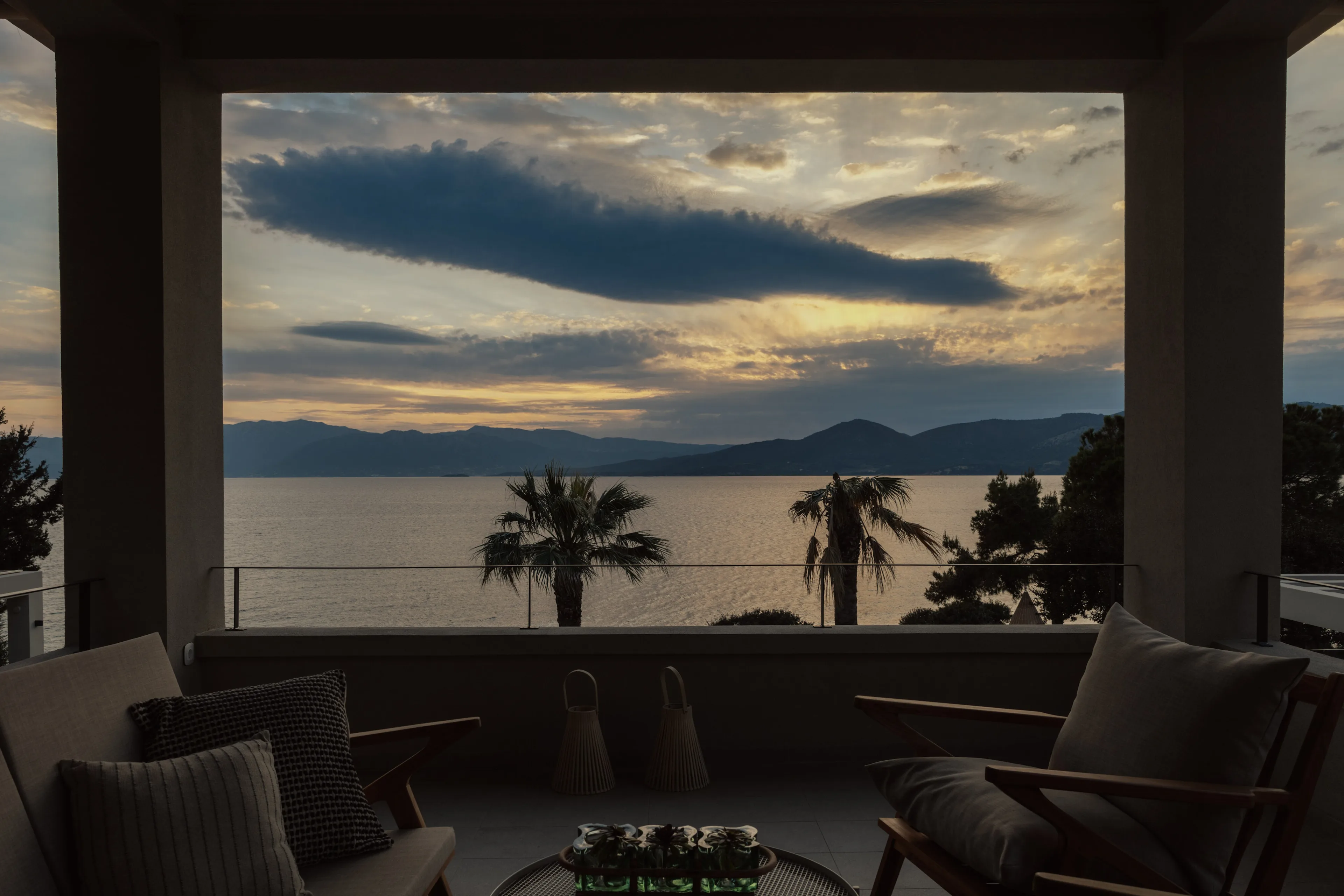 Η μαγευτική θέα στο ηλιοβασίλεμα και η ηρεμία είναι οι παράγοντες που κερδίζουν τη βίλα.