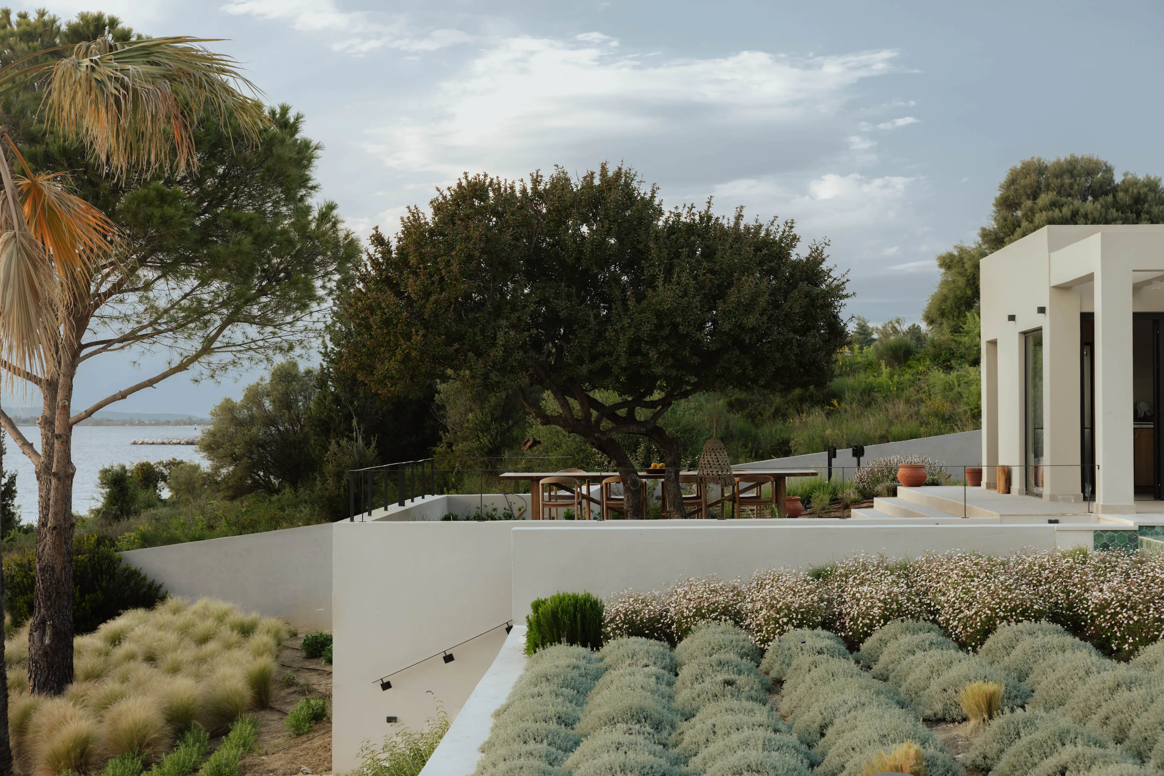 Σε όλο το περιφραγμένο κτήμα των 4.850 τ.μ. υπάρχουν καταπράσινες εκτάσεις με γκαζόν και διαμορφωμένους κήπους. Εκτεταμένες βεράντες και αυλές προσφέρουν άφθονο χώρο για υπαίθρια διαβίωση, φαγητό και συναναστροφή με τους αγαπημένους σας, απολαμβάνοντας τον ήλιο. Υπάρχουν τόσα πολλά όμορφα σημεία και γωνιές για να απολαύσετε. Η πισίνα υπερχείλισης είναι σίγουρα ένα σημείο αναφοράς, αλλά υπάρχει επίσης η υπαίθρια τραπεζαρία και όλες οι διαφορετικές ξαπλώστρες, αιώρες και κρεμαστές καρέκλες.