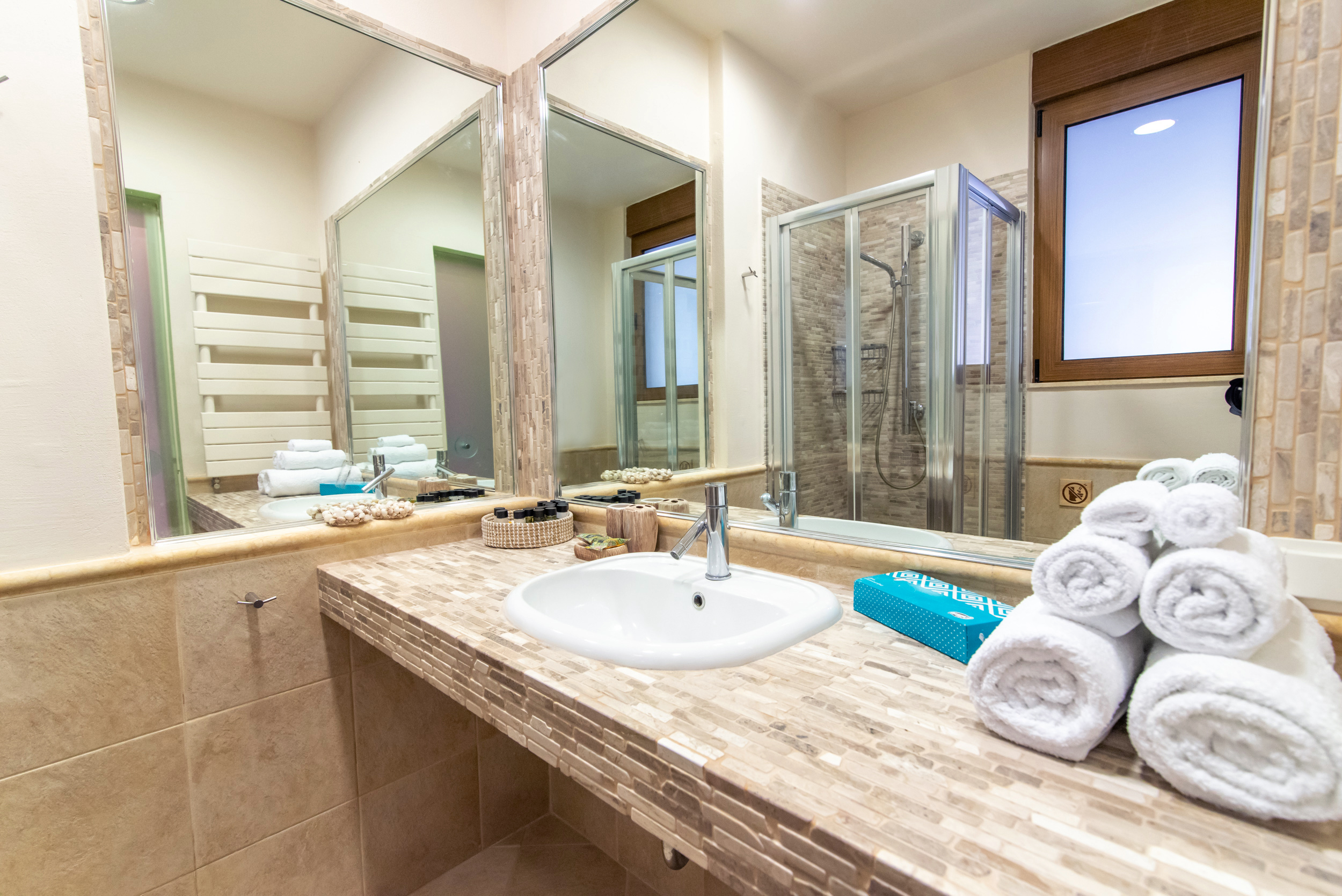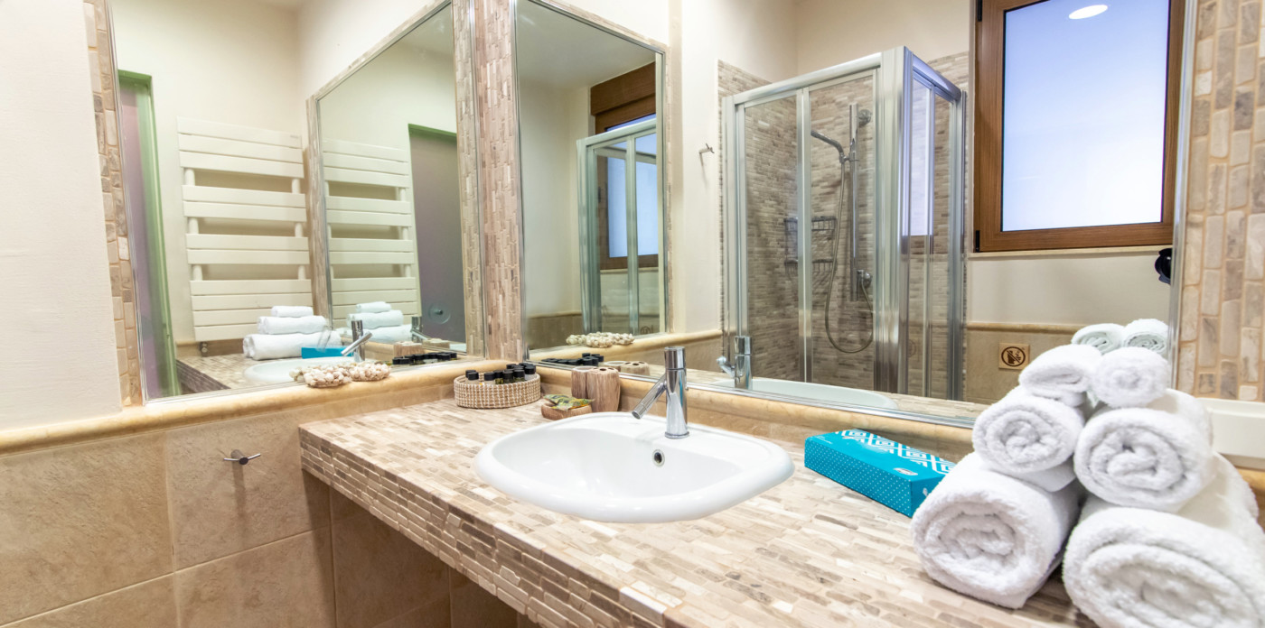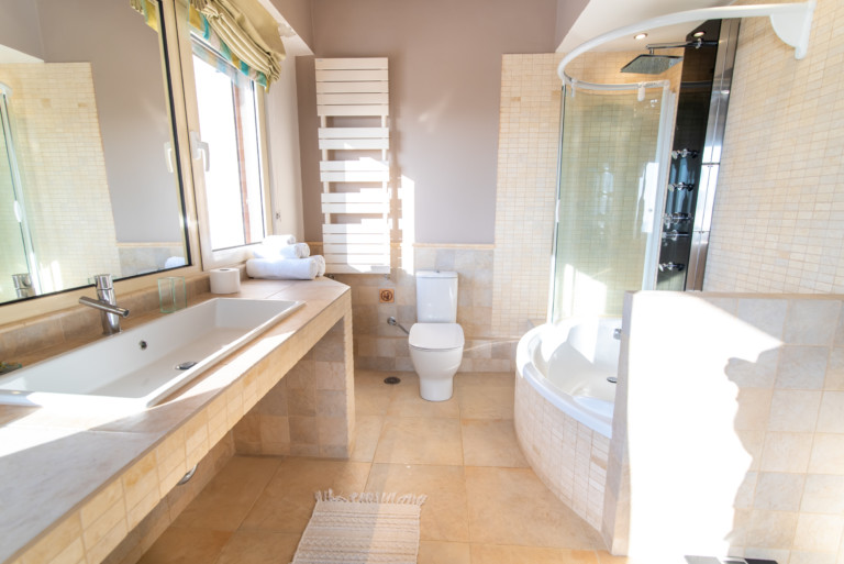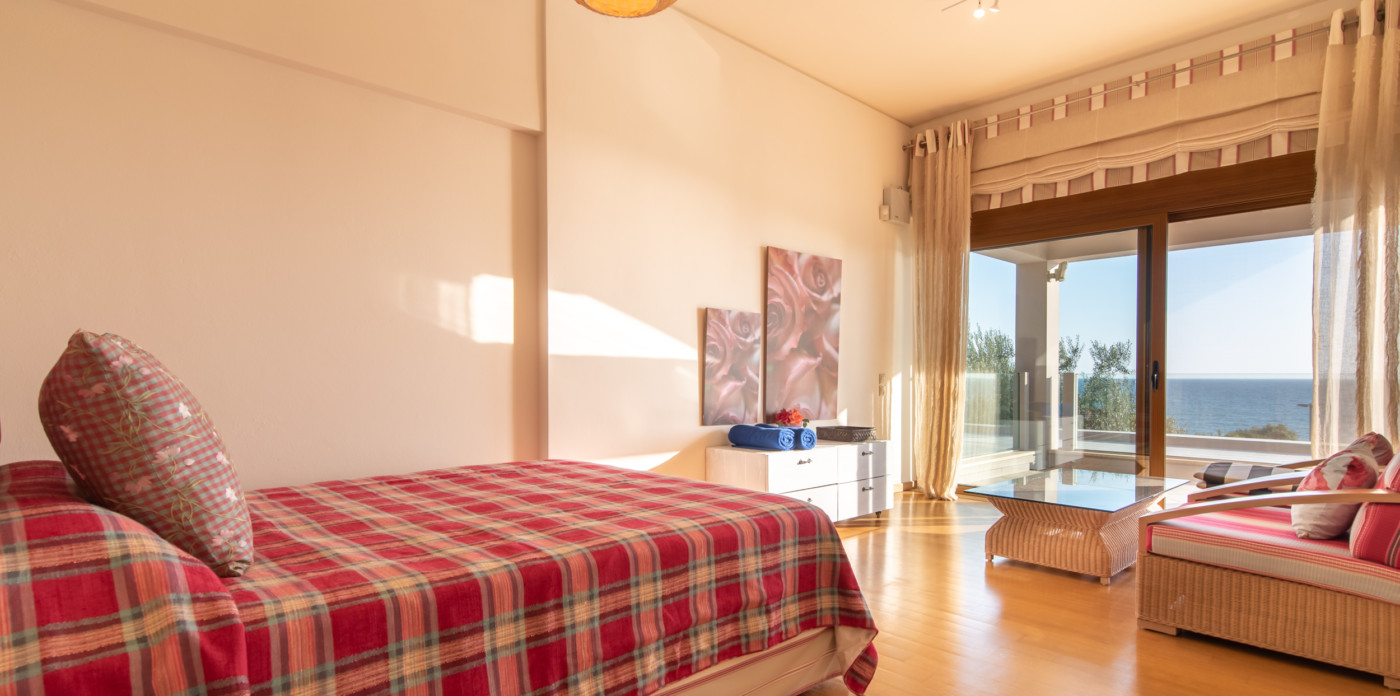 Η εντυπωσιακή κύρια σουίτα διαθέτει ένα μεγάλο καθιστικό με άνετους καναπέδες και ένα ιδιωτικό μπαλκόνι με έπιπλα εξωτερικού χώρου για να χαλαρώσετε και να απολαύσετε την εκπληκτική θέα στη θάλασσα και τα ηλιοβασιλέματα. Η κύρια είναι πλήρης με ένα ιδιωτικό μπάνιο με ιταλικά πλακάκια, μπανιέρα με μπανιέρα και ντους Jet Jacuzzi σύστημα.