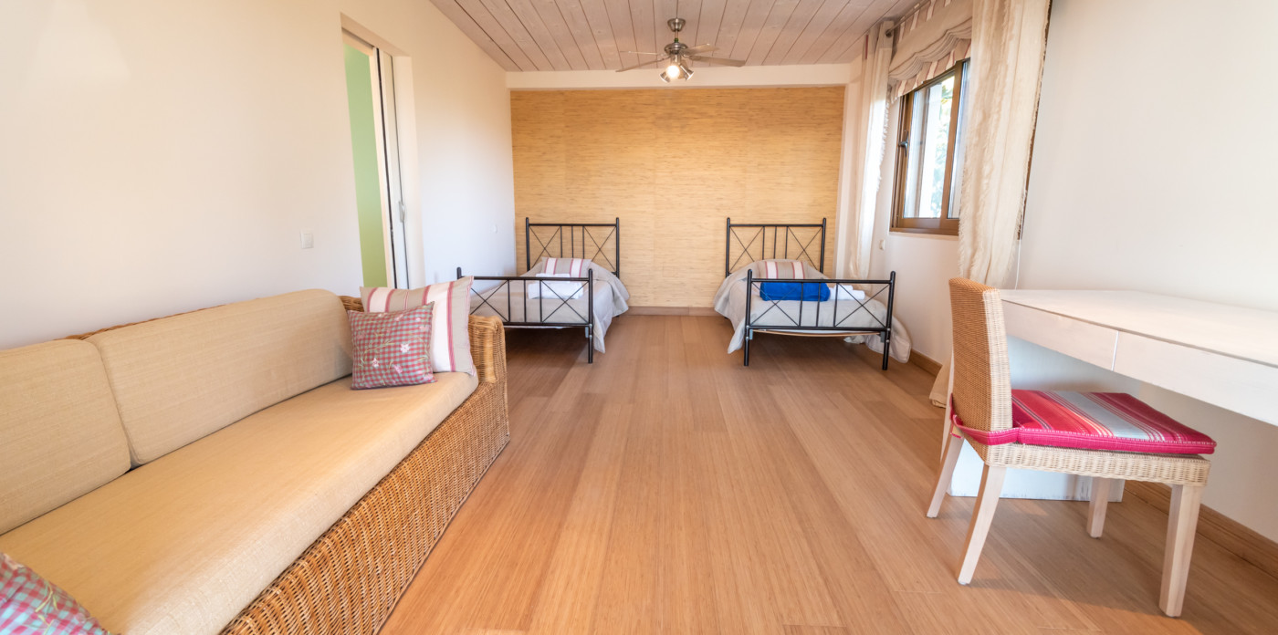 Δύο δίκλινες σουίτες βρίσκονται στο ισόγειο και διαθέτουν διπλά κρεβάτια king size, ιδιωτικό μπάνιο, άνετους καναπέδες και μεγάλες συρόμενες πόρτες που οδηγούν στον κήπο και την πισίνα.