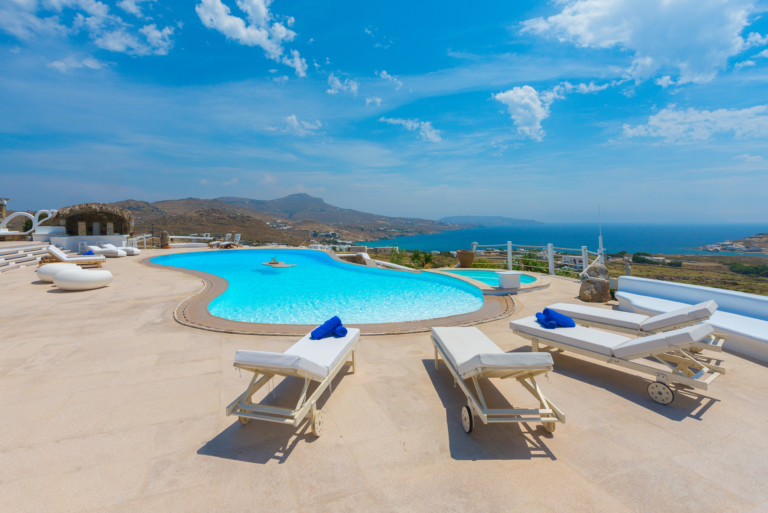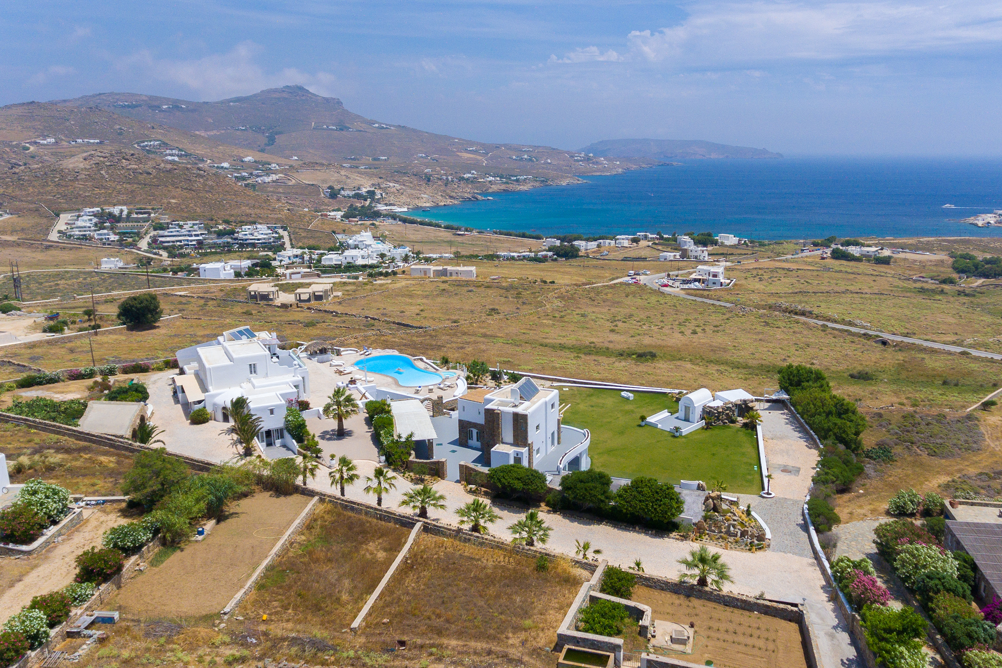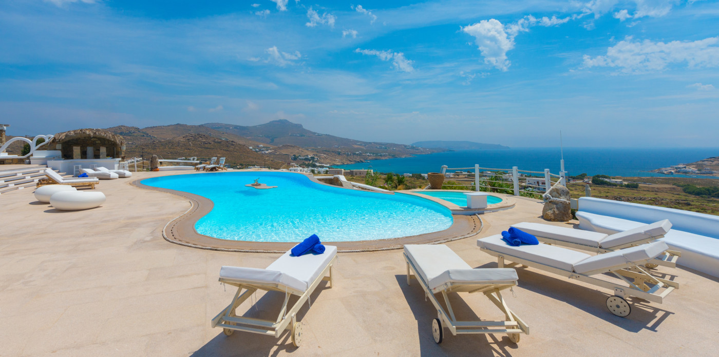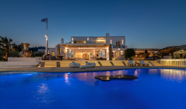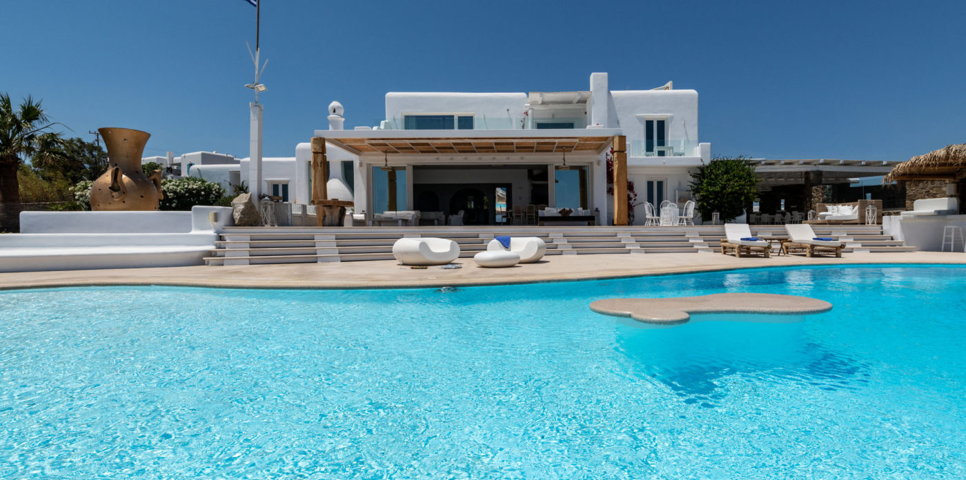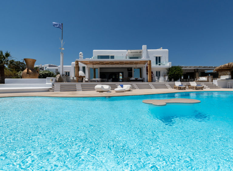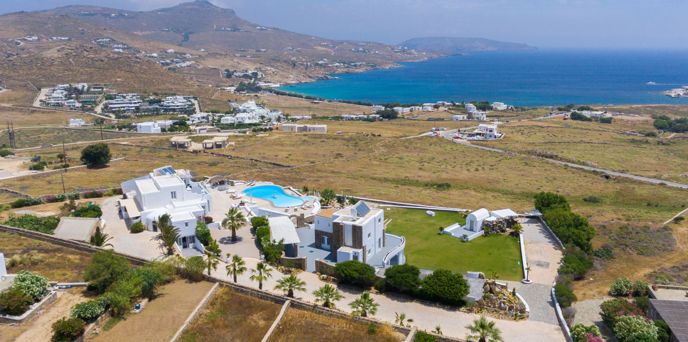 Γαλήνια ατμόσφαιρα, εκπληκτική θέα και δύο από τις πιο κοσμοπολίτικες παραλίες της Μυκόνου: θα τα βρείτε όλα στο Aegean Jewel. Όπως υποδηλώνει και το όνομά του, το αρχοντικό μοιάζει με παράδεισο. Βρίσκεται σε ένα οικόπεδο 7000τ.μ. ανάμεσα στο Καλό Λιβάδι & τον Καλαφάτη και αποτελείται από 3 παρακείμενα κτίρια των 1500τ.μ.