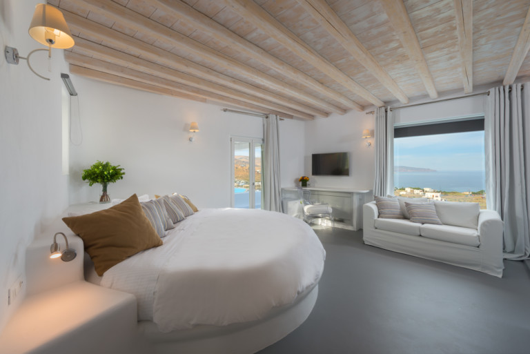 Το αρχοντικό διαθέτει 6 en suites και 7 κύρια υπνοδωμάτια με κομψή διακόσμηση σε μποέμικο στυλ. Μπορούν να φιλοξενήσουν το πολύ 30 άτομα. Οι σουίτες περιλαμβάνουν μια σουίτα νεονύμφων, μια σουίτα Junior και τέσσερις σουίτες Executive.