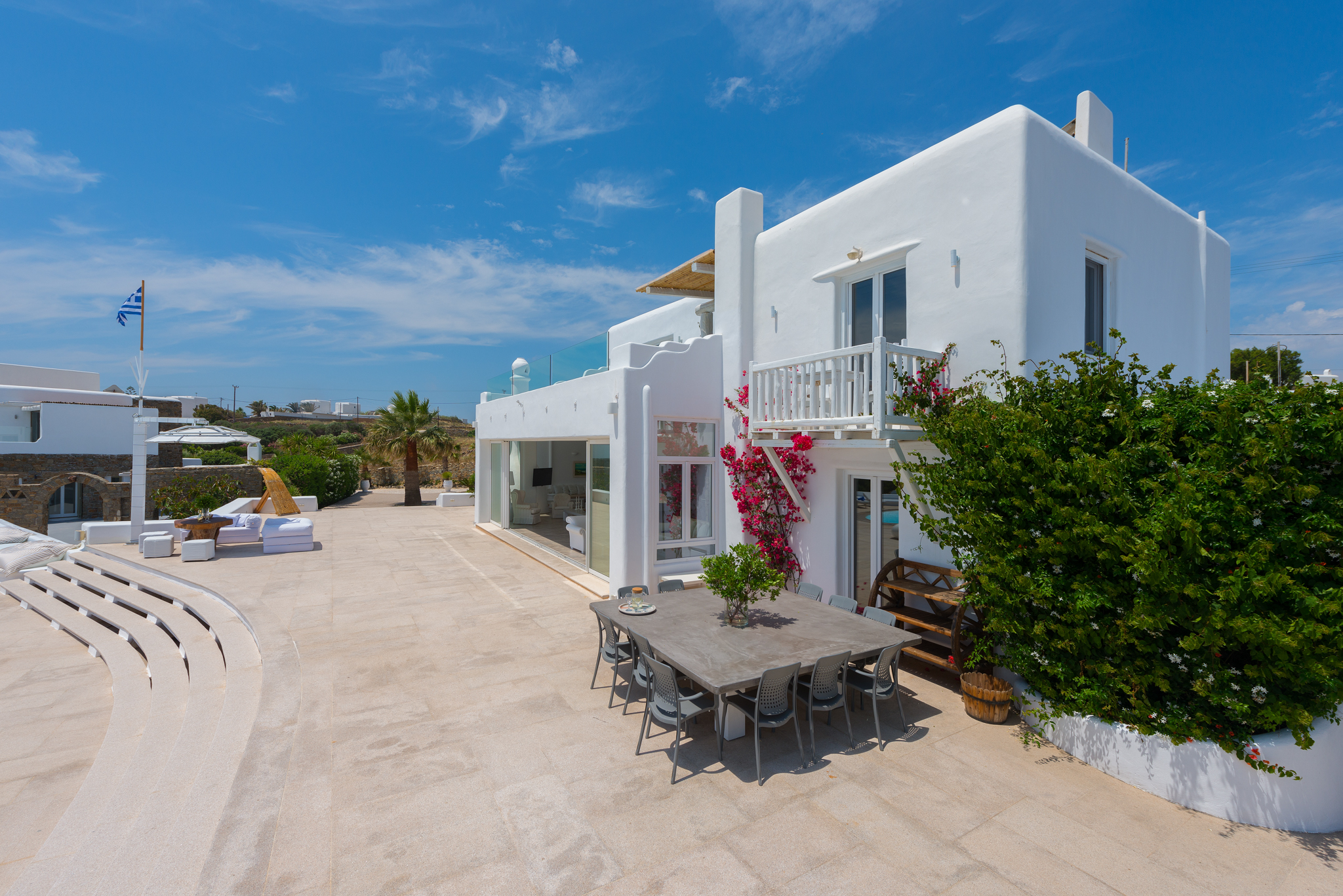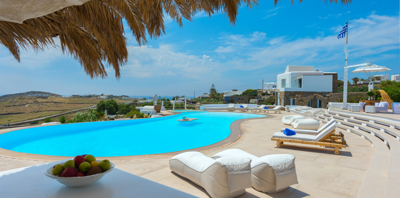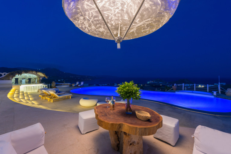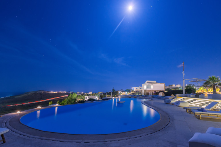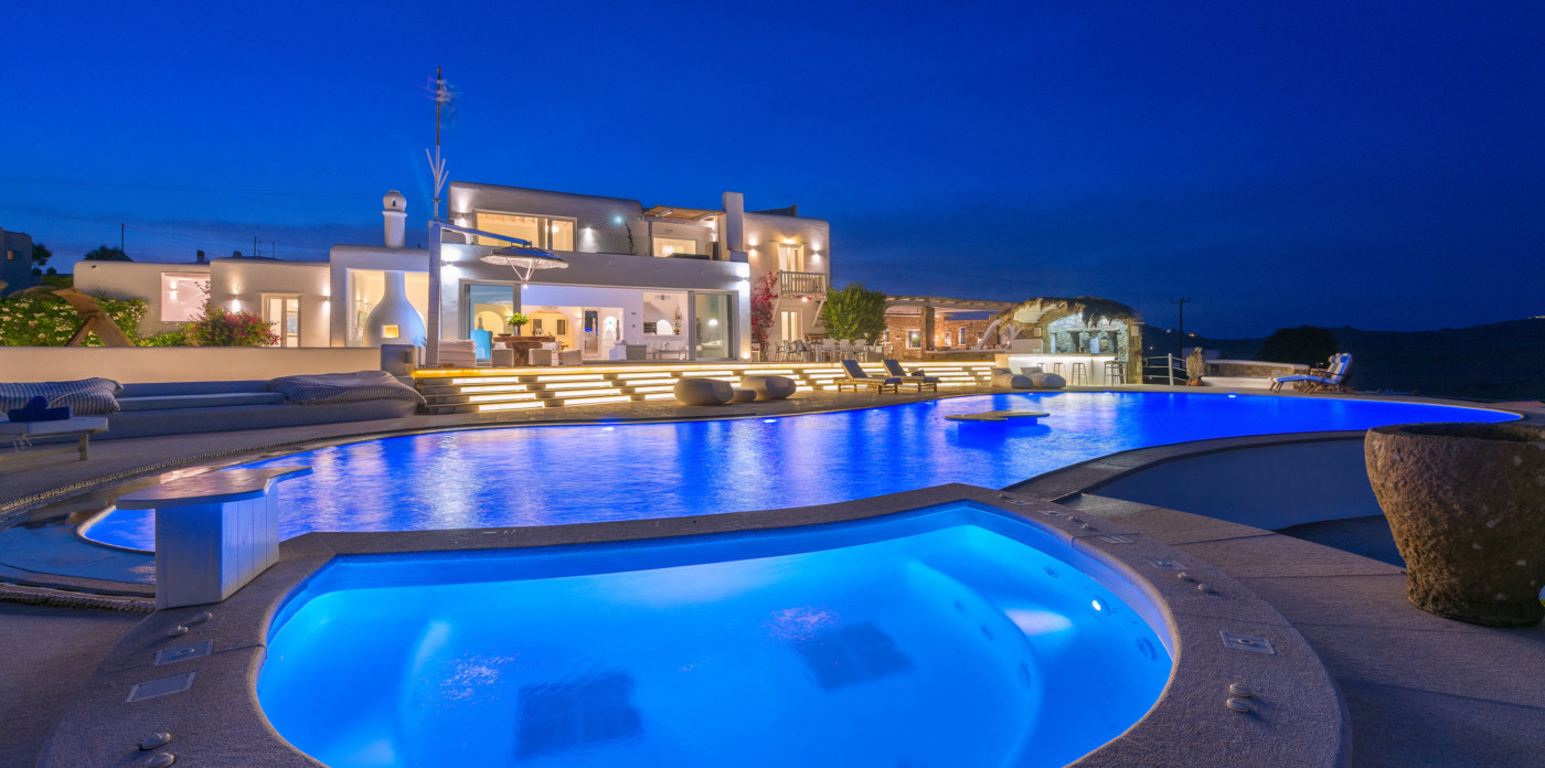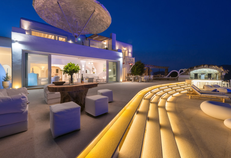 Μπροστά από τη βίλα, μια μεγάλη βεράντα και μια πισίνα υπερχείλισης απλώνονται προς τη θάλασσα, περιτριγυρισμένες από φουτουριστική επίπλωση. Μπορείτε εύκολα να περάσετε τη μέρα σας χαλαρώνοντας στις πολυθρόνες της βεράντας ή εξίσου εύκολα να κάνετε γυμναστική στο σύγχρονο, πλήρως εξοπλισμένο "technogym". Βρείτε μια ανάπαυλα από τη μεσημεριανή ζέστη στο τζακούζι και καθώς ο ήλιος δύει, μαγειρέψτε τοπικά θαλασσινά στο μπάρμπεκιου και απολαύστε την υπαίθρια τραπεζαρία. Για άνεση και ευκολία, το αρχοντικό διαθέτει ελικοδρόμιο, επιχειρηματικό κέντρο και για καθαρή διασκέδαση, διαθέτει επίσης εξοπλισμό για υπαίθριο κινηματογράφο.