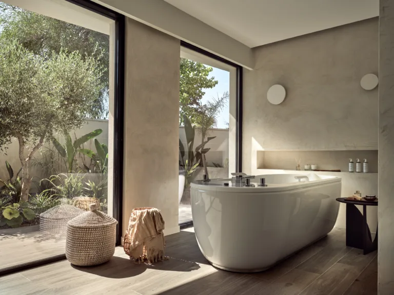 Οι εσωτερικοί χώροι των βιλών είναι σκόπιμα μίνιμαλ και άμεσα καταπραϋντικοί, ενώ όλα τα υπνοδωμάτια διαθέτουν ιδιωτικό μπάνιο. Στον εξωτερικό χώρο υπάρχει ιδιωτική πισίνα, καθώς και πολλές ήσυχες περιοχές για να απολαύσετε τον ήλιο ή να κρυφτείτε στη σκιά. Και αν κουραστείτε από την πισίνα, ακολουθήστε το μονοπάτι για να φτάσετε στην αμμώδη παραλία.