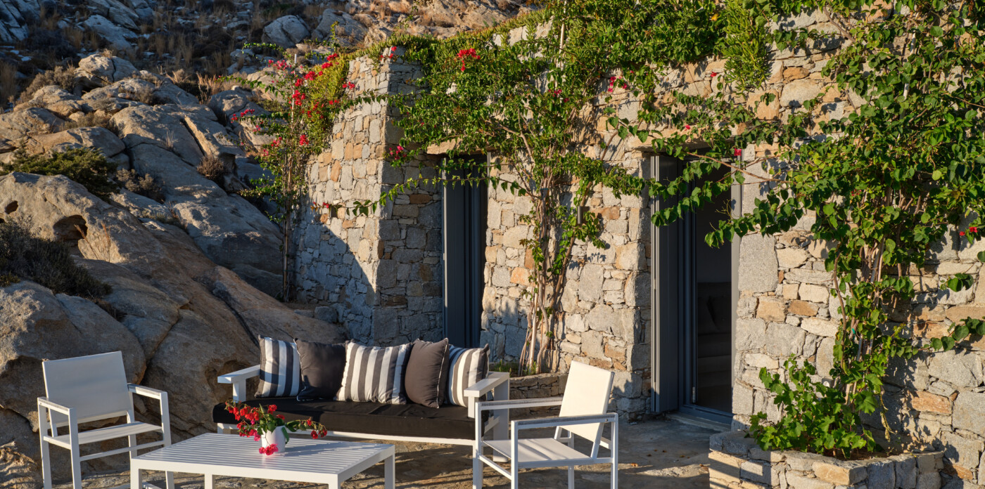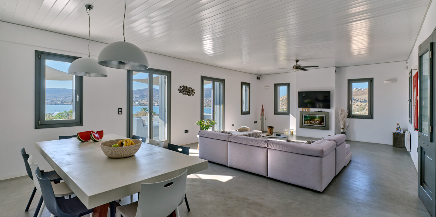 Η γοητευτική βίλα, προσφέρει ένα πραγματικό μείγμα σύγχρονης άνεσης και κυκλαδίτικης γοητείας. Το κυρίως σπίτι διαθέτει έναν ενιαίο χώρο καθιστικού με πλήρως εξοπλισμένη κουζίνα, εσωτερική τραπεζαρία και ένα κομψό σαλόνι με άμεση πρόσβαση στην εξωτερική πισίνα. Η βίλα διαθέτει πολλά ευρύχωρα υπνοδωμάτια, το καθένα με ιδιωτικό μπάνιο, ιδιωτικό μπαλκόνι και πανοραμική θέα στο Αιγαίο Πέλαγος.
