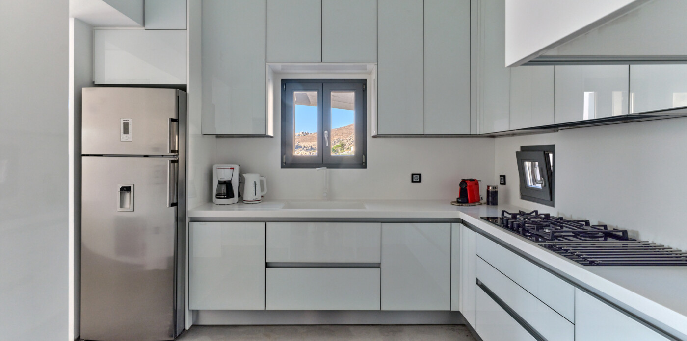 Μια ολοκαίνουργια μοντέρνα βίλα στο νησί της Πάρου με εκπληκτική θέα στη θάλασσα, κομψούς εξωτερικούς χώρους και εξαιρετική τοποθεσία δύο λεπτά μακριά από την πιο φημισμένη παραλία του νησιού, τις Κολυμπήθρες. Η εγγύτητά της στην παραλία Κολυμπήθρες, μόλις 300 μέτρα μακριά, επιτρέπει στους επισκέπτες να απολαμβάνουν τις μαλακές, αμμώδεις ακτές και τα κρυστάλλινα νερά με ευκολία.