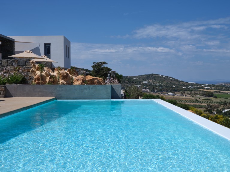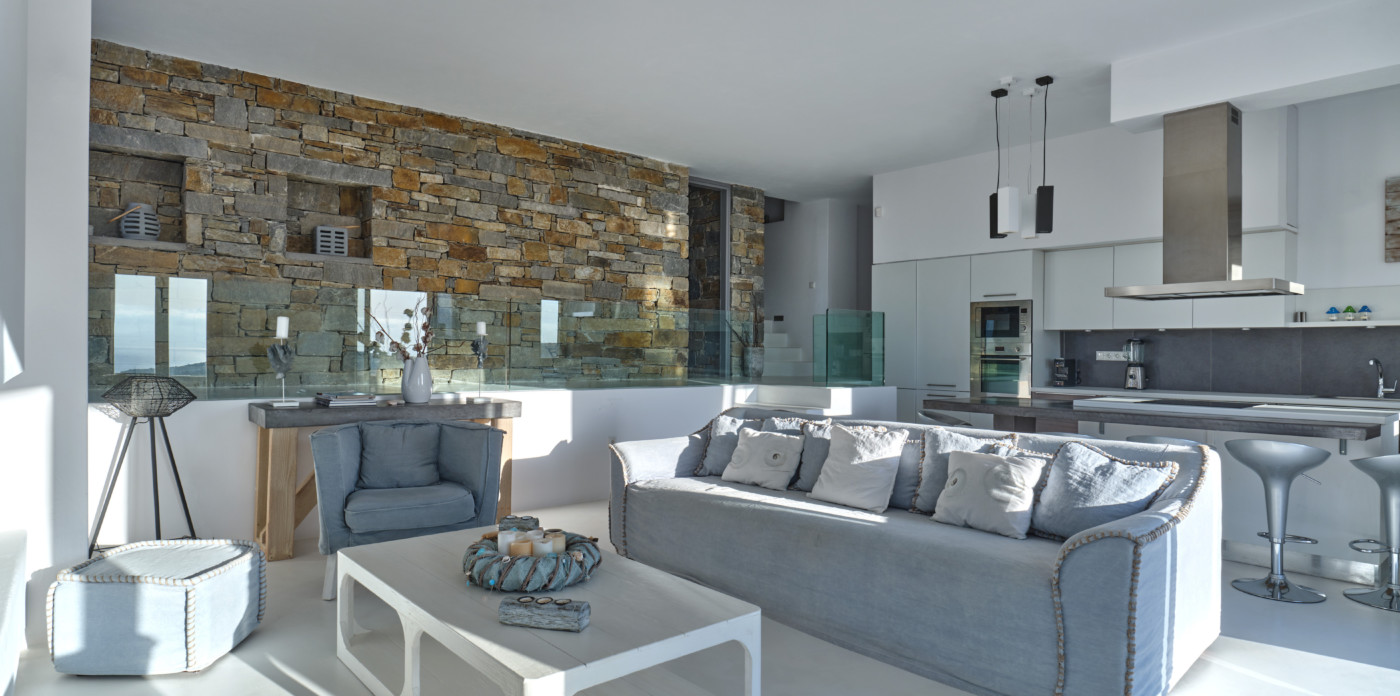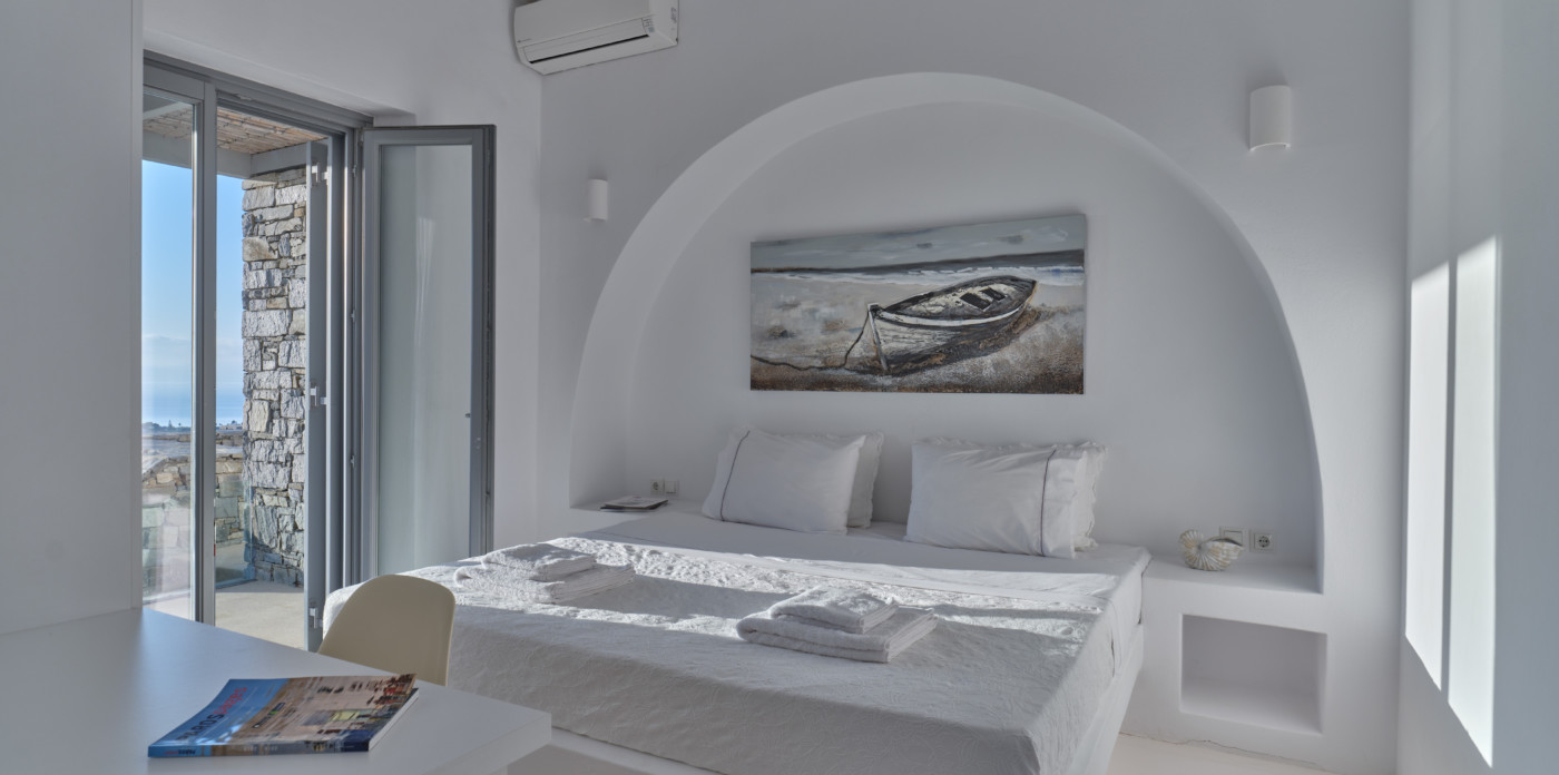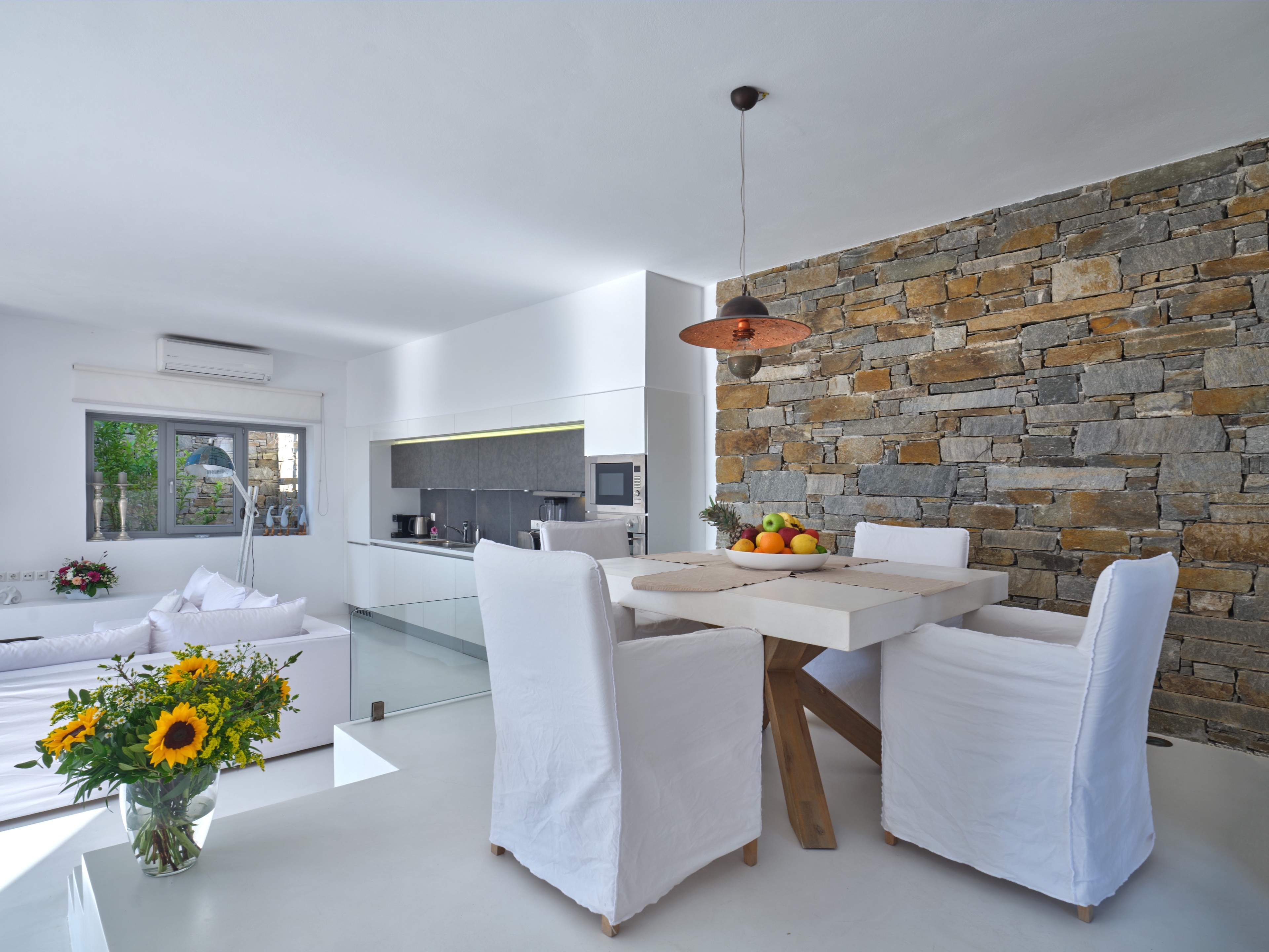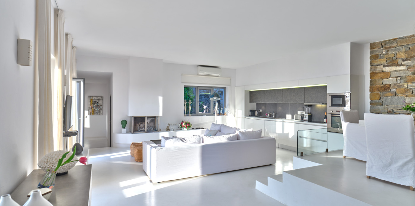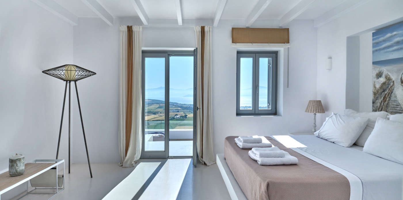 Από τη βεράντα, το Bianca μοιάζει να είναι πλήρως ενσωματωμένο στο τοπίο της Πάρου. Μινιμαλιστική, χαλαρωτική και χτισμένη για να μεγιστοποιεί την απίστευτη θέα. Οι εσωτερικοί του χώροι έχουν την ίδια απλότητα και η φυσική πέτρα και τα ποιοτικά έπιπλα δημιουργούν μια ατμόσφαιρα απόλυτης ευδαιμονίας και χαλάρωσης.