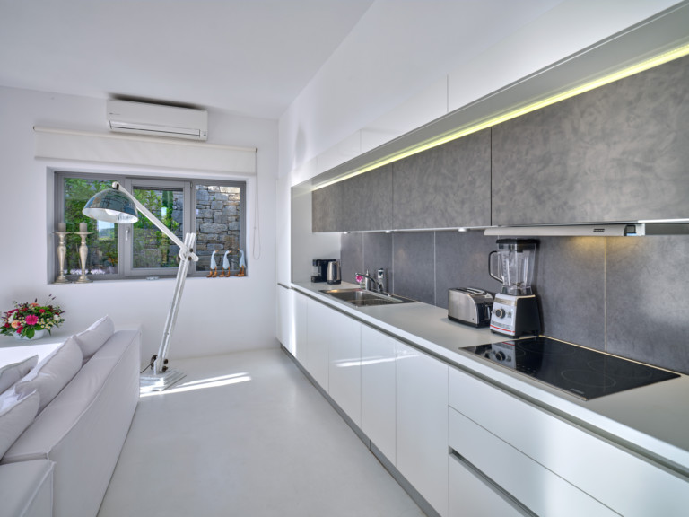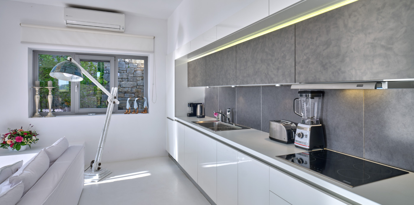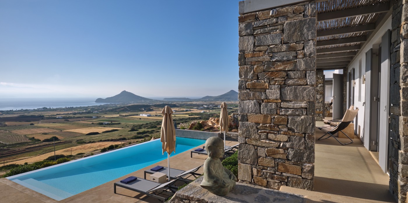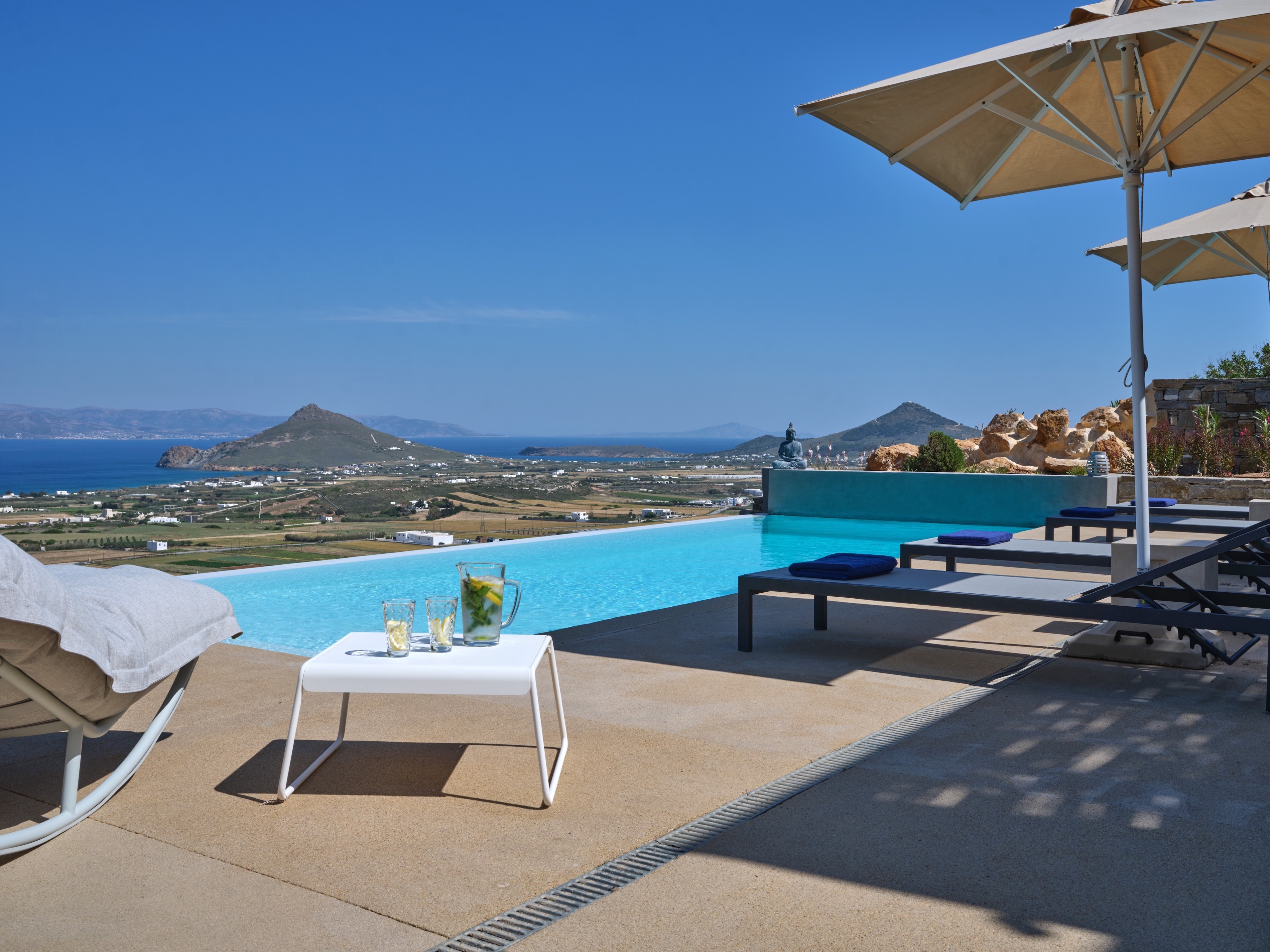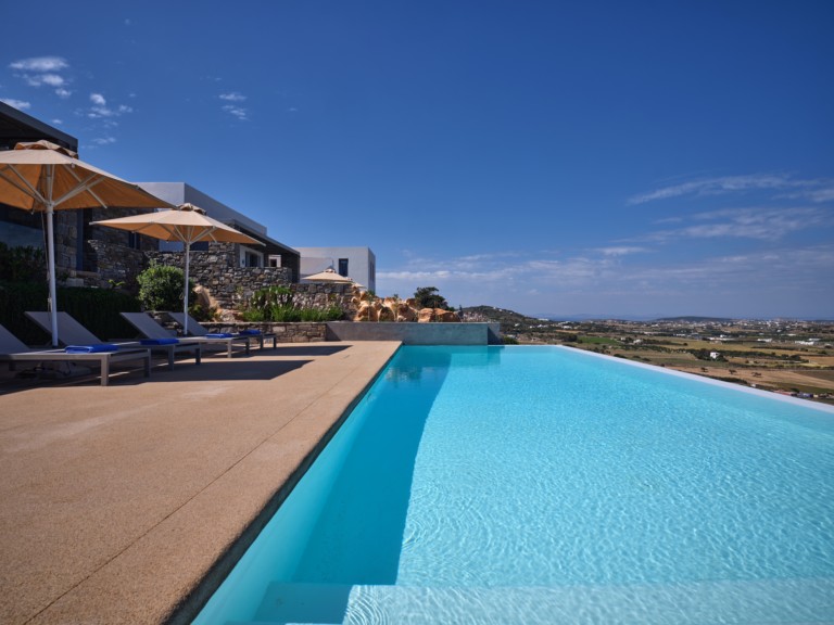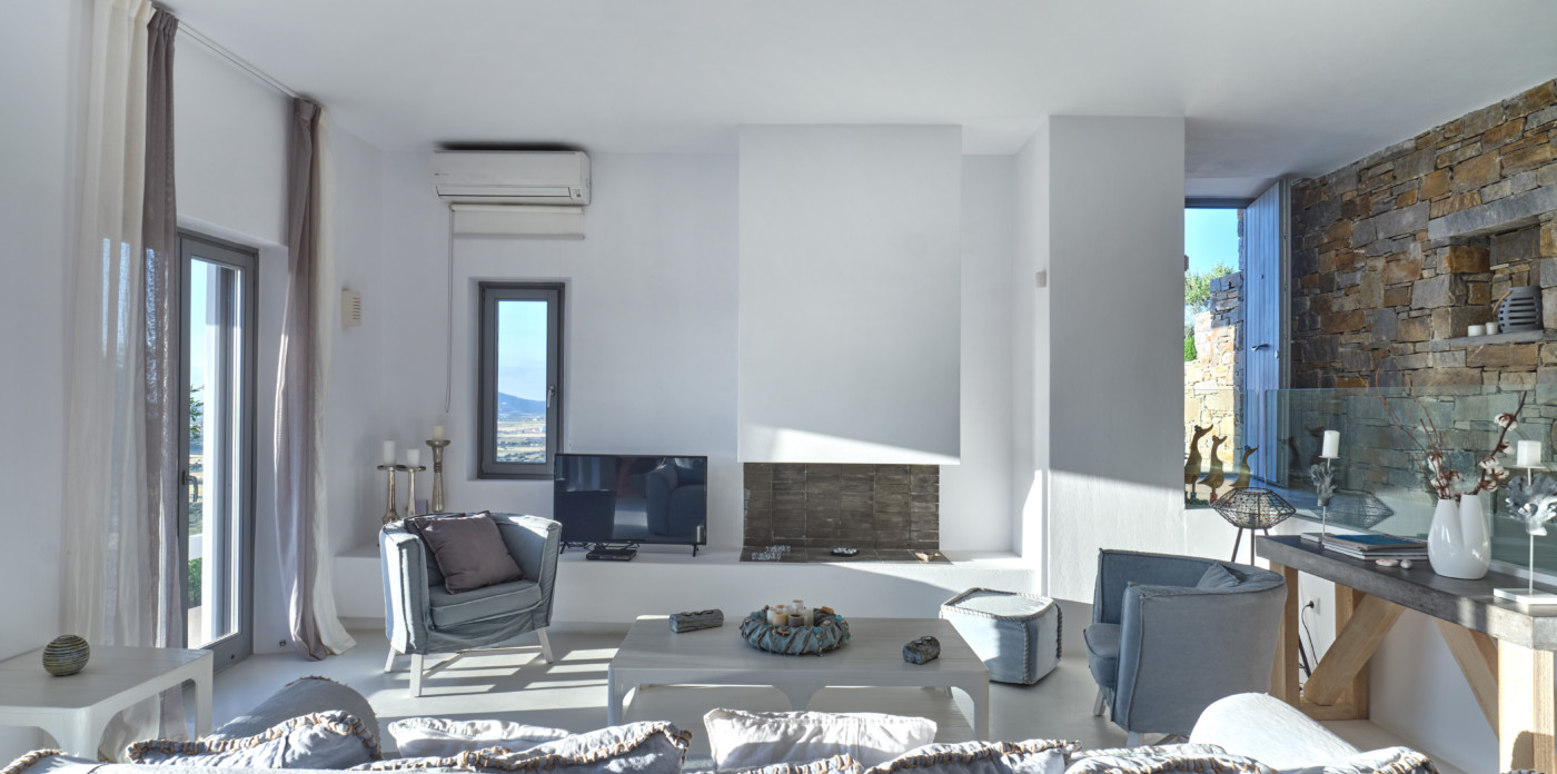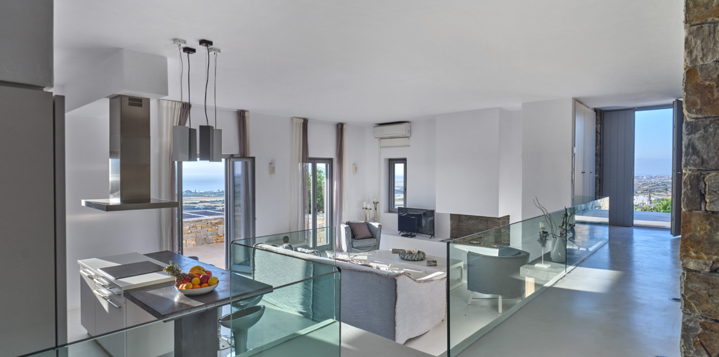 Από τη βεράντα, το Bianca μοιάζει να είναι πλήρως ενσωματωμένο στο τοπίο της Πάρου. Μινιμαλιστική, χαλαρωτική και χτισμένη για να μεγιστοποιεί την απίστευτη θέα. Οι εσωτερικοί του χώροι έχουν την ίδια απλότητα και η φυσική πέτρα και τα ποιοτικά έπιπλα δημιουργούν μια ατμόσφαιρα απόλυτης ευδαιμονίας και χαλάρωσης.