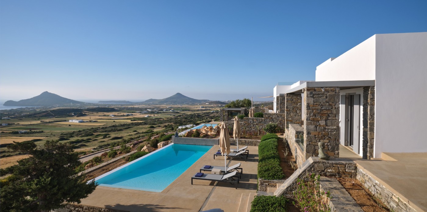 Δύο καταπληκτικά σπίτια δίπλα-δίπλα προσφέρουν εκπληκτική θέα στο Αιγαίο. Αυθεντικό, μίνιμαλ, πολυτελές: όποια λέξη κι αν επιλέξετε, όλες ταιριάζουν στην Bianca. Οι δύο βίλες προσφέρονται ως μία, καθώς βρίσκονται ακριβώς η μία δίπλα στην άλλη, σε ένα οικόπεδο άνω των 8.500 τετραγωνικών μέτρων.