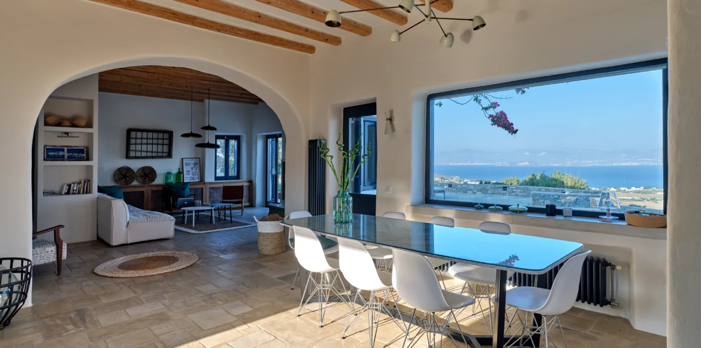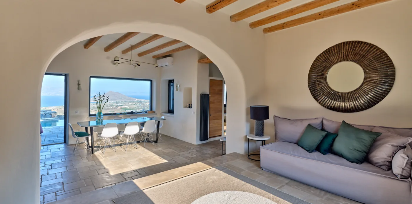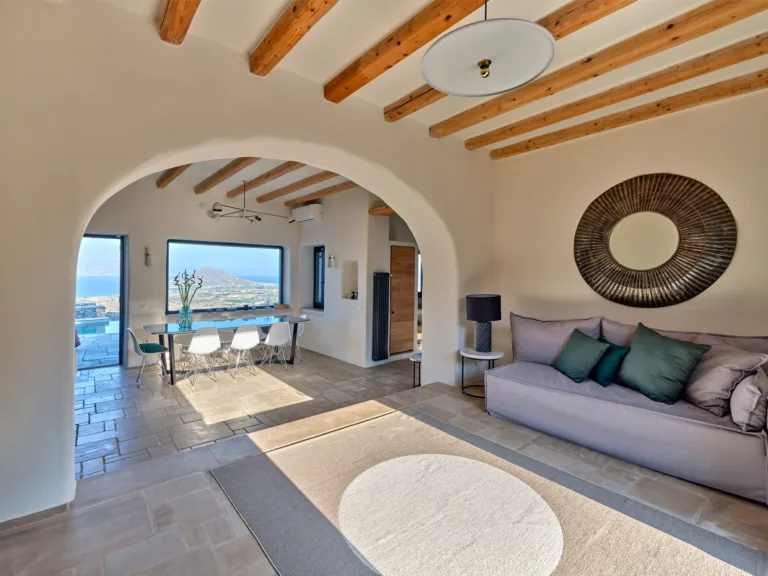 Μπαίνοντας στη βίλα, μαγεύεστε αμέσως από το μείγμα κομψότητας και σύγχρονου σχεδιασμού. Το εσωτερικό αποπνέει έναν αέρα φινέτσας, όπου κάθε λεπτομέρεια έχει μελετηθεί προσεκτικά.