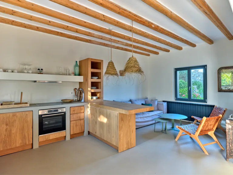 Ο ξενώνας διαθέτει τον ίδιο άψογο σχεδιασμό και την ίδια προσοχή στη λεπτομέρεια με την κύρια βίλα. Οι επισκέπτες θα βρουν ένα άνετο καθιστικό, μια ευρύχωρη παραδοσιακή κουζίνα και ένα ιδιωτικό, καλά εξοπλισμένο υπνοδωμάτιο. Η γοητευτική ατμόσφαιρα επεκτείνεται και στον εξωτερικό χώρο, καθώς η βεράντα σας επιτρέπει να απολαύσετε στιγμές μοναξιάς, απολαμβάνοντας τη φυσική ομορφιά του νησιού.