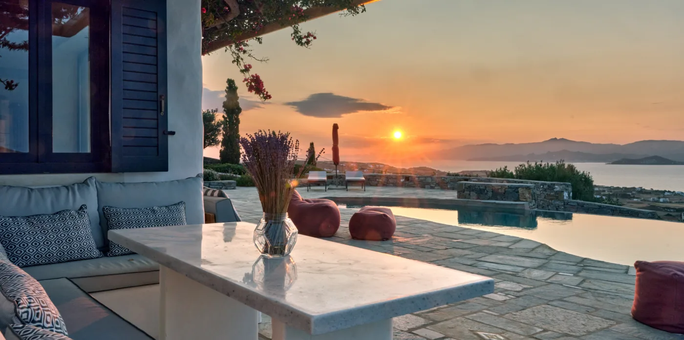 Οι ευρύχωρες βεράντες και οι σκιερές πέργκολες λειτουργούν ως προέκταση των καθιστικών, προσκαλώντας σας να απολαύσετε το φαγητό στο ύπαιθρο, να χαλαρώσετε στον ήλιο ή να χαλαρώσετε με ένα βιβλίο στο χέρι, ενώ σας χαϊδεύει η θαλασσινή αύρα.