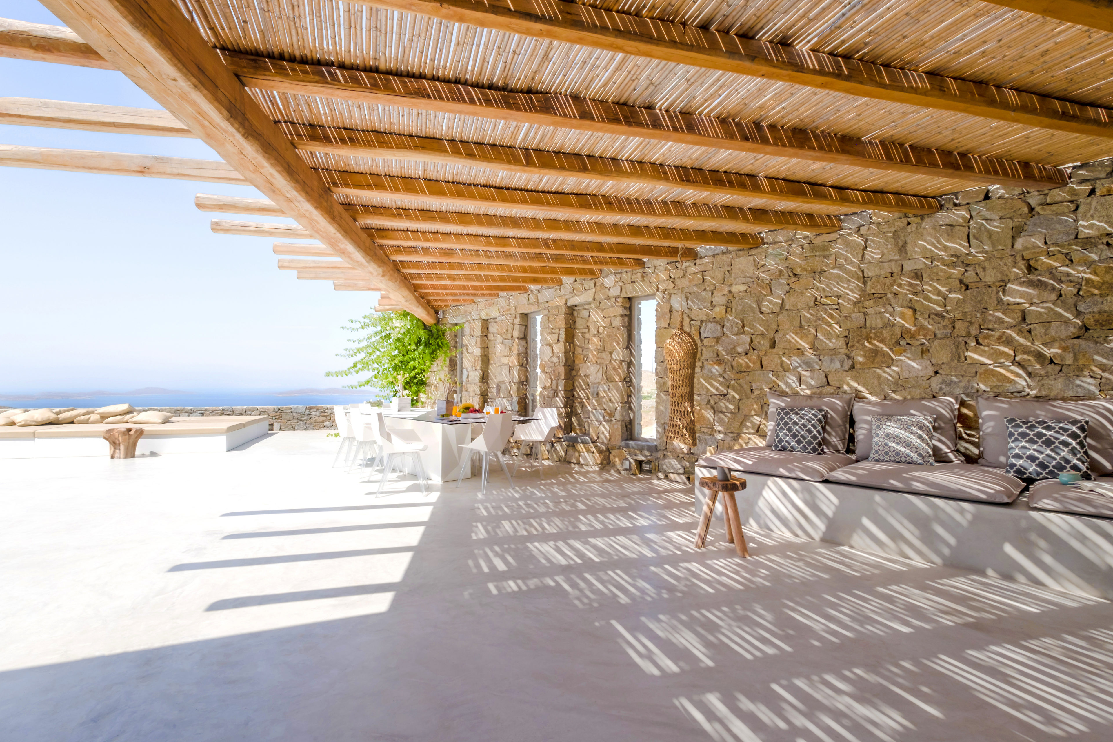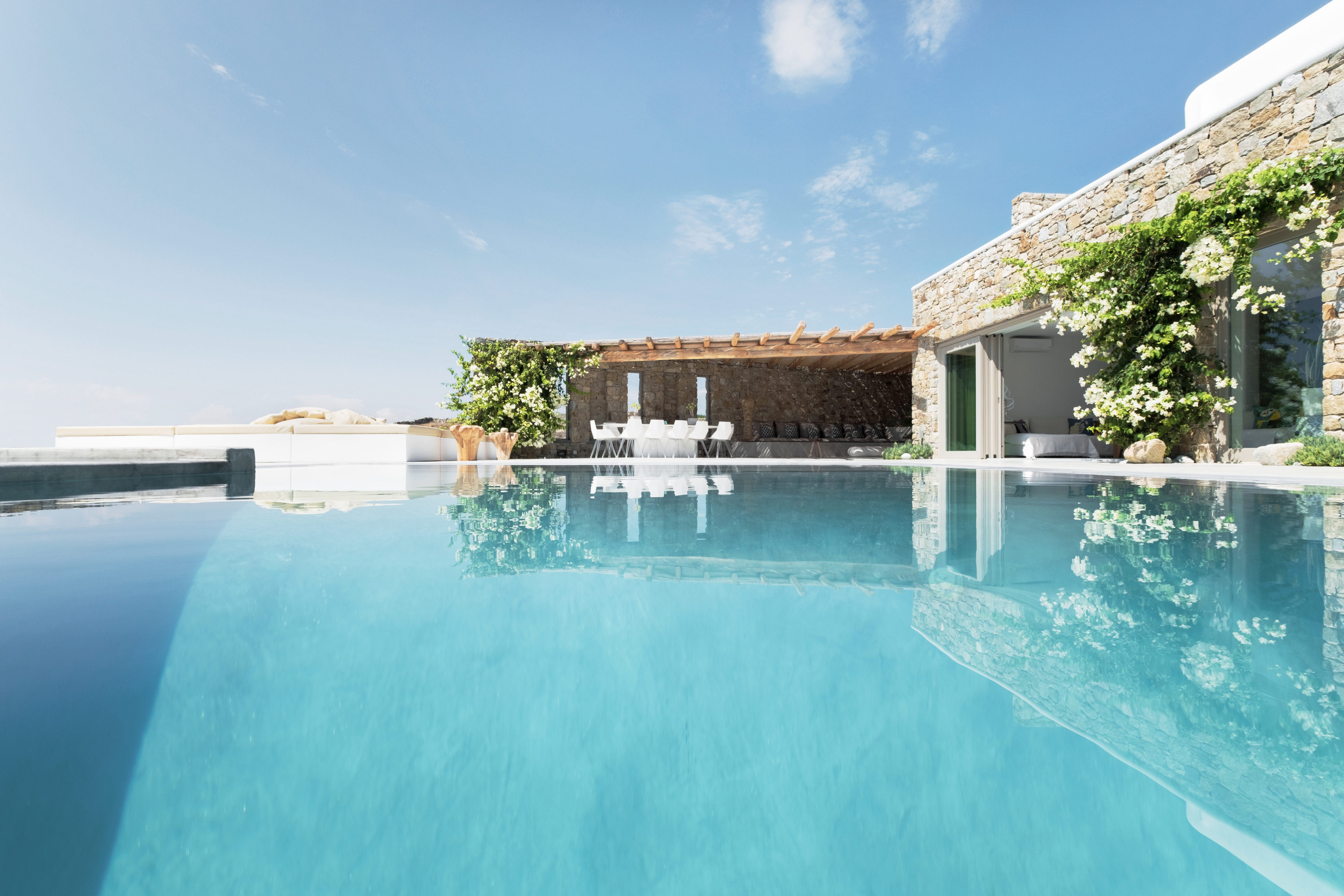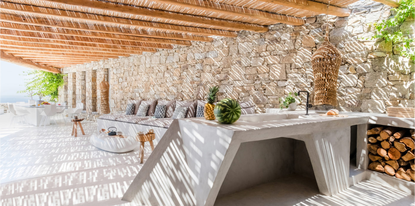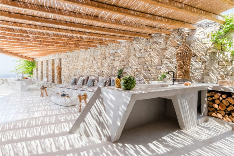 Παρόλα αυτά, το ιδανικό μέρος για να απολαύσετε τον καλοκαιρινό τρόπο ζωής της Μυκόνου θα ήταν η περιοχή γύρω από την πισίνα. Ο εξωτερικός χώρος περιλαμβάνει, ένα μεγάλο γωνιακό σαλόνι με πέργκολα, άνετες ξαπλώστρες, 12θέσιο τραπέζι, μοναδικά σχεδιασμένο κουζινάκι μπάρμπεκιου και πολλές αιώρες για να απολαμβάνετε χαλαρές στιγμές τα απογεύματα!