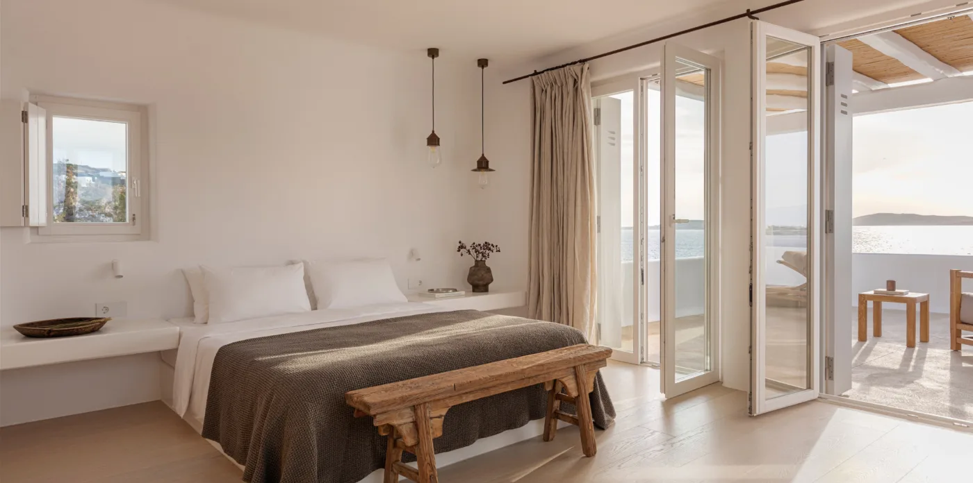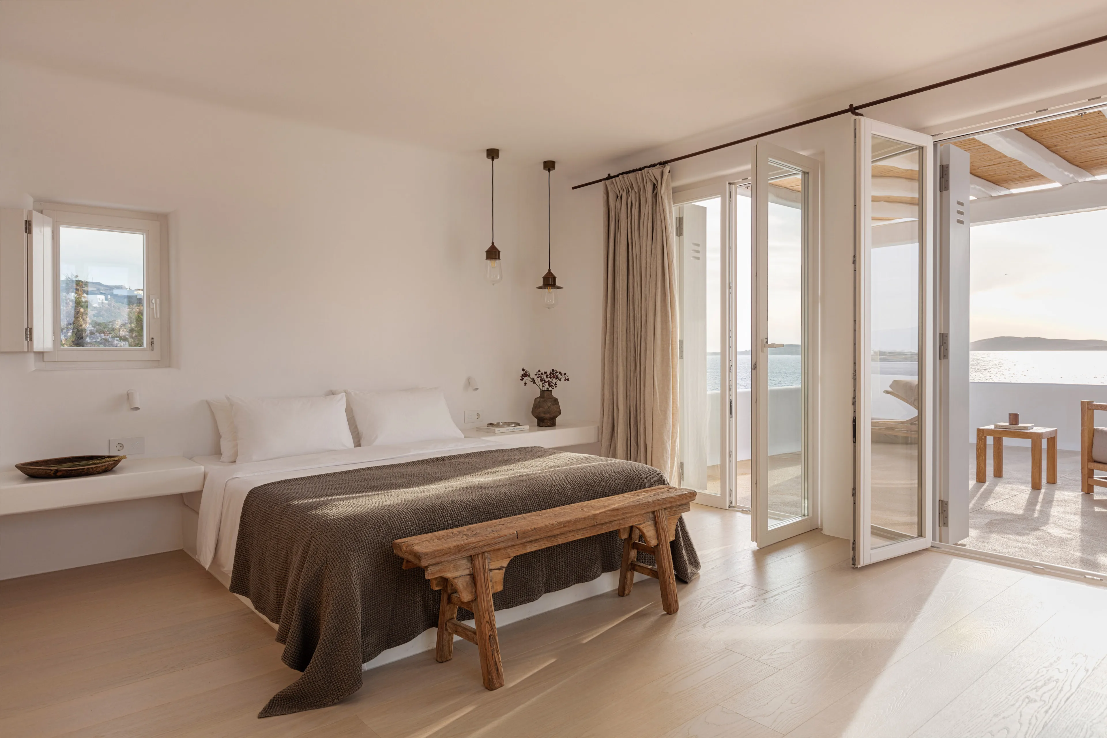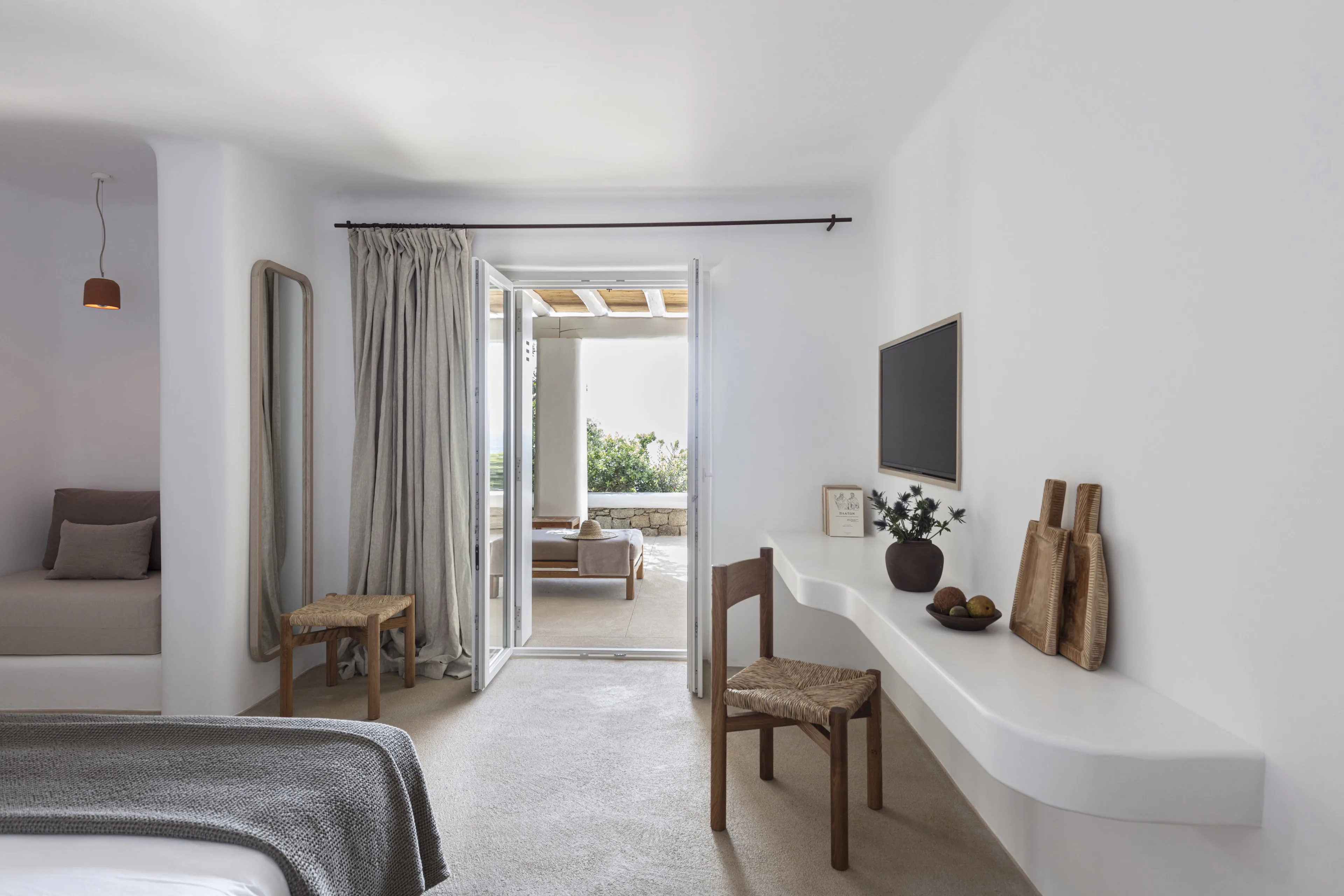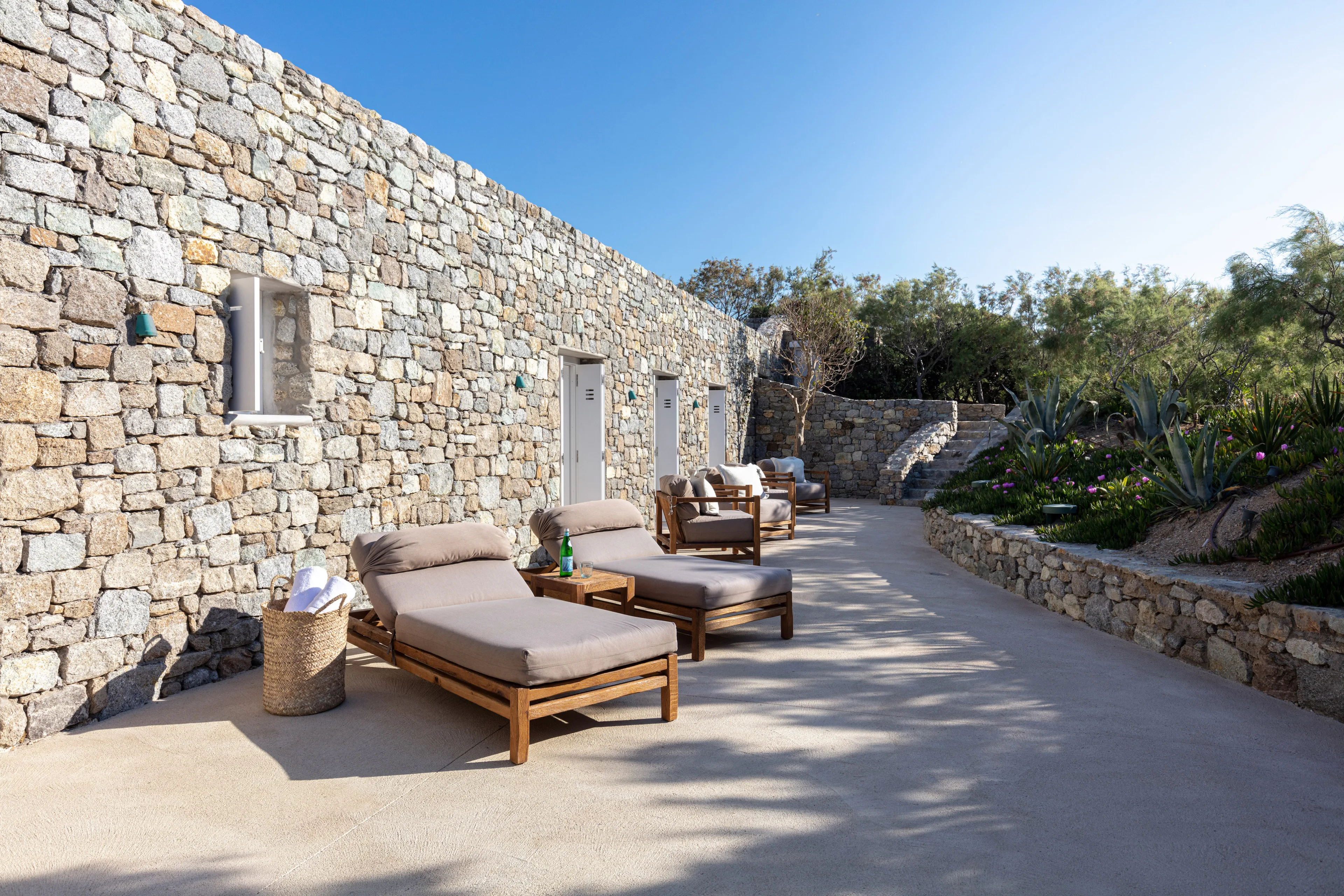Ενώ ο σχολαστικός επανασχεδιασμός του καταλύματος βασίζεται στα κλασικά χαρακτηριστικά της παραδοσιακής κυκλαδίτικης αρχιτεκτονικής, οι εντυπωσιακές σύγχρονες σχεδιαστικές πινελιές και οι τεχνολογικές ανέσεις εμφανίζονται παντού, από τους ευάερους κοινόχρηστους χώρους μέχρι τα οικεία υπνοδωμάτια και παντού ενδιάμεσα. Οι ευκαιρίες για χαλάρωση είναι άφθονες: αναζητήστε την αναζωογόνηση στον ειδικό χώρο ευεξίας, ο οποίος είναι εξοπλισμένος με ένα πολυτελές χαμάμ, αίθουσα μασάζ και γυμναστήριο, ή κατεβείτε πιο κάτω στο καταφύγιο με τους καταρράκτες στην εκτεταμένη θερμαινόμενη πισίνα με θέα το γαλάζιο της Μεσογείου. Εναλλακτικά, εγκατασταθείτε στην αίθουσα κινηματογράφου, όπου ταινίες και τηλεοπτικές εκπομπές μπορούν να προβάλλονται απευθείας στους ασβεστωμένους τοίχους.