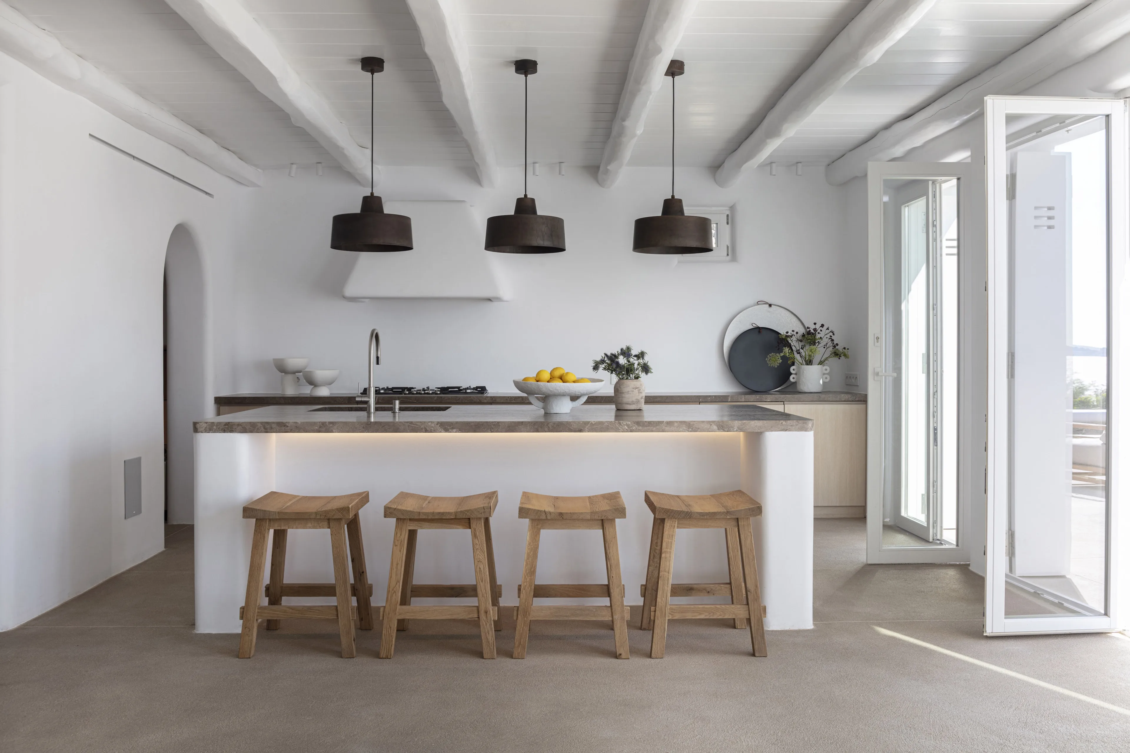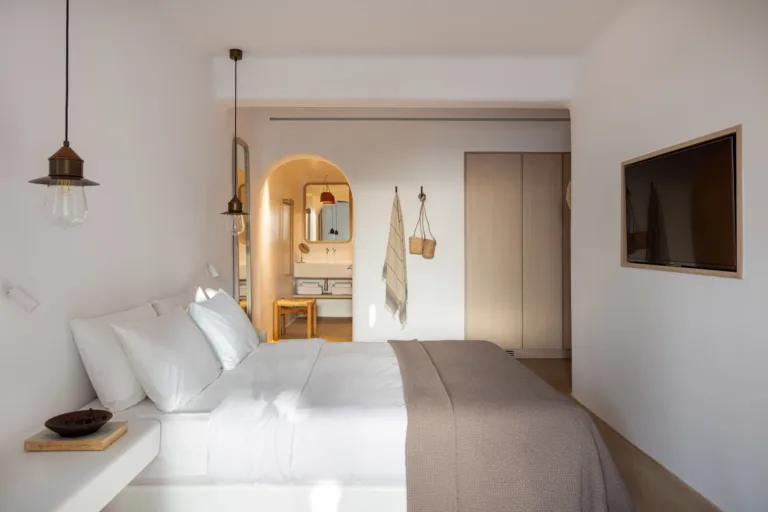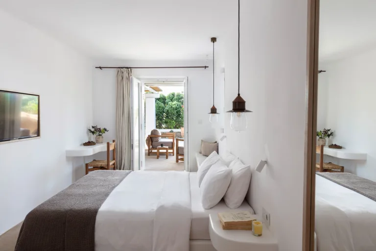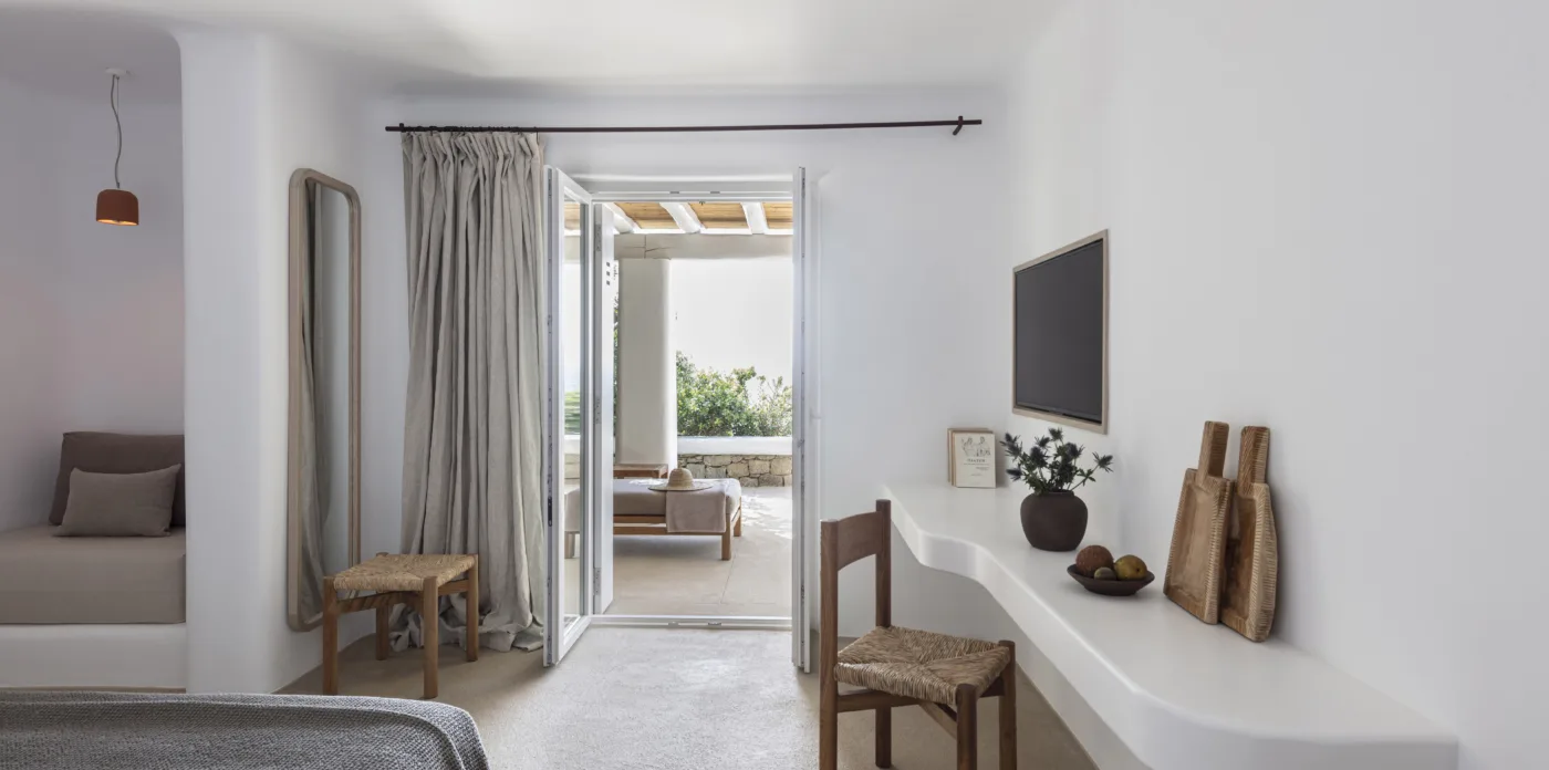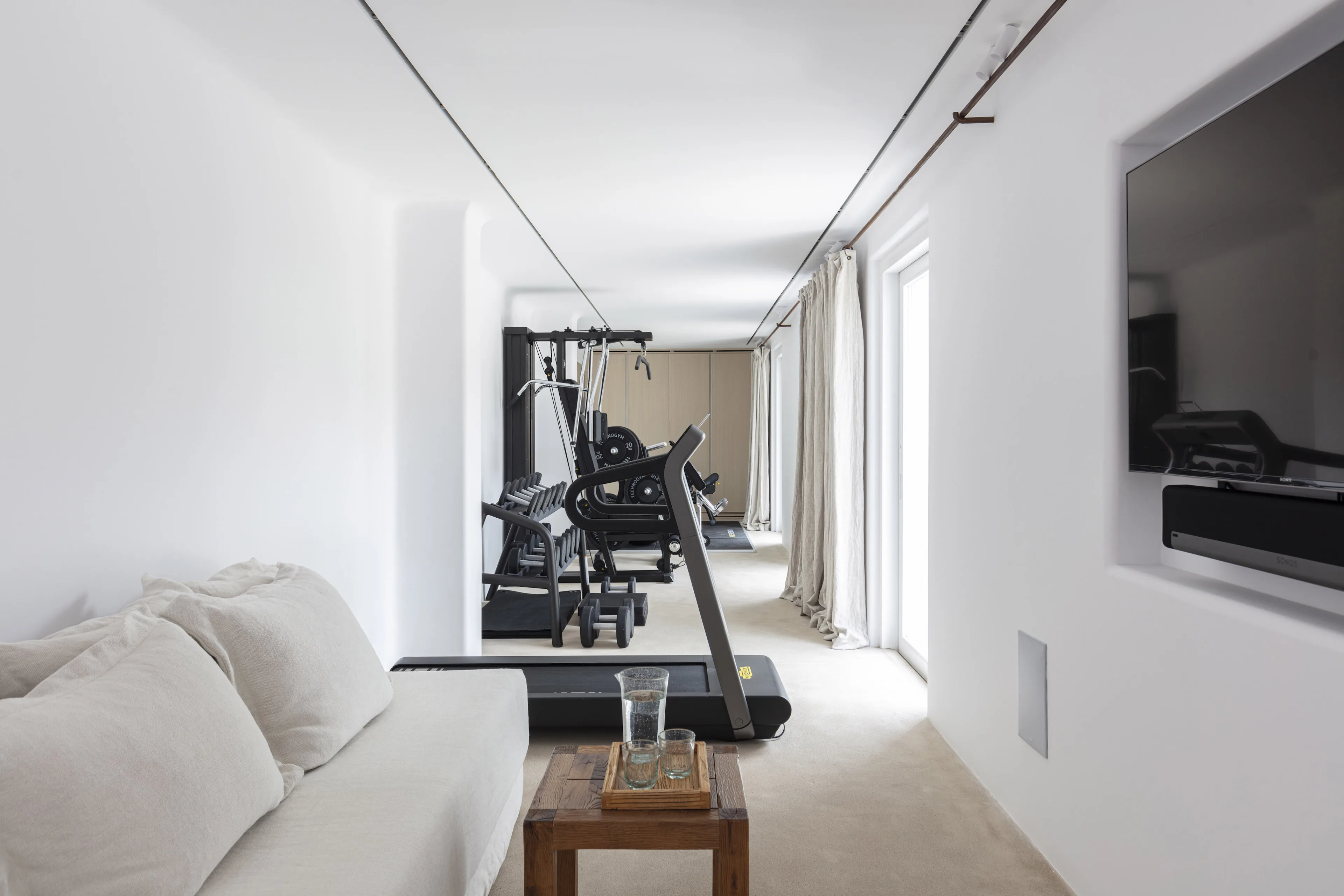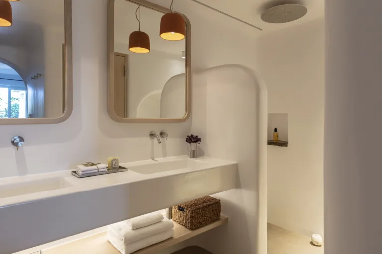 Ενώ ο σχολαστικός επανασχεδιασμός του καταλύματος βασίζεται στα κλασικά χαρακτηριστικά της παραδοσιακής κυκλαδίτικης αρχιτεκτονικής, οι εντυπωσιακές σύγχρονες σχεδιαστικές πινελιές και οι τεχνολογικές ανέσεις εμφανίζονται παντού, από τους ευάερους κοινόχρηστους χώρους μέχρι τα οικεία υπνοδωμάτια και παντού ενδιάμεσα. Οι ευκαιρίες για χαλάρωση είναι άφθονες: αναζητήστε την αναζωογόνηση στον ειδικό χώρο ευεξίας, ο οποίος είναι εξοπλισμένος με ένα πολυτελές χαμάμ, αίθουσα μασάζ και γυμναστήριο, ή κατεβείτε πιο κάτω στο καταφύγιο με τους καταρράκτες στην εκτεταμένη θερμαινόμενη πισίνα με θέα το γαλάζιο της Μεσογείου. Εναλλακτικά, εγκατασταθείτε στην αίθουσα κινηματογράφου, όπου ταινίες και τηλεοπτικές εκπομπές μπορούν να προβάλλονται απευθείας στους ασβεστωμένους τοίχους.