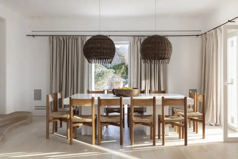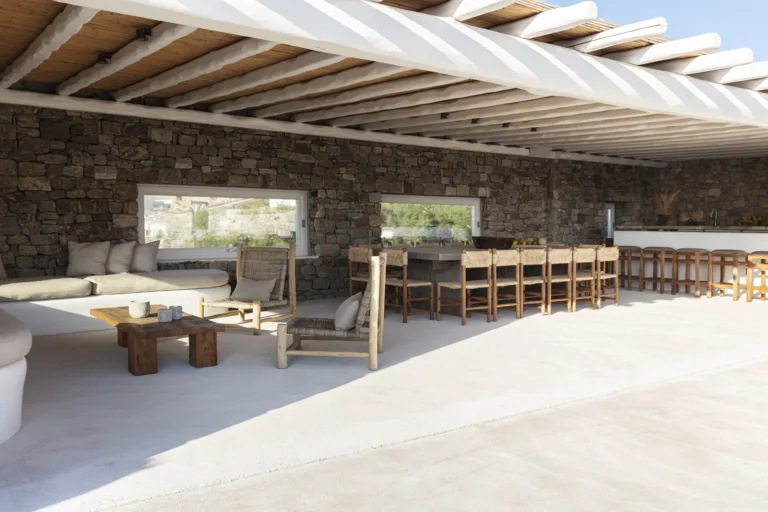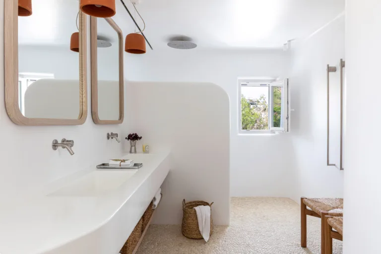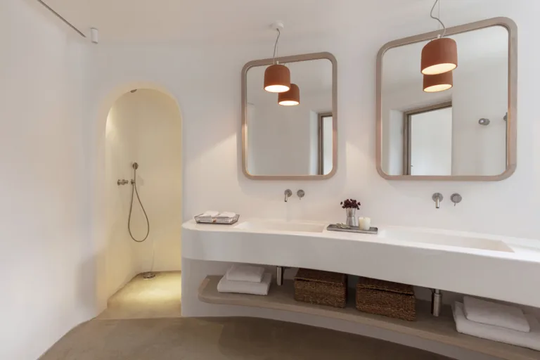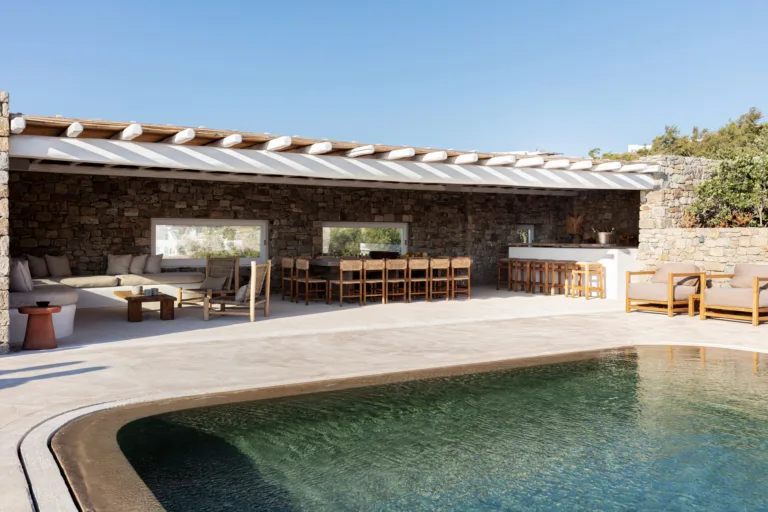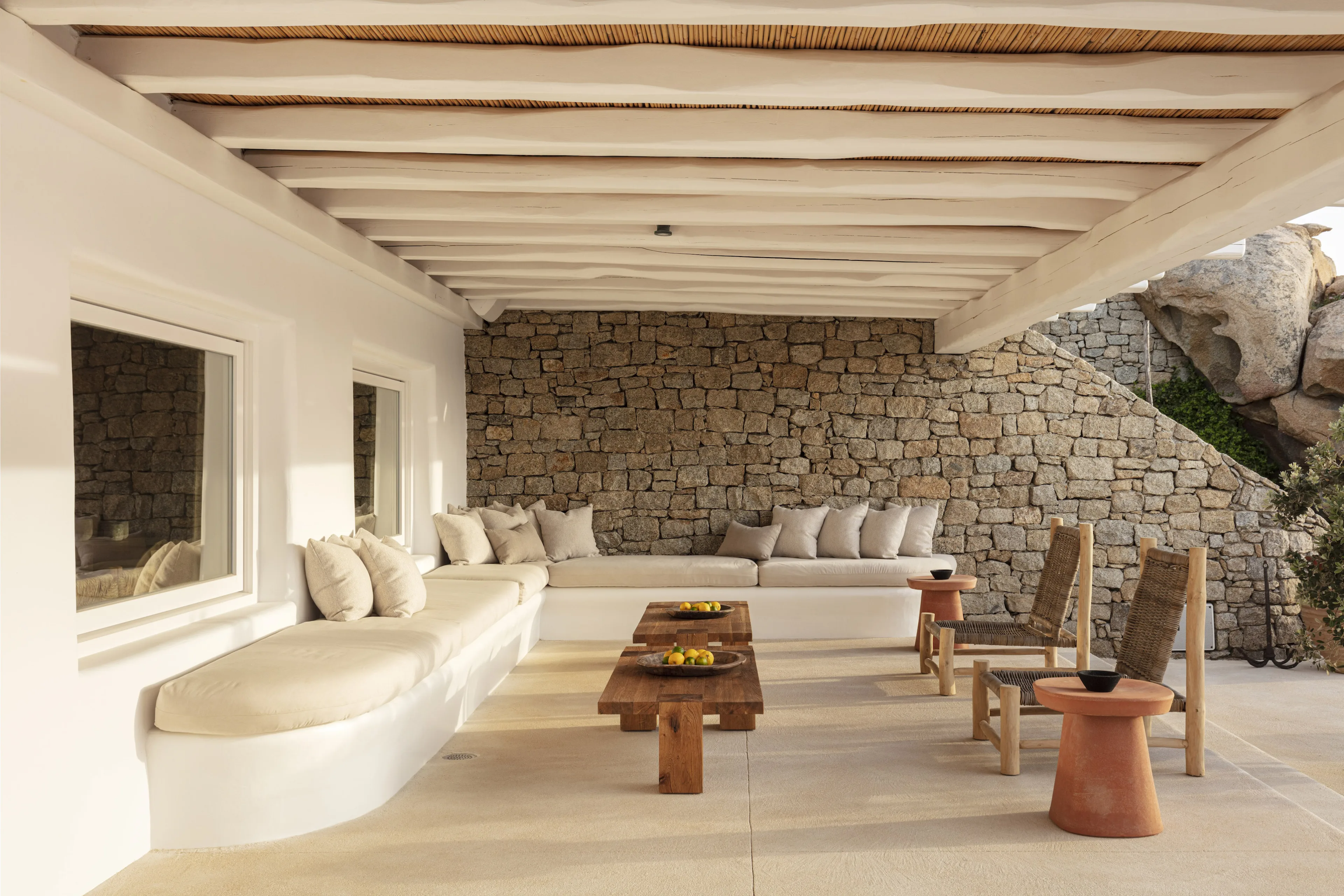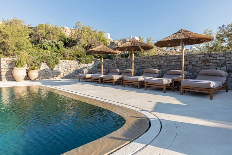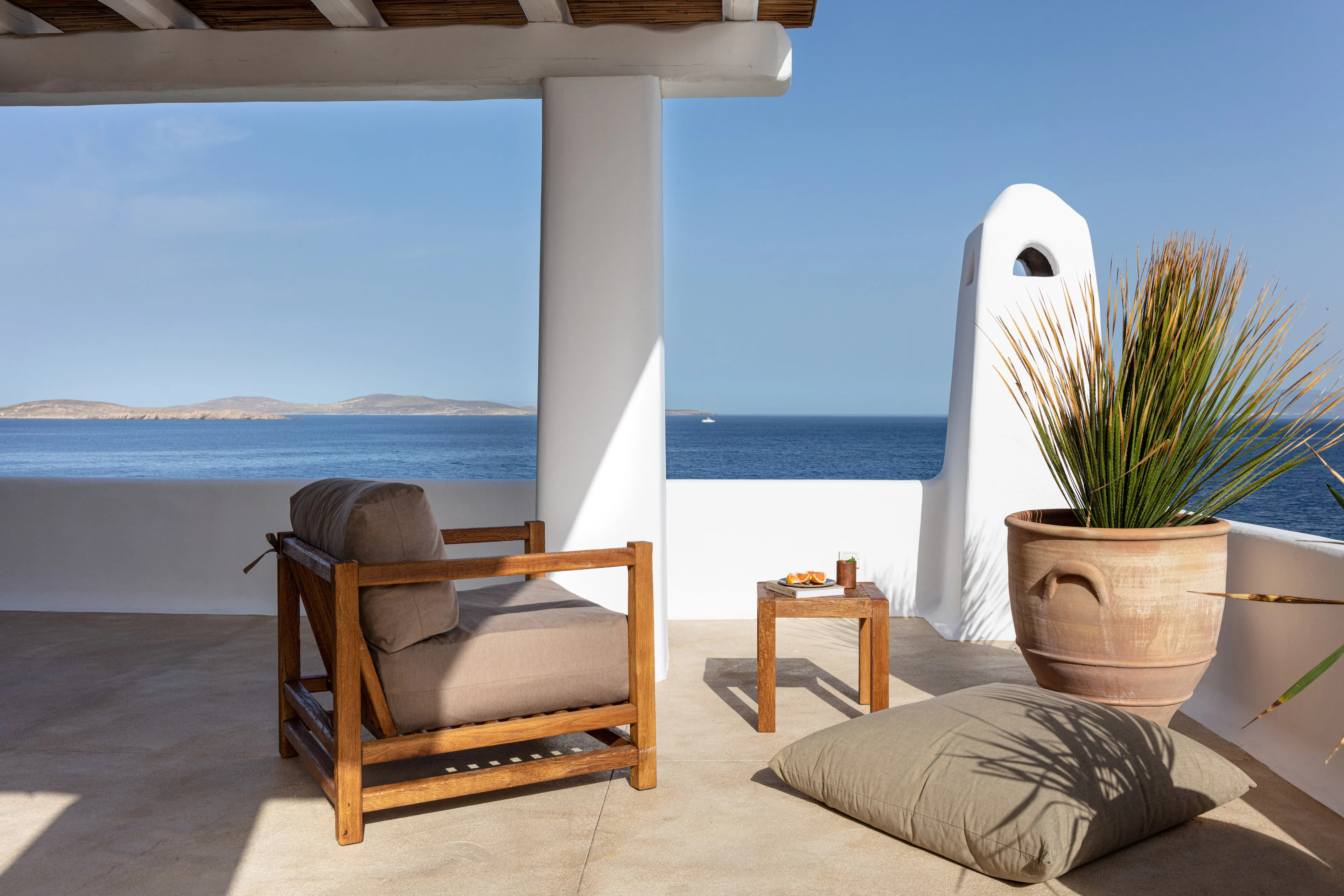 Ενώ ο σχολαστικός επανασχεδιασμός του καταλύματος βασίζεται στα κλασικά χαρακτηριστικά της παραδοσιακής κυκλαδίτικης αρχιτεκτονικής, οι εντυπωσιακές σύγχρονες σχεδιαστικές πινελιές και οι τεχνολογικές ανέσεις εμφανίζονται παντού, από τους ευάερους κοινόχρηστους χώρους μέχρι τα οικεία υπνοδωμάτια και παντού ενδιάμεσα. Οι ευκαιρίες για χαλάρωση είναι άφθονες: αναζητήστε την αναζωογόνηση στον ειδικό χώρο ευεξίας, ο οποίος είναι εξοπλισμένος με ένα πολυτελές χαμάμ, αίθουσα μασάζ και γυμναστήριο, ή κατεβείτε πιο κάτω στο καταφύγιο με τους καταρράκτες στην εκτεταμένη θερμαινόμενη πισίνα με θέα το γαλάζιο της Μεσογείου. Εναλλακτικά, εγκατασταθείτε στην αίθουσα κινηματογράφου, όπου ταινίες και τηλεοπτικές εκπομπές μπορούν να προβάλλονται απευθείας στους ασβεστωμένους τοίχους.