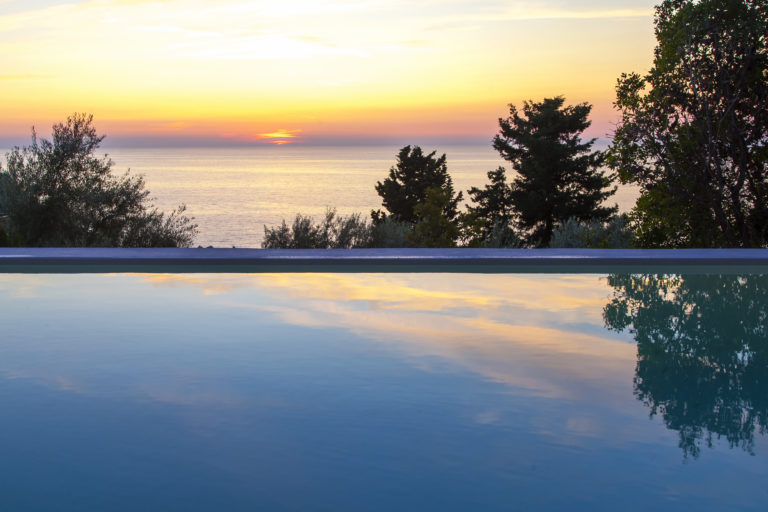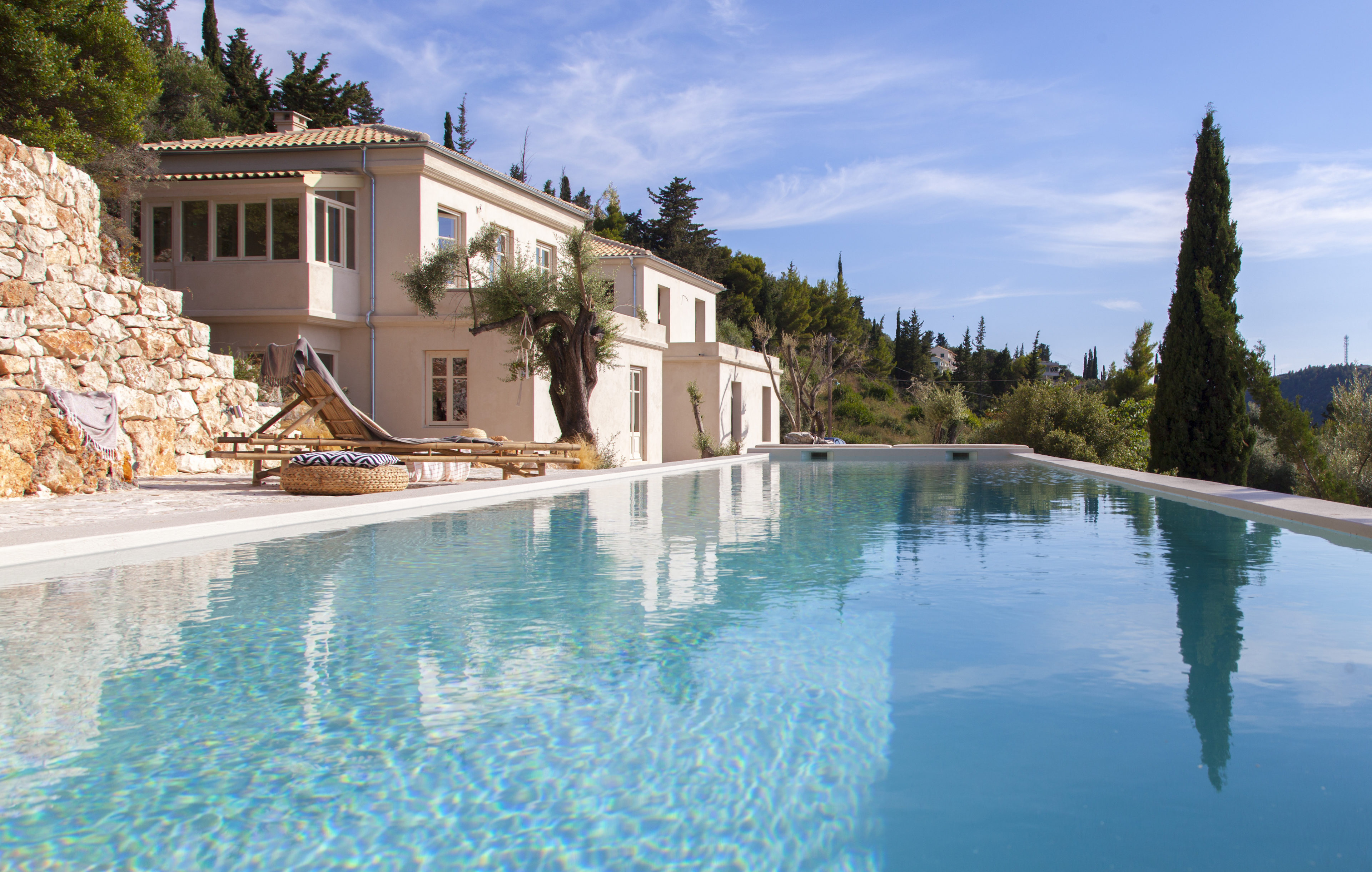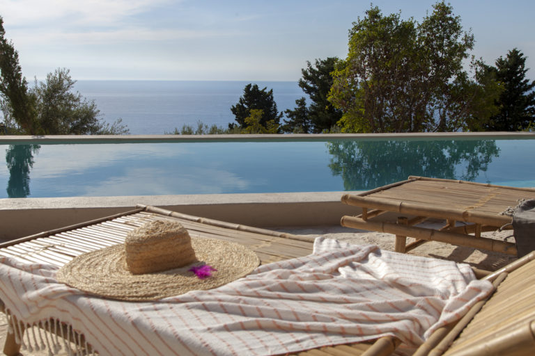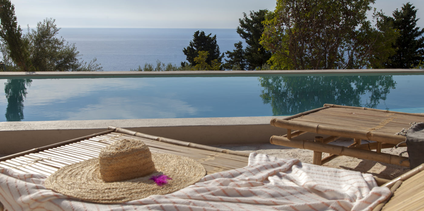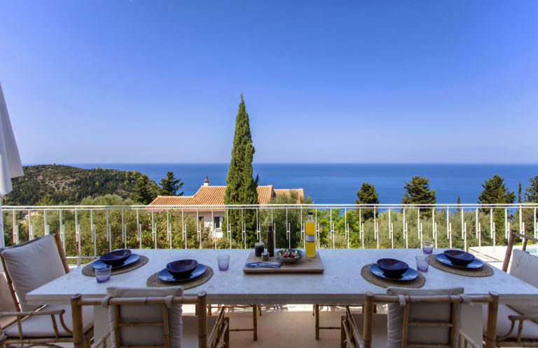 Οι εξωτερικοί χώροι της αποτελούνται από μια σειρά από βεράντες, κάποιες σκιερές, κάποιες άλλες για να ξαπλώνετε στον ζεστό ήλιο, που περιβάλλουν τη βίλα σε πολλά διαφορετικά επίπεδα με φόντο τα ζωντανά χρώματα του βουνού. Απολαύστε την πισίνα υπερχείλισης με θέα το Ιόνιο Πέλαγος, ενώ πίνετε τα παγωμένα κοκτέιλ σας όλες τις ώρες της ημέρας.