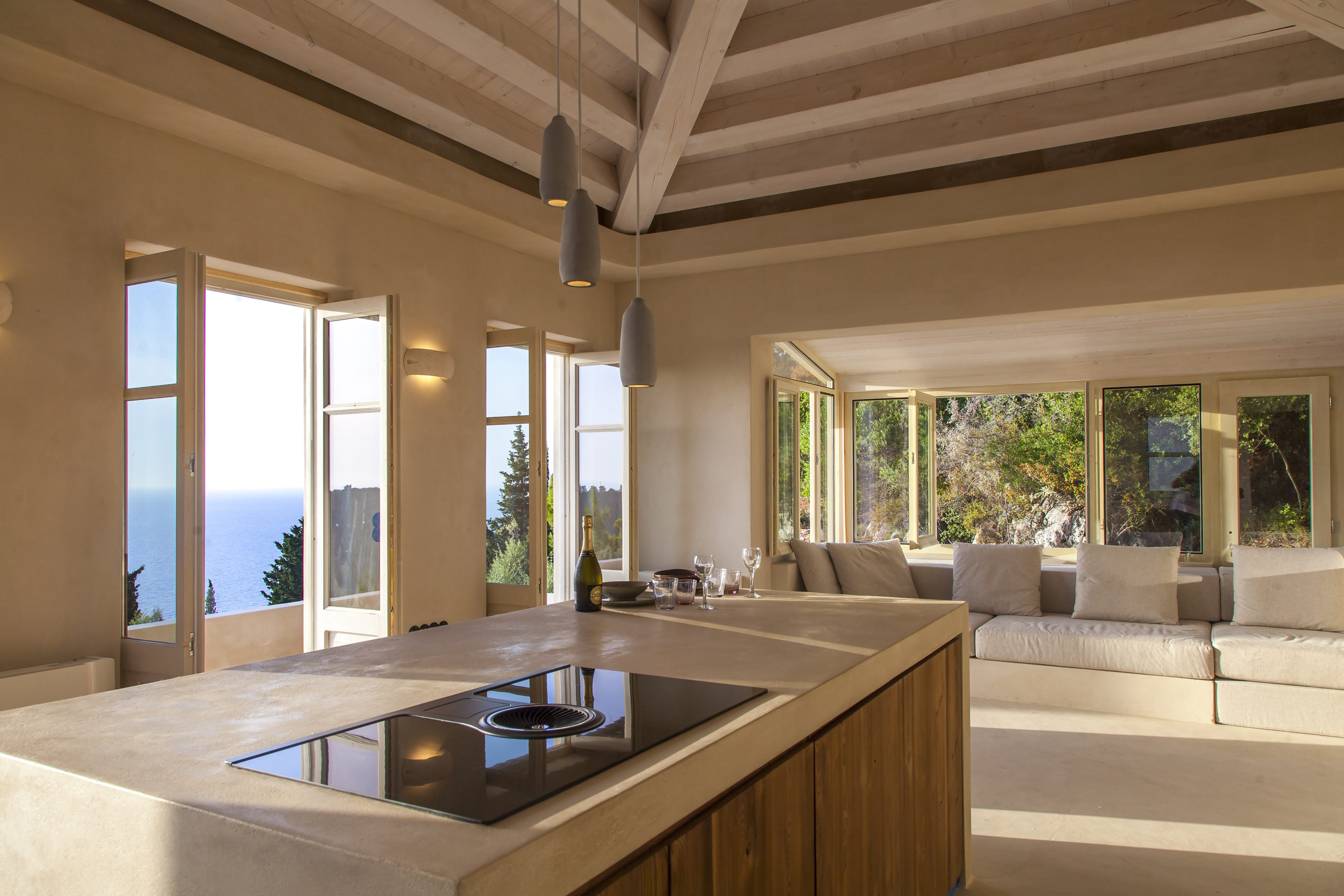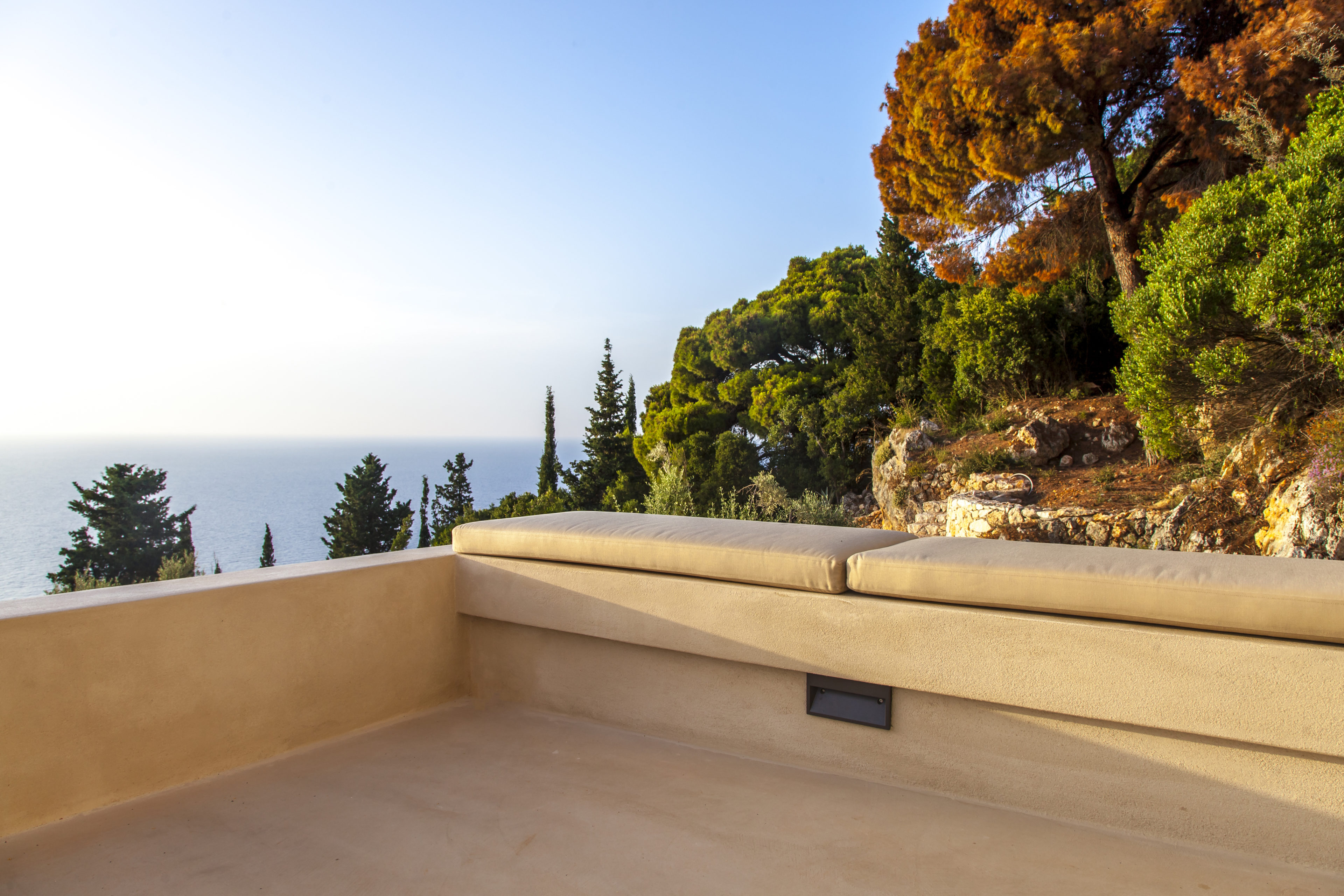 Το καθιστικό του σαλονιού έχει μια έκταση παραθύρων με φόντο την πλαγιά του βουνού που φέρνει φυσικά ένα αεράκι και το καθιστά ιδανική γωνιά για μια απογευματινή σιέστα. Υπάρχει ένα όμορφο μπαλκόνι που μπορεί να προσεγγιστεί από το ανώτερο επίπεδο, το οποίο θα είναι το μέρος για να συναντηθείτε με φίλους και οικογένεια τα απογεύματα για να απολαύσετε τα καταπληκτικά ηλιοβασιλέματα του Ιονίου.