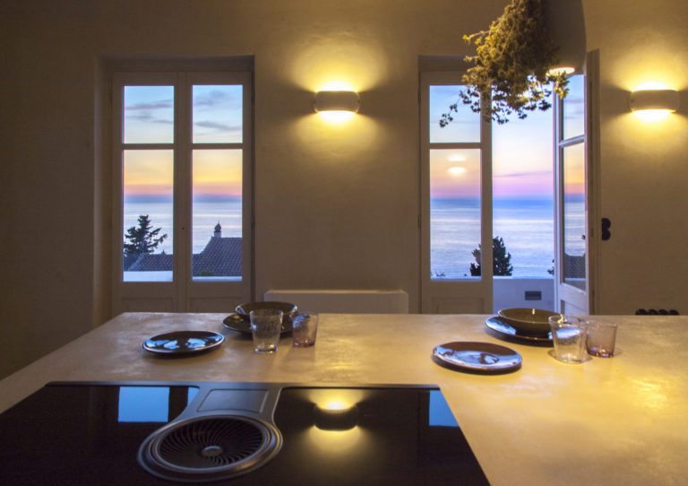 Το ανώτερο επίπεδο αποτελείται από μια ανοιχτή κουζίνα, τραπεζαρία και σαλόνι. Λουσμένος στο φυσικό φως από τις πρωινές ώρες μέχρι το βράδυ ο χώρος μοιάζει να προσελκύει τον αιώνιο ελληνικό ήλιο στα καλύτερά του ! Η κουζίνα και η τραπεζαρία θα είναι το αγαπημένο σας μέρος για να καθίσετε και να πάρετε αυθεντικό ελληνικό πρωινό απολαμβάνοντας την πρωινή θέα στο Ιόνιο Πέλαγος.