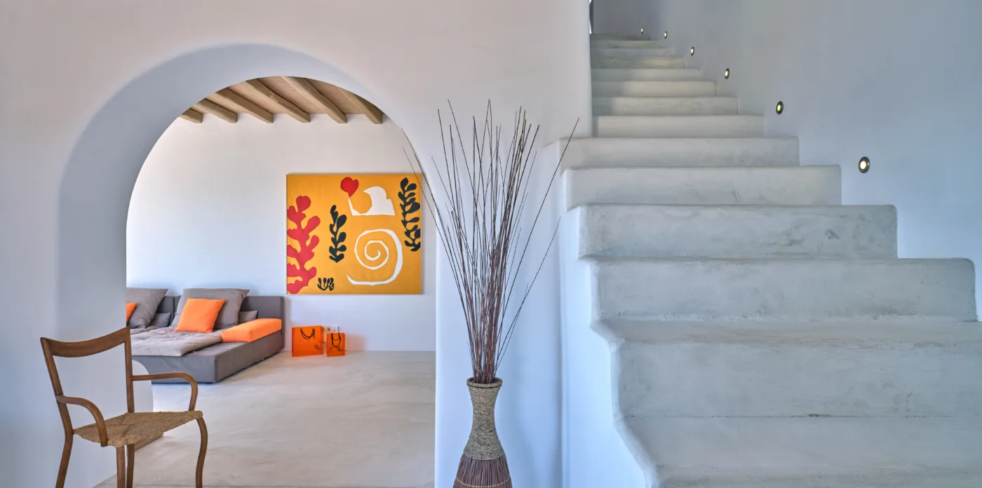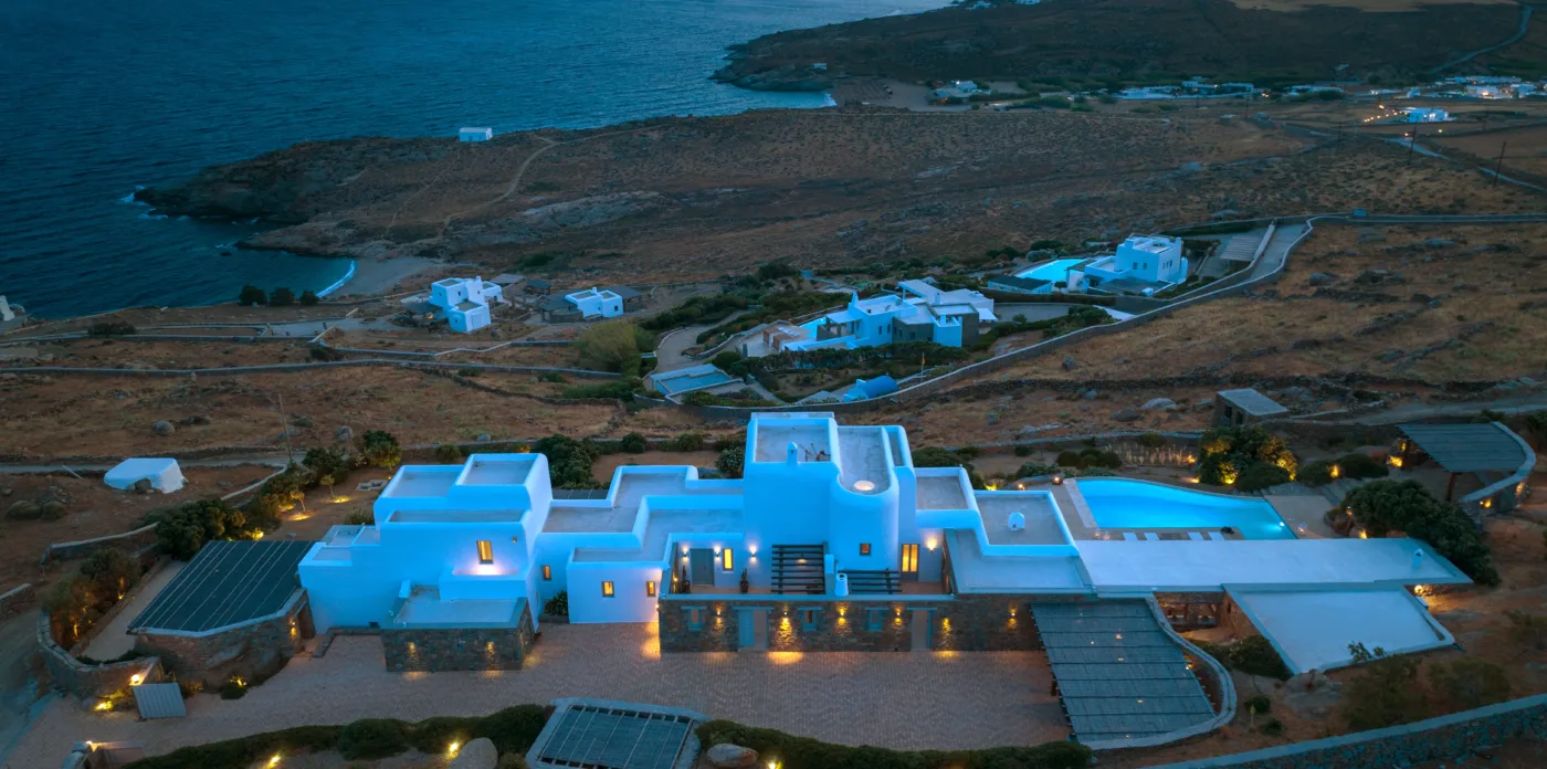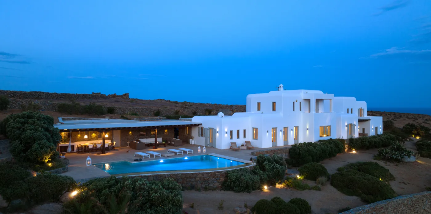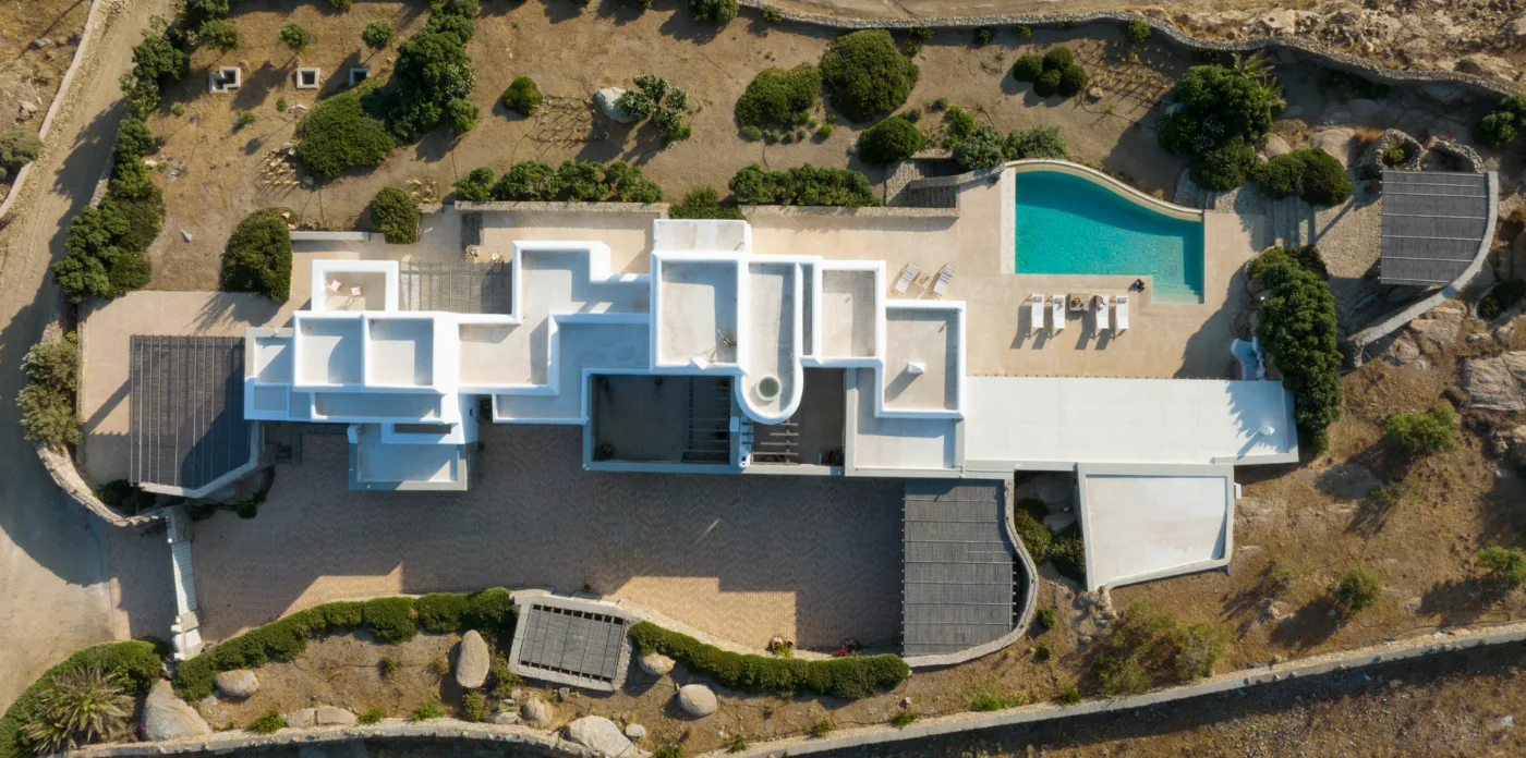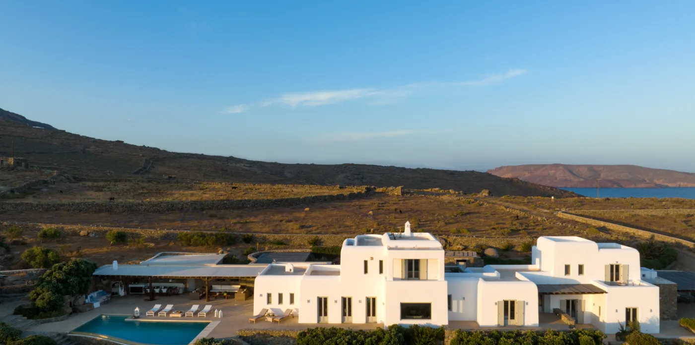 Η αρχιτεκτονική της βίλας βρίσκεται σε απόλυτη αρμονία με το φυσικό περιβάλλον των κυκλαδίτικων νησιών, προσφέροντας ένα μοναδικό μείγμα από τα καλύτερα και των δύο κόσμων, από τη θέα στη θάλασσα μέχρι το βουνό.