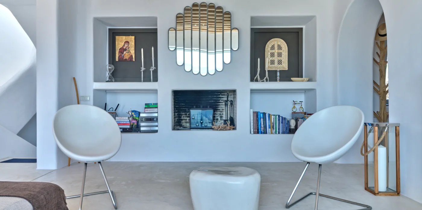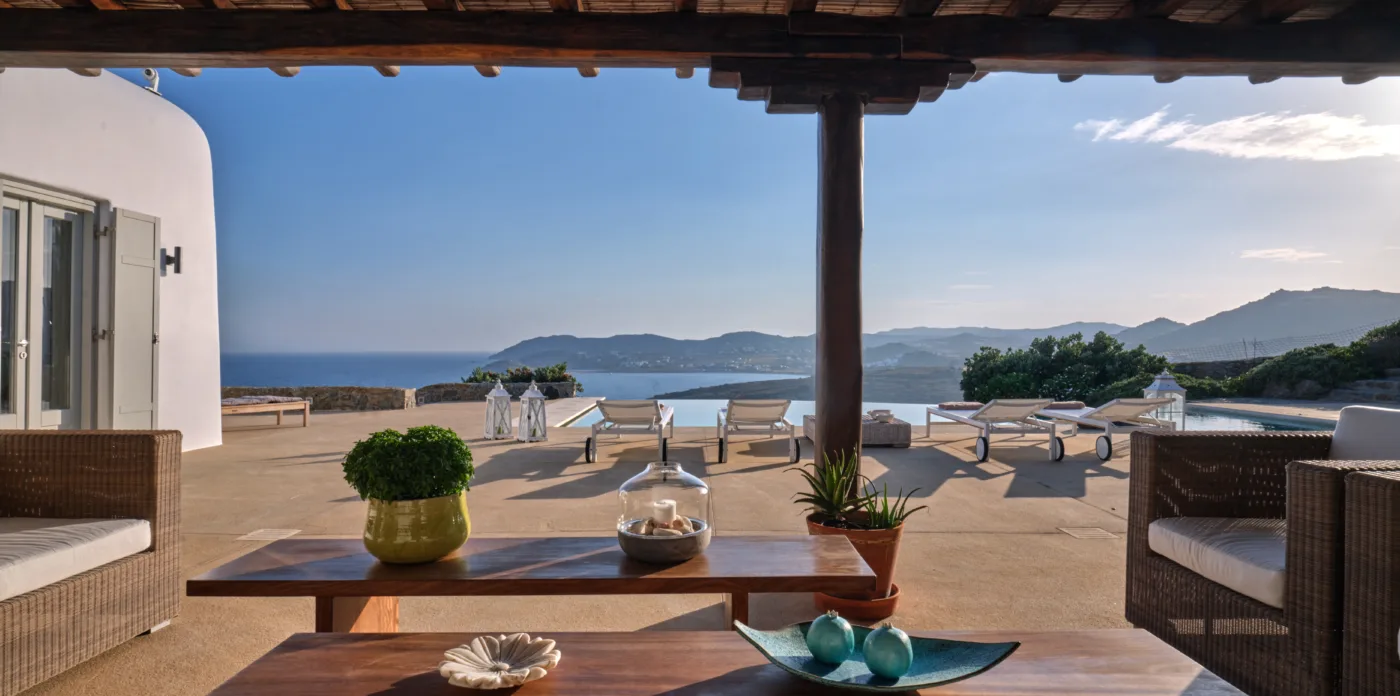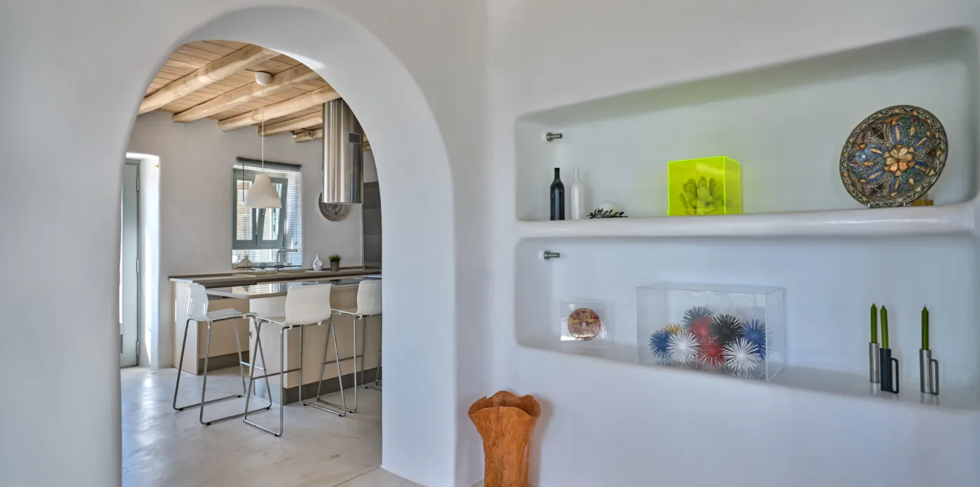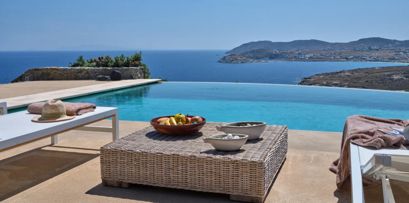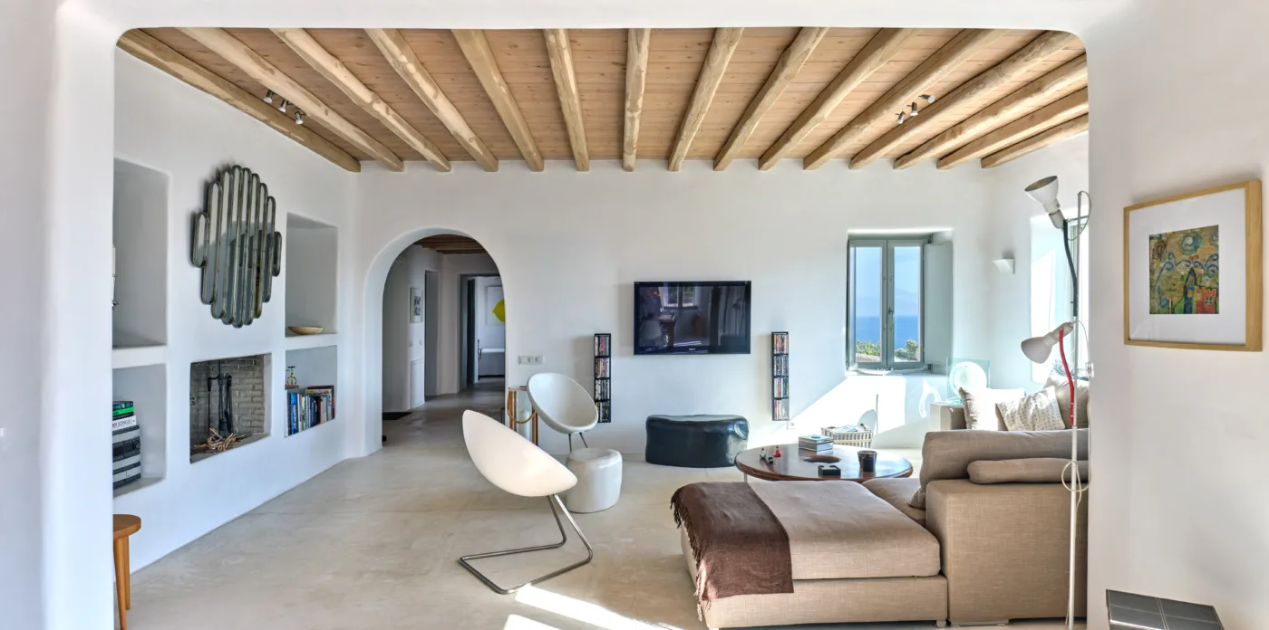Η αρχιτεκτονική της βίλας βρίσκεται σε απόλυτη αρμονία με το φυσικό περιβάλλον των κυκλαδίτικων νησιών, προσφέροντας ένα μοναδικό μείγμα από τα καλύτερα και των δύο κόσμων, από τη θέα στη θάλασσα μέχρι το βουνό.