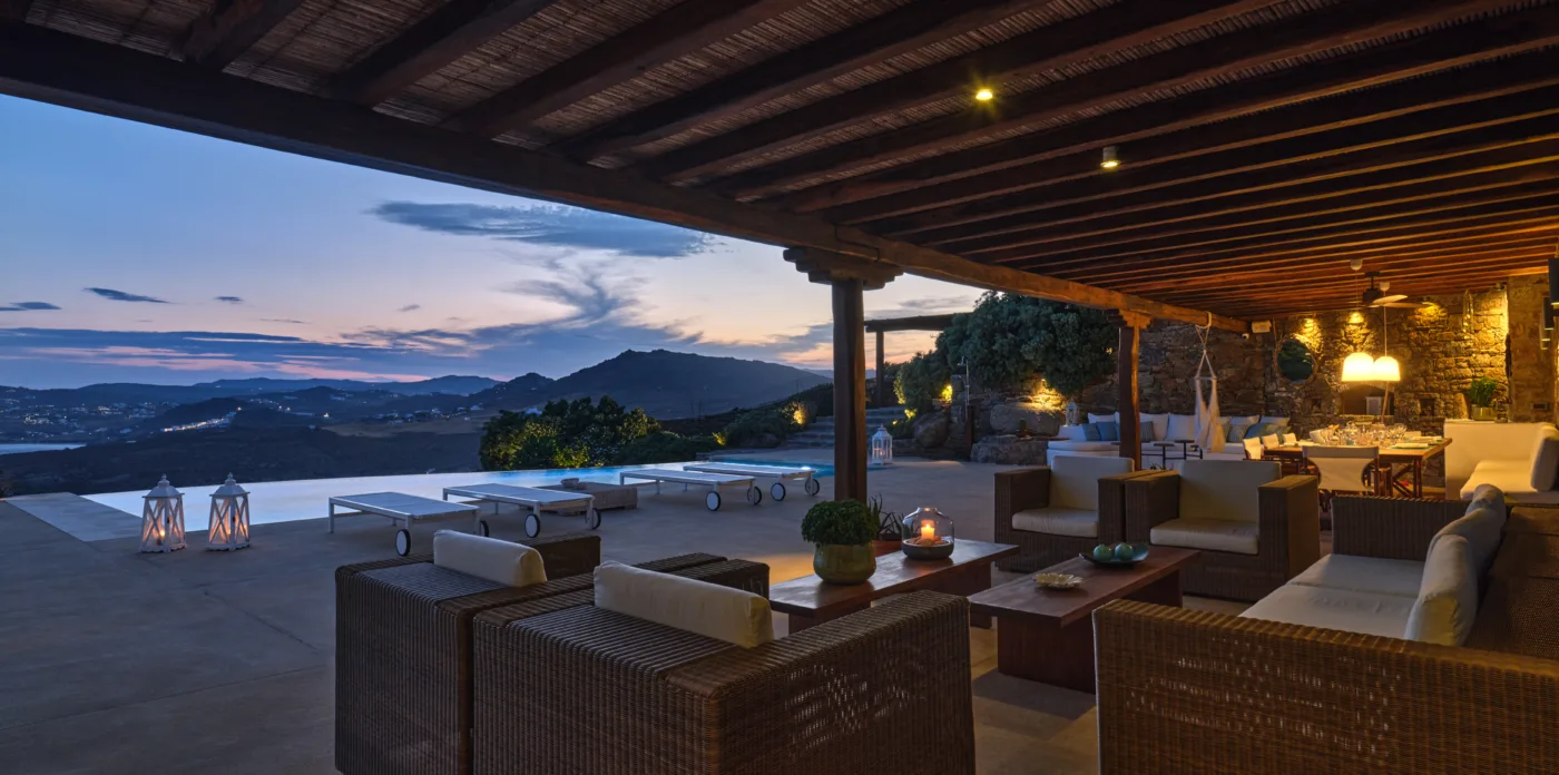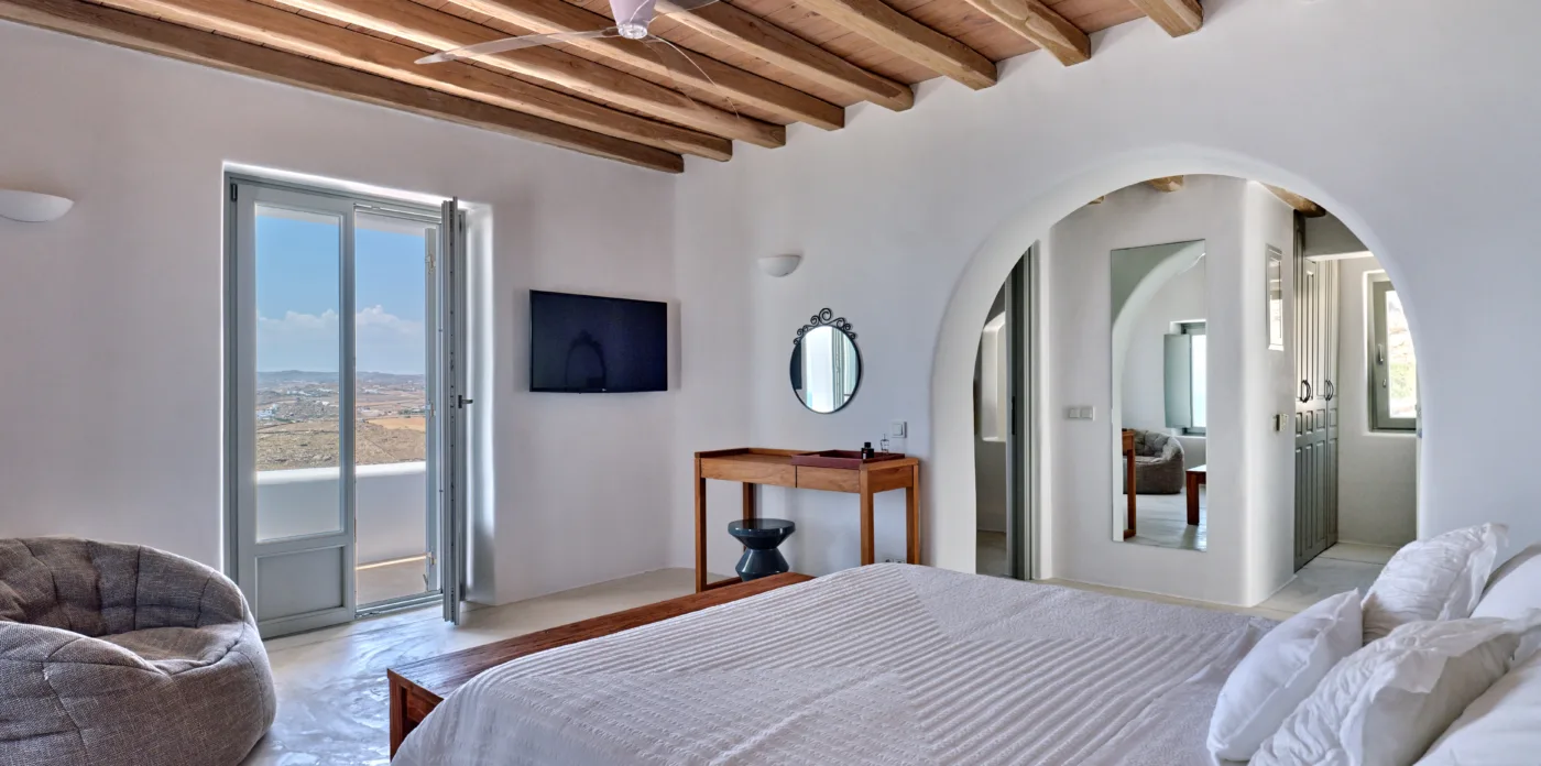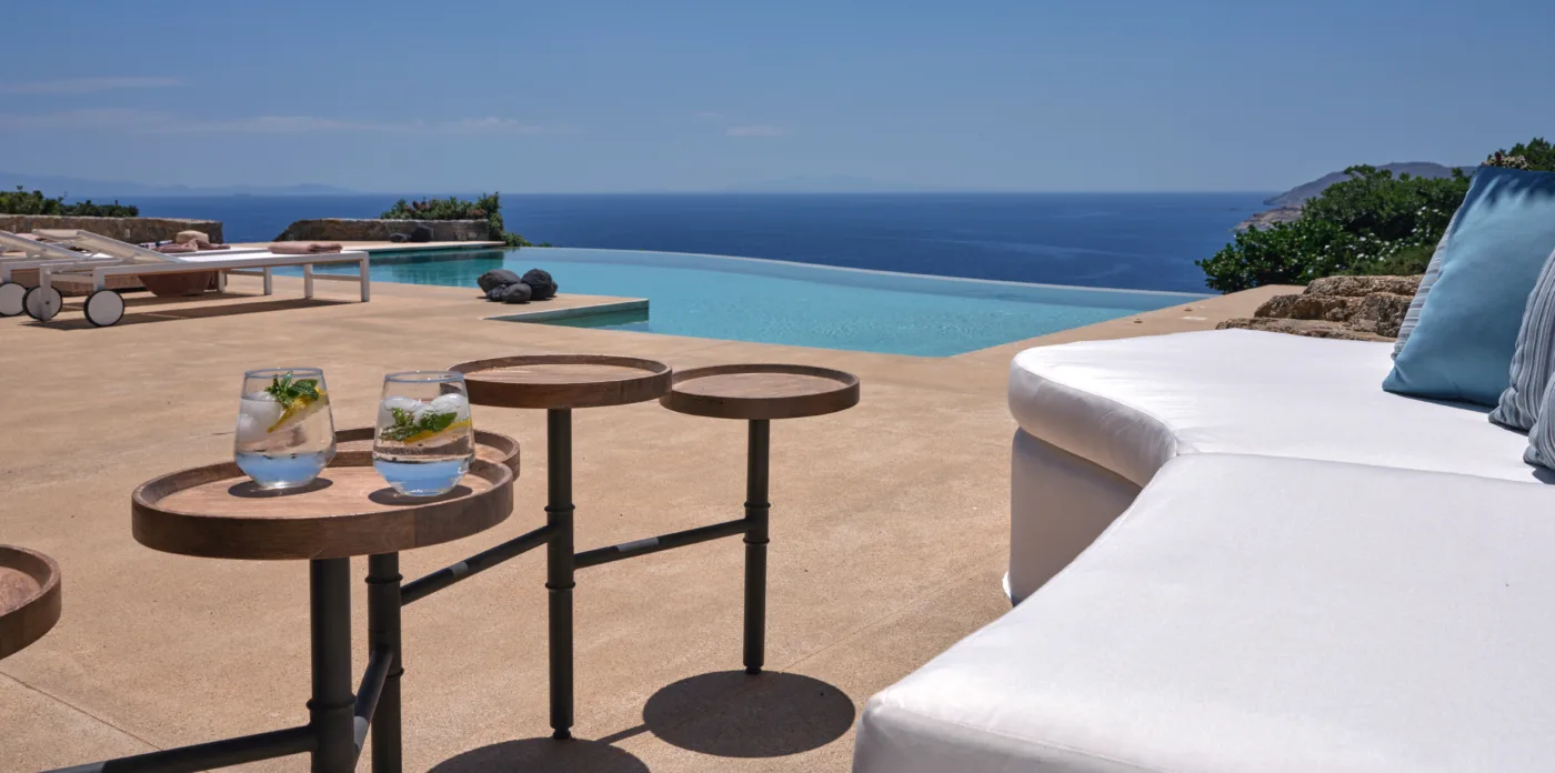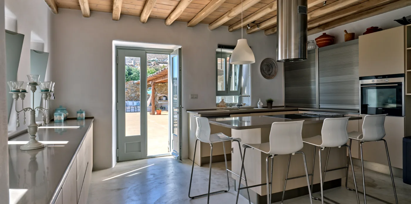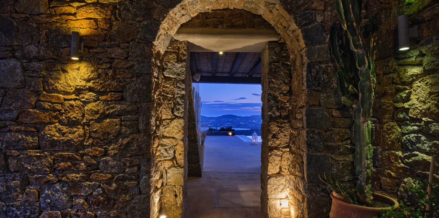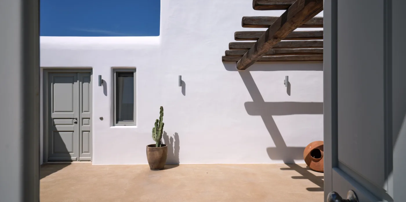 Η αρχιτεκτονική της βίλας βρίσκεται σε απόλυτη αρμονία με το φυσικό περιβάλλον των κυκλαδίτικων νησιών, προσφέροντας ένα μοναδικό μείγμα από τα καλύτερα και των δύο κόσμων, από τη θέα στη θάλασσα μέχρι το βουνό.