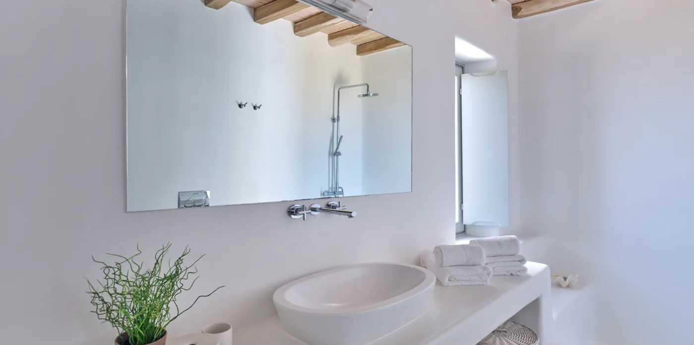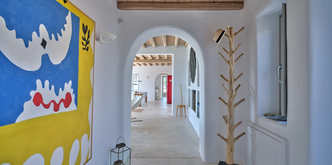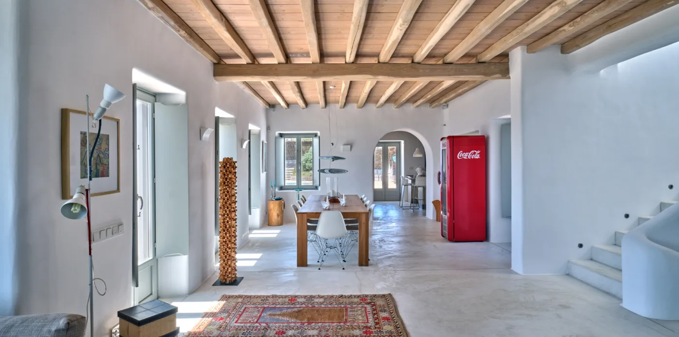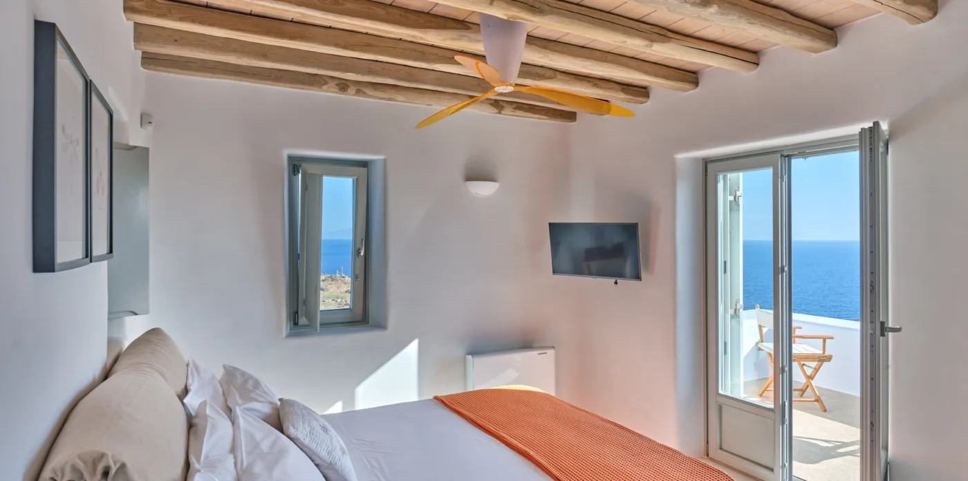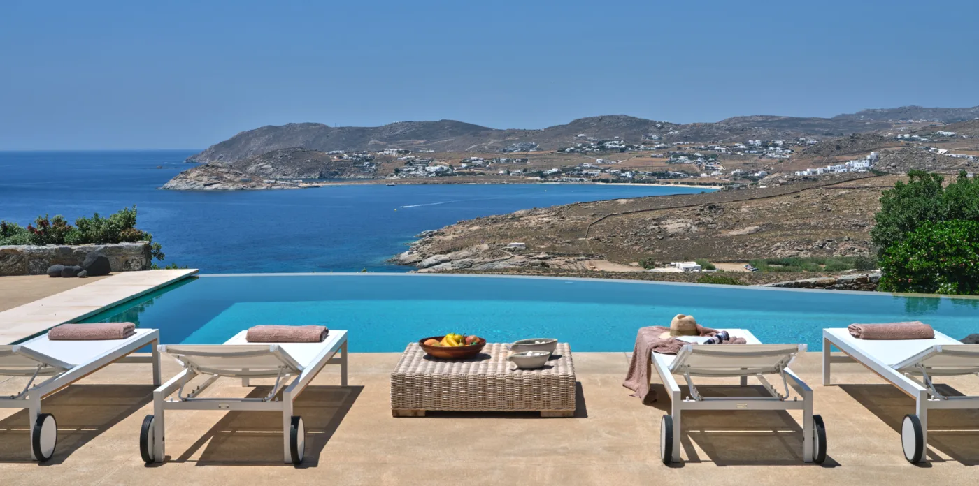 Η αρχιτεκτονική της βίλας βρίσκεται σε απόλυτη αρμονία με το φυσικό περιβάλλον των κυκλαδίτικων νησιών, προσφέροντας ένα μοναδικό μείγμα από τα καλύτερα και των δύο κόσμων, από τη θέα στη θάλασσα μέχρι το βουνό.