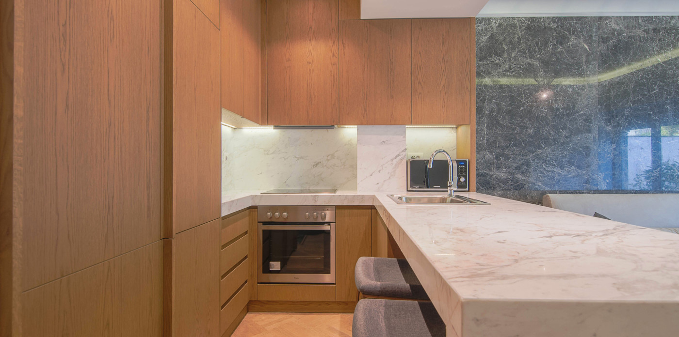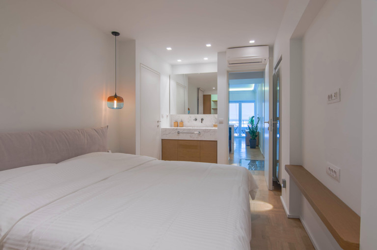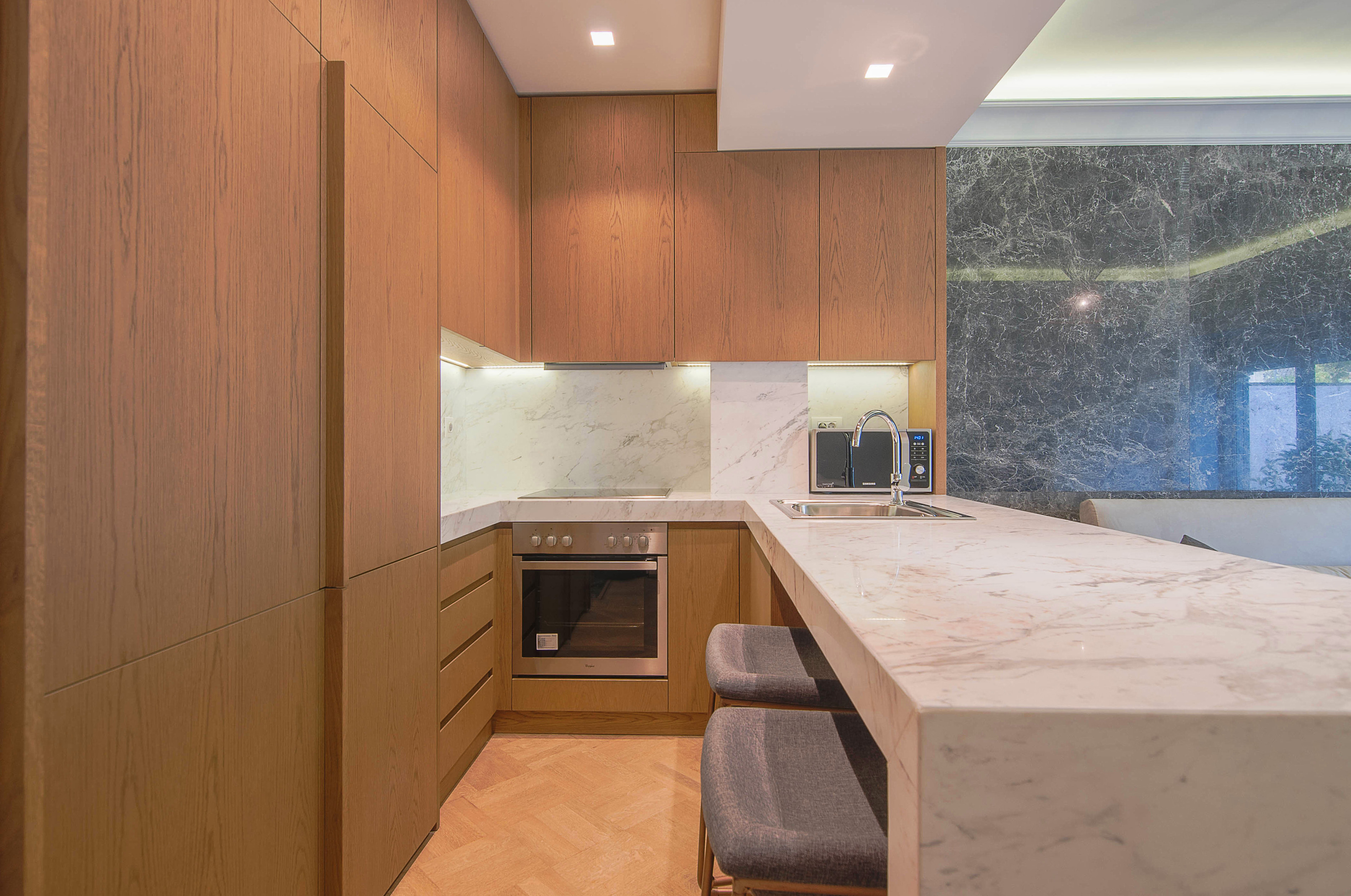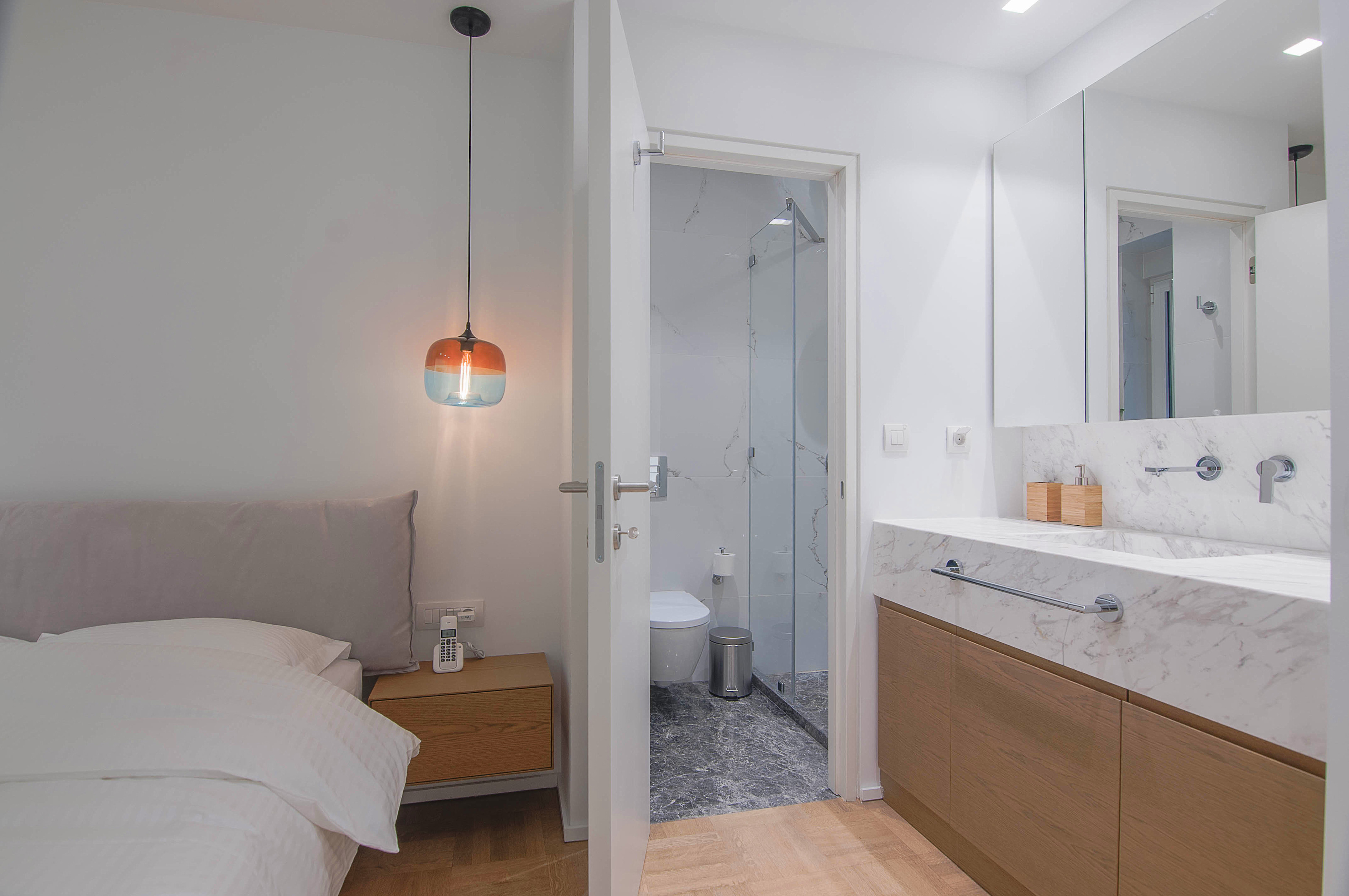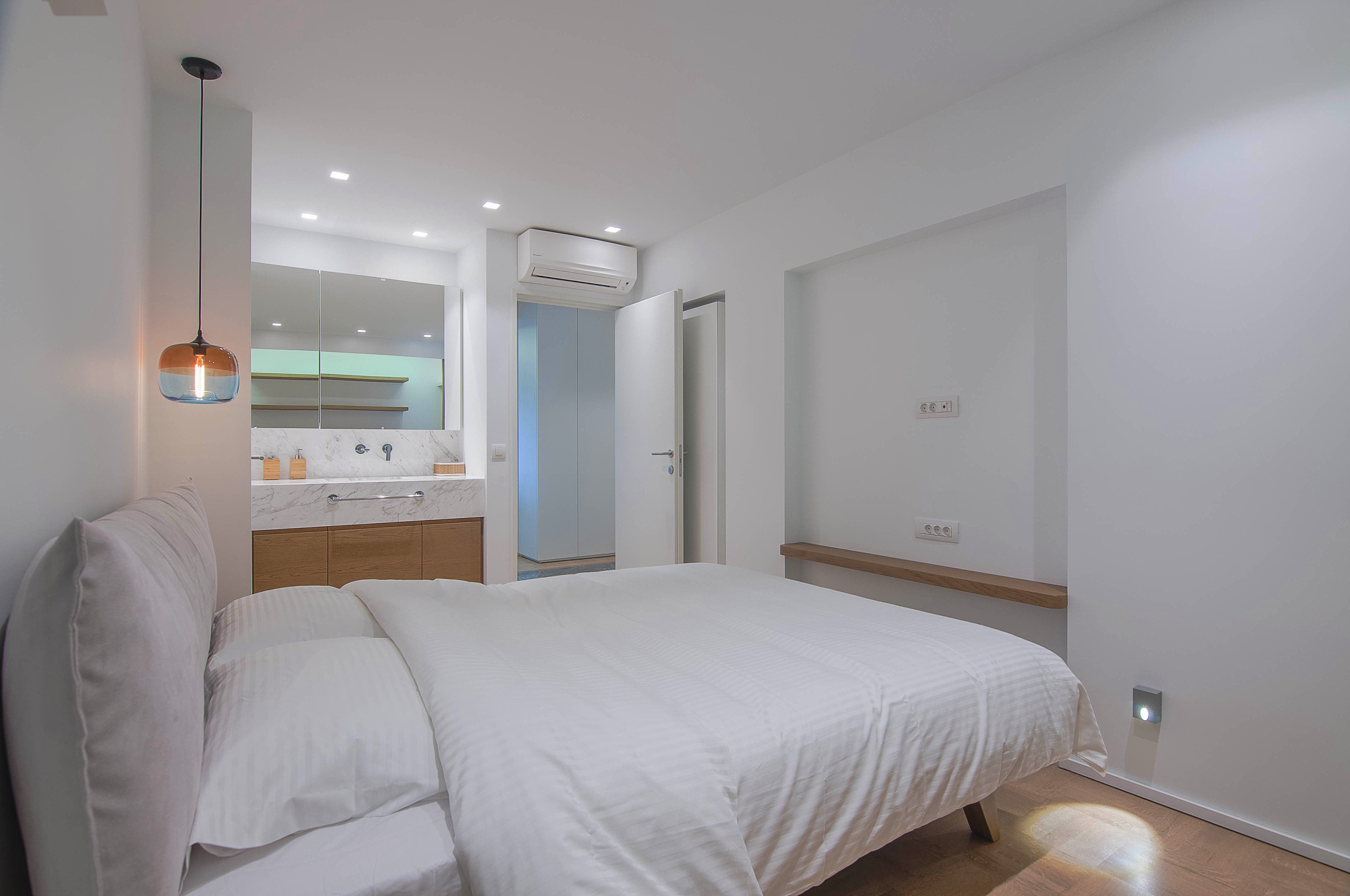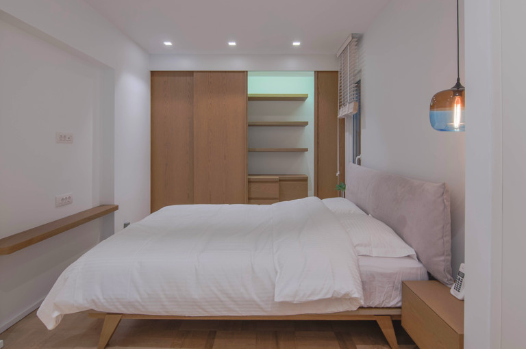 Ολοκληρώστε τη μέρα σας με έναν καλό βραδινό ύπνο, στο άνετο υπνοδωμάτιο στο πίσω μέρος, μακριά από κάθε περισπασμό. Μια εξαιρετικά έξυπνη πολυτελής μεγάλη ξύλινη ντουλάπα κρύβεται καλά πίσω από την ξύλινη λεπτομέρεια.
