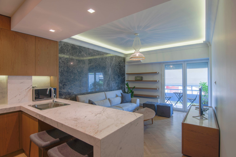 Αυτό το μοναδικό διαμέρισμα bijoux βρίσκεται στον πιο πολυσύχναστο δρόμο του Κολωνακίου, στον 5ο όροφο. Ο μέγιστος φυσικός φωτισμός σε αυτό το διαμέρισμα με την ψηλή οροφή συνδυάζεται τέλεια με το ιταλικό μάρμαρο και τις ξύλινες λεπτομέρειες, για να δημιουργήσει μια έξυπνη και ζεστή ατμόσφαιρα.