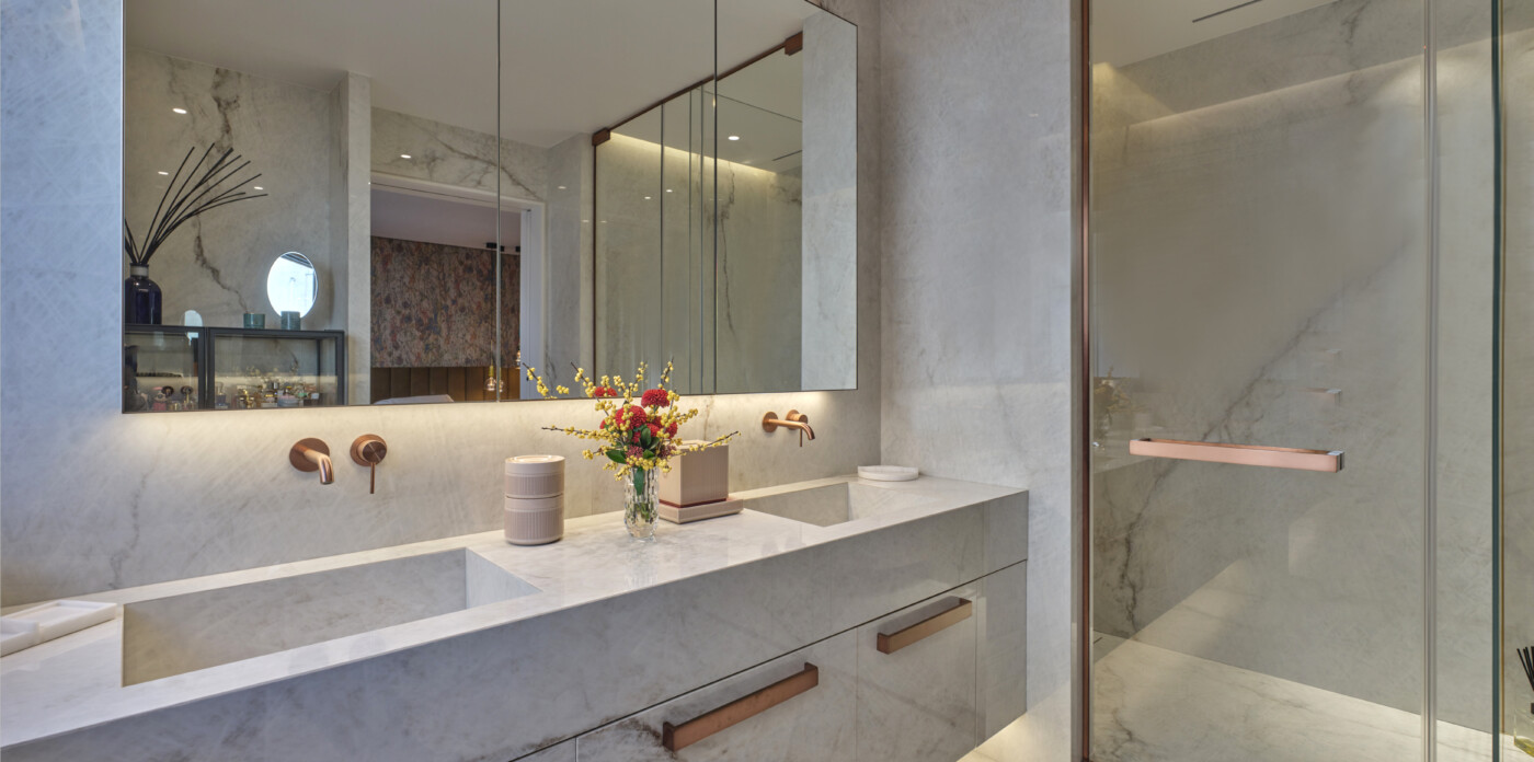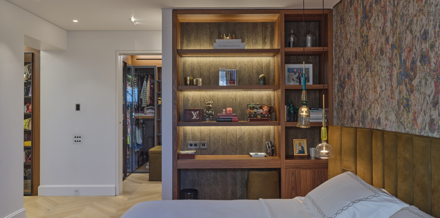 Η κύρια κρεβατοκάμαρα είναι μια ειρηνική και πολύ γοητευτική σουίτα - καταφύγιο. Το δωμάτιο είναι διακοσμημένο σε απαλές, γήινες αποχρώσεις με βελούδινες βελούδινες πινελιές, δημιουργώντας μια πολυτελή και άνετη ατμόσφαιρα. Τα όμορφα έπιπλα και ο φωτισμός Murano προσθέτουν μια ζεστή και φιλόξενη λάμψη. Μια ευρύχωρη ντουλάπα διαθέτει κομψά, από το δάπεδο μέχρι την οροφή ντουλάπια με μηχανισμούς soft-close, προσφέροντας άφθονο αποθηκευτικό χώρο με μια πινελιά κομψότητας. το ιδιωτικό μαρμάρινο μπάνιο προσφέρει μια εμπειρία σαν σπα με τα πολυτελή του τελειώματα.