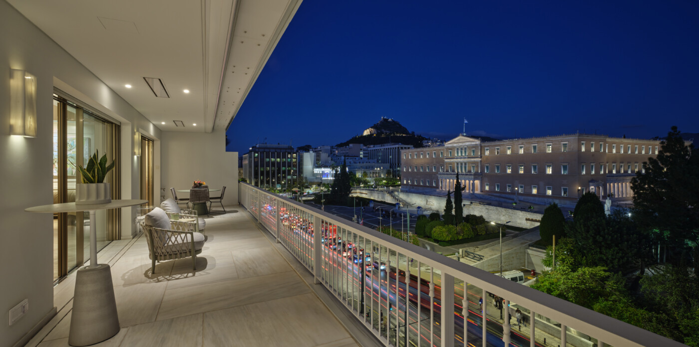 Η βεράντα του στον 5ο όροφο, με τα μοντέρνα κιγκλιδώματα, είναι ιδανική για φαγητό στο ύπαιθρο ή χαλάρωση κάτω από τον αθηναϊκό ήλιο. Οι αναδιπλούμενες τέντες παρέχουν σκιά κατά τη διάρκεια της ημέρας, καθιστώντας το ιδανικό σημείο για να απολαύσετε τη θέα της πόλης μέρα ή νύχτα.
