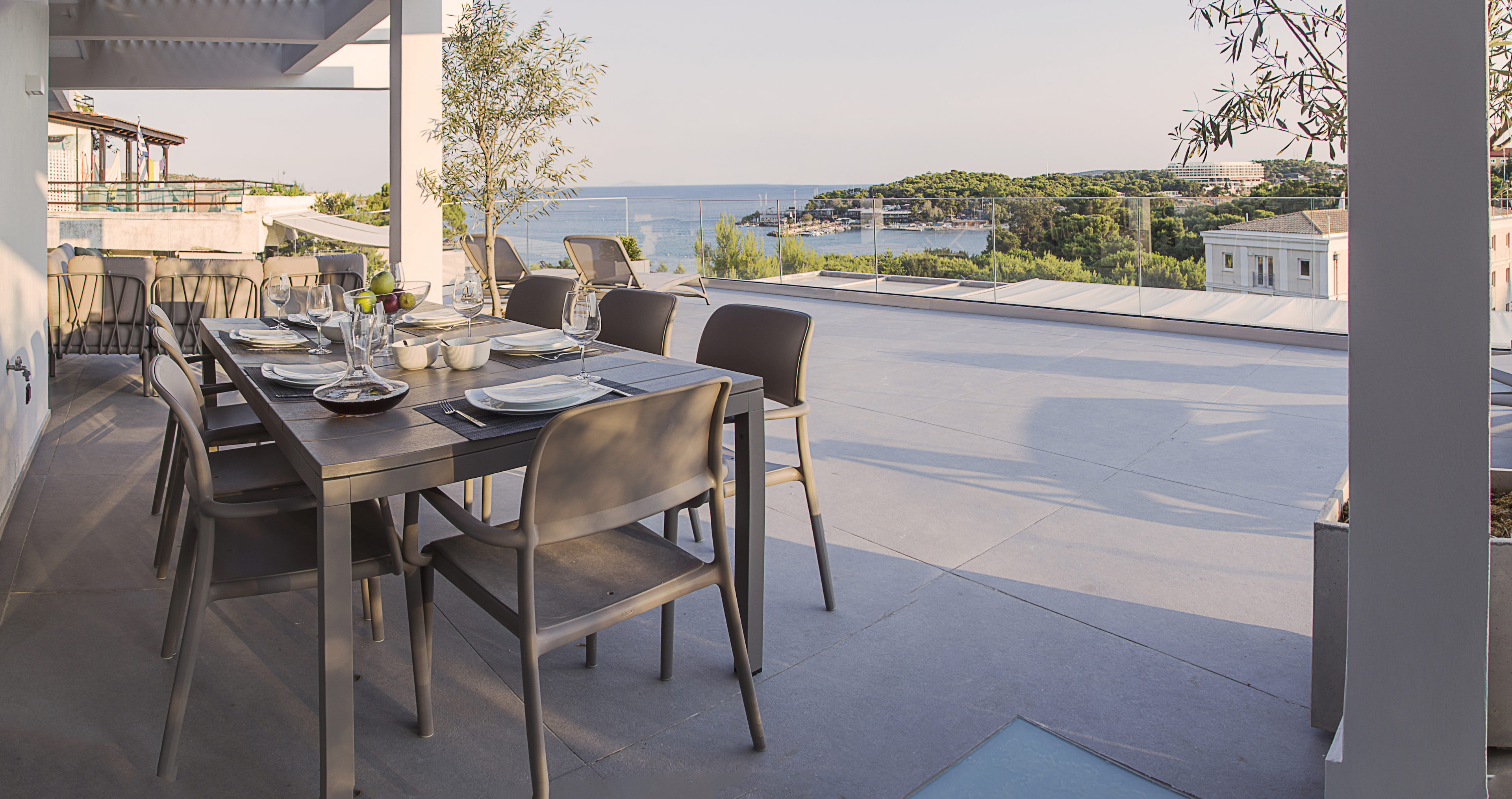 Το διαμέρισμα διαθέτει τον πιο υπέροχο εξωτερικό χώρο 120 τ.μ. που θα σας υποδεχτεί για να χαλαρώσετε και να απολαύσετε όλη την ημέρα προσφέροντας εκπληκτική θέα στη θάλασσα και την κομψή περιοχή του Λαιμού - Βουλιαγμένη.