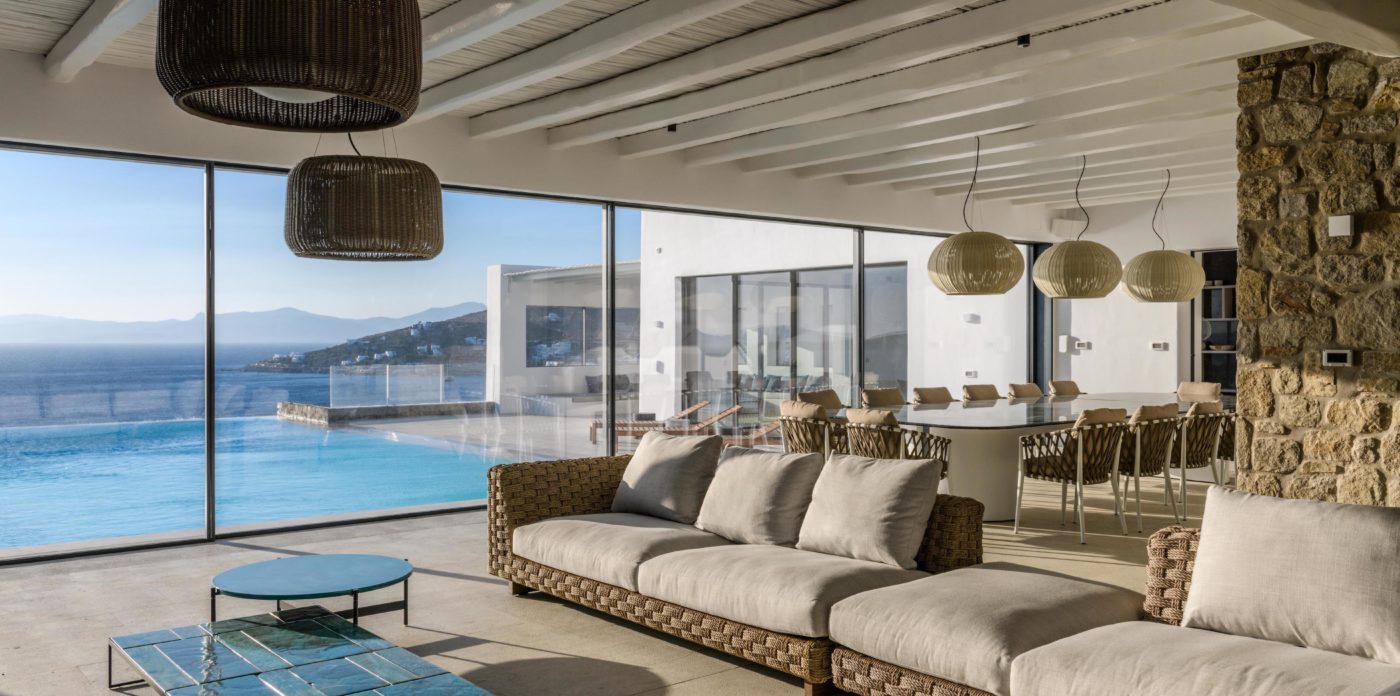 Η διασκέδαση στον ήλιο συναντά τα υψηλότερα πρότυπα κομψότητας σε αυτό το εκλεπτυσμένο ακίνητο στη Μύκονο. Με εκπληκτική και μαγευτική θέα στη θάλασσα του Αιγαίου και μια σούπερ πισίνα υπερχείλισης, ανοίγει τις πόρτες του για να νιώσετε ένα ήρεμο και πολυτελές περιβάλλον που αντανακλά τις χαρές των διάσημων διακοπών σε ένα από τα πιο κοσμοπολίτικα νησιά του κόσμου. Μόλις 2,5χλμ. από τη Χώρα (πόλη της Μυκόνου) και 1χλμ. από τον Ορνό, το δεύτερο πιο διάσημο χωριό/πόλη του νησιού με όλες τις ανέσεις που μπορεί να προσφέρει ένα κοσμοπολίτικο χωριό.