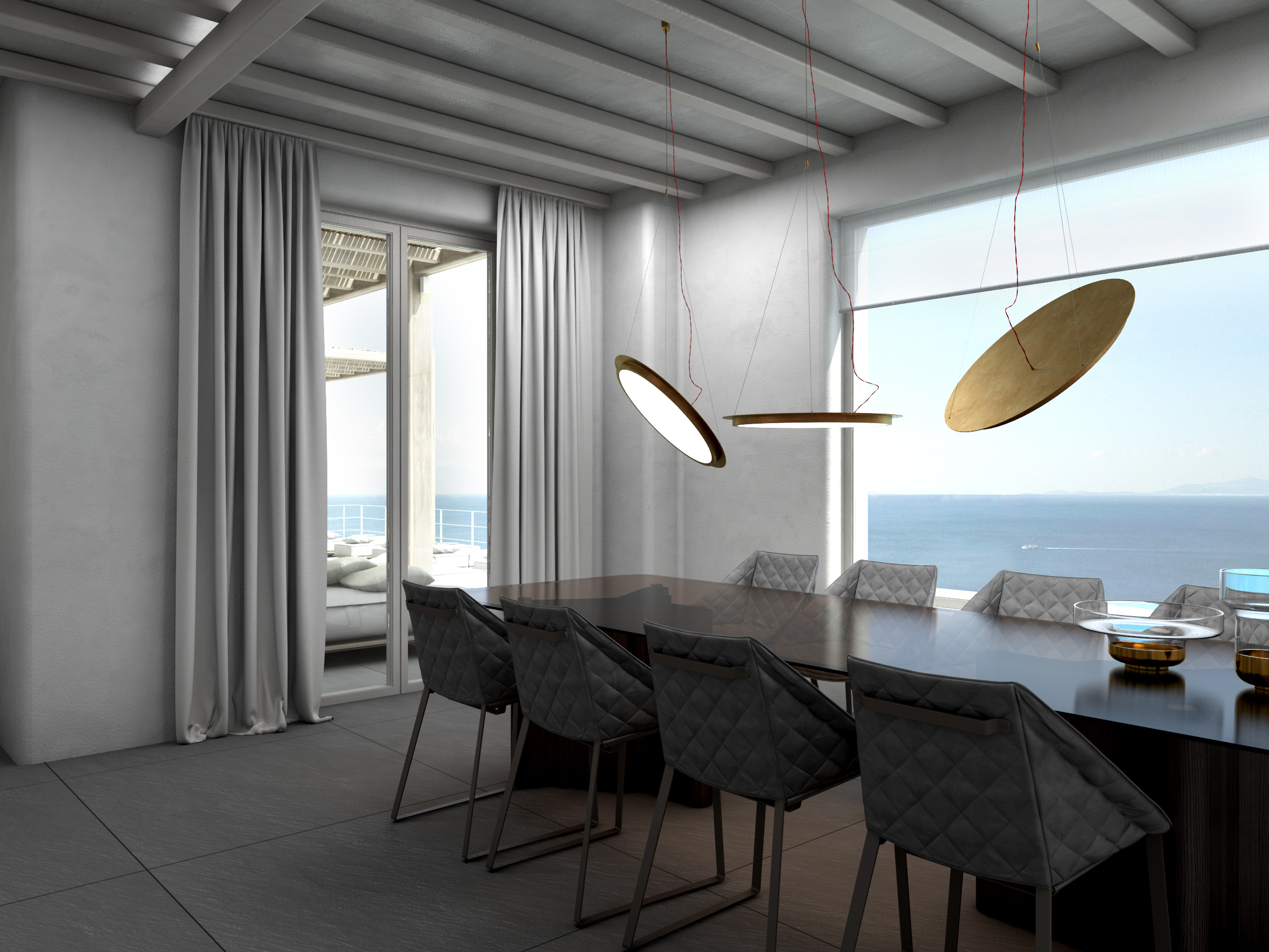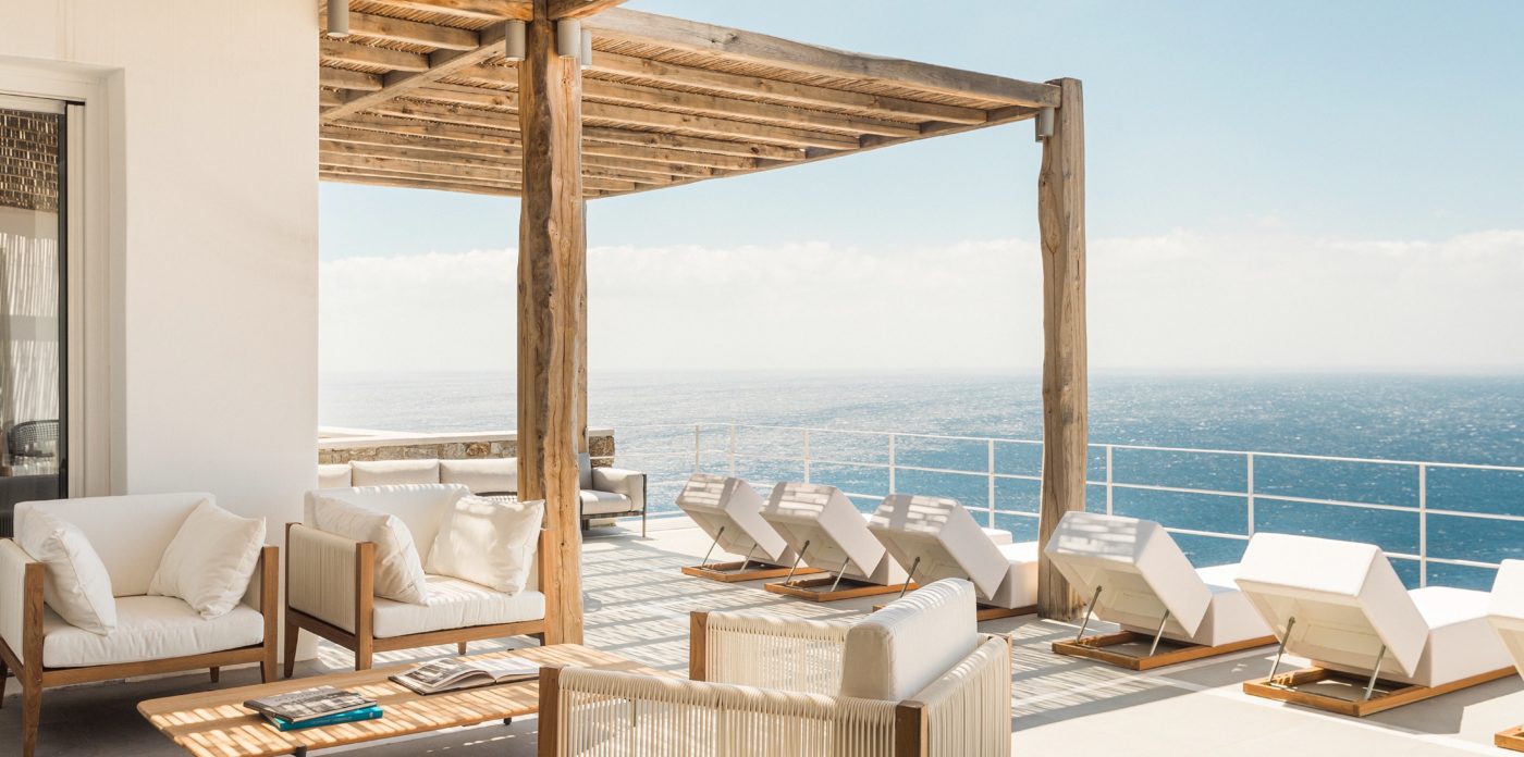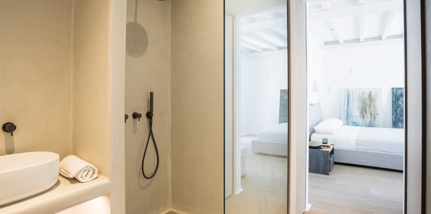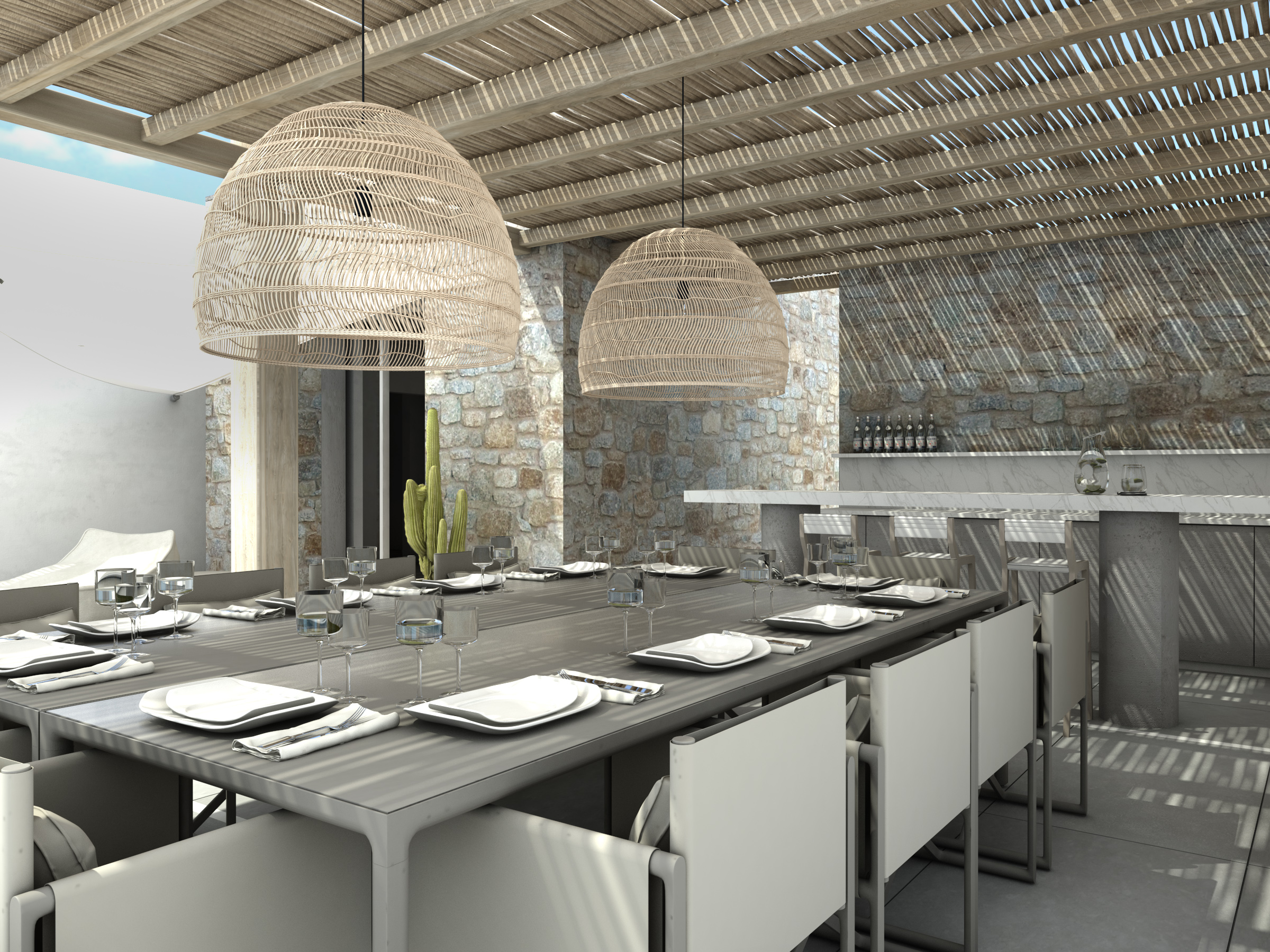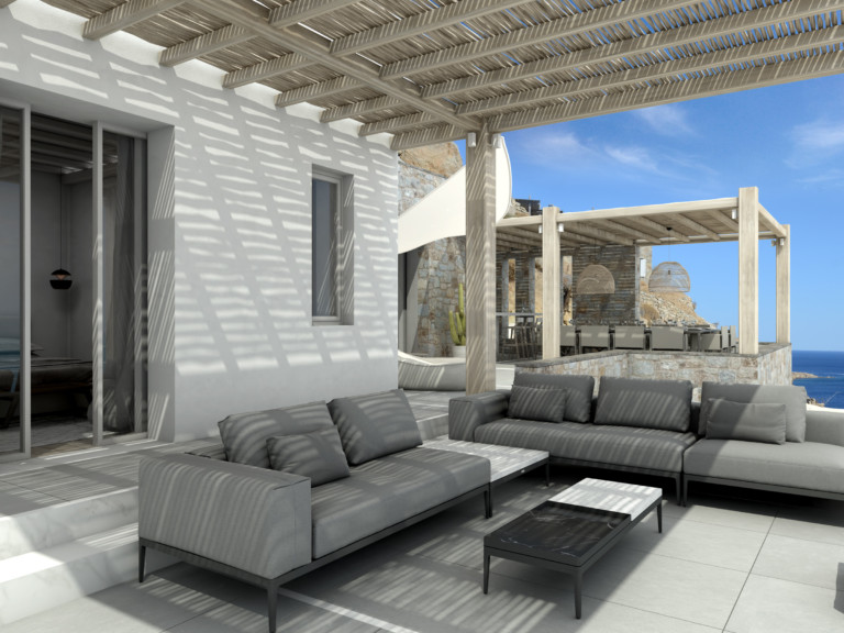 Οι απλές, γήινες αποχρώσεις, που τονίζονται από πινελιές μαύρου και λευκού, δημιουργούν μια χαλαρωτική αίσθηση σε όλο το εσωτερικό του καταλύματος. Από τα χειροποίητα έπιπλα κατά παραγγελία μέχρι τα άψογα υλικά και τελειώματα, αυτό το ακίνητο θα ξεχωρίσει ακόμη και ανάμεσα στα πιο επαινετά ακίνητα του νησιού. Ρίξτε μια ματιά από τις μεγάλες γυάλινες πόρτες της βεράντας στην εντυπωσιακή θέα στη θάλασσα. Ανοίξτε αυτές τις πόρτες και μπορείτε εύκολα να γεμίσετε τον εσωτερικό χώρο με φρέσκια θαλασσινή αύρα και φυσικό ηλιακό φως. Ο ανοιχτός σχεδιασμός προωθεί μια ατμόσφαιρα ελεύθερης ροής, καθιστώντας εύκολη την απόλαυση της θέας από το τραπέζι του δείπνου ή τον καναπέ του καθιστικού.