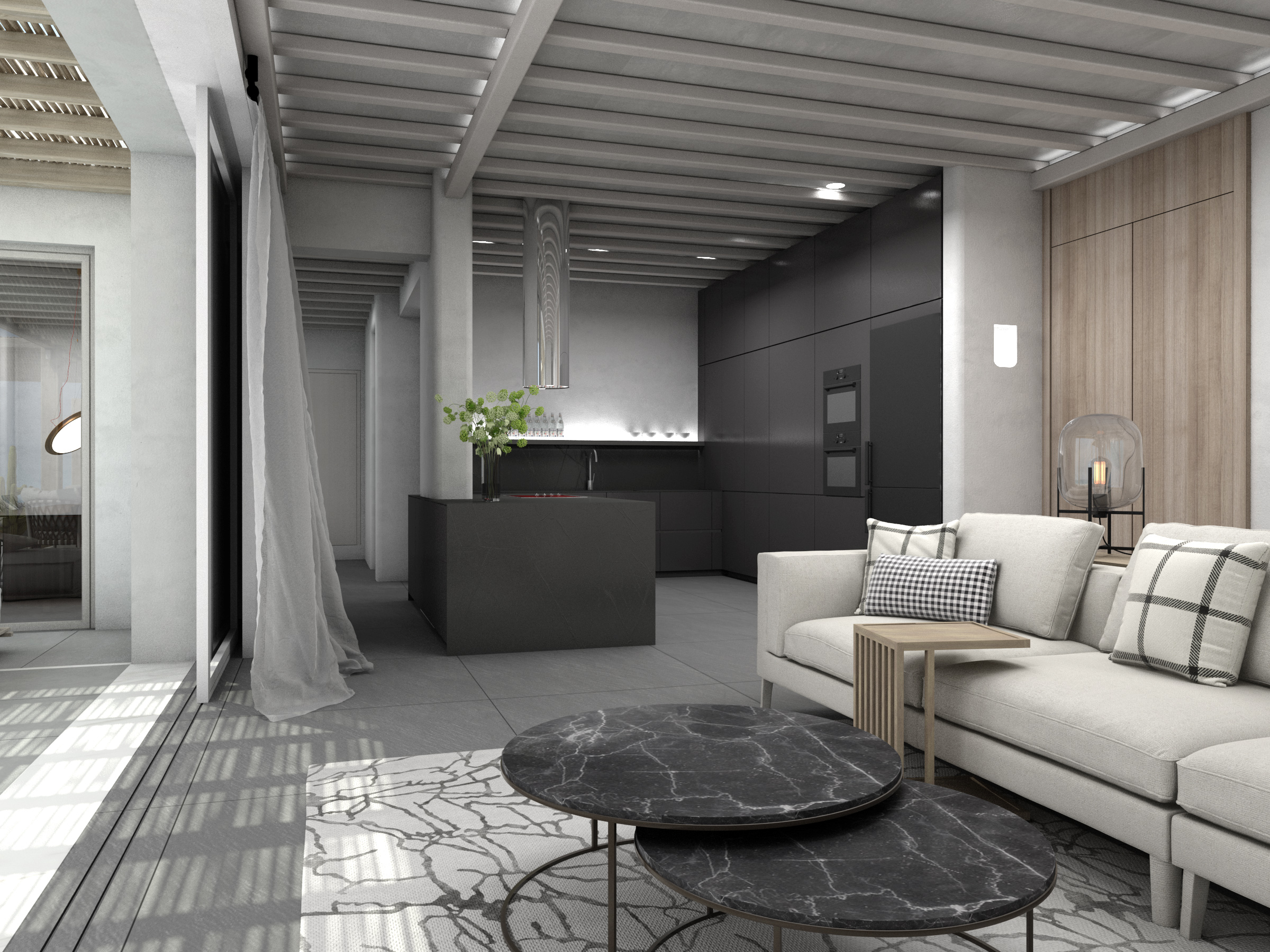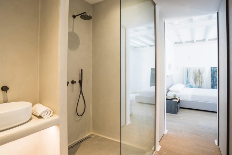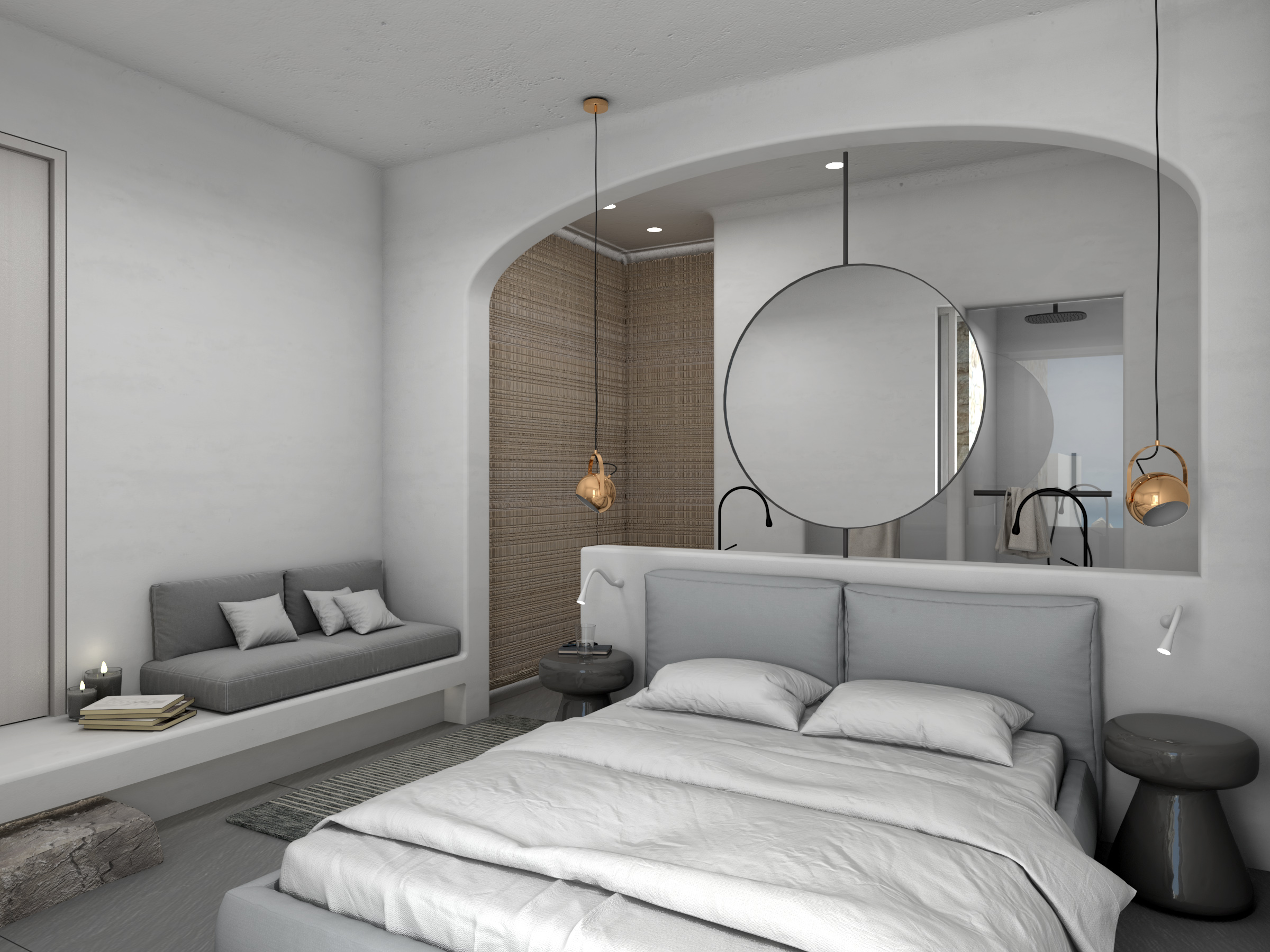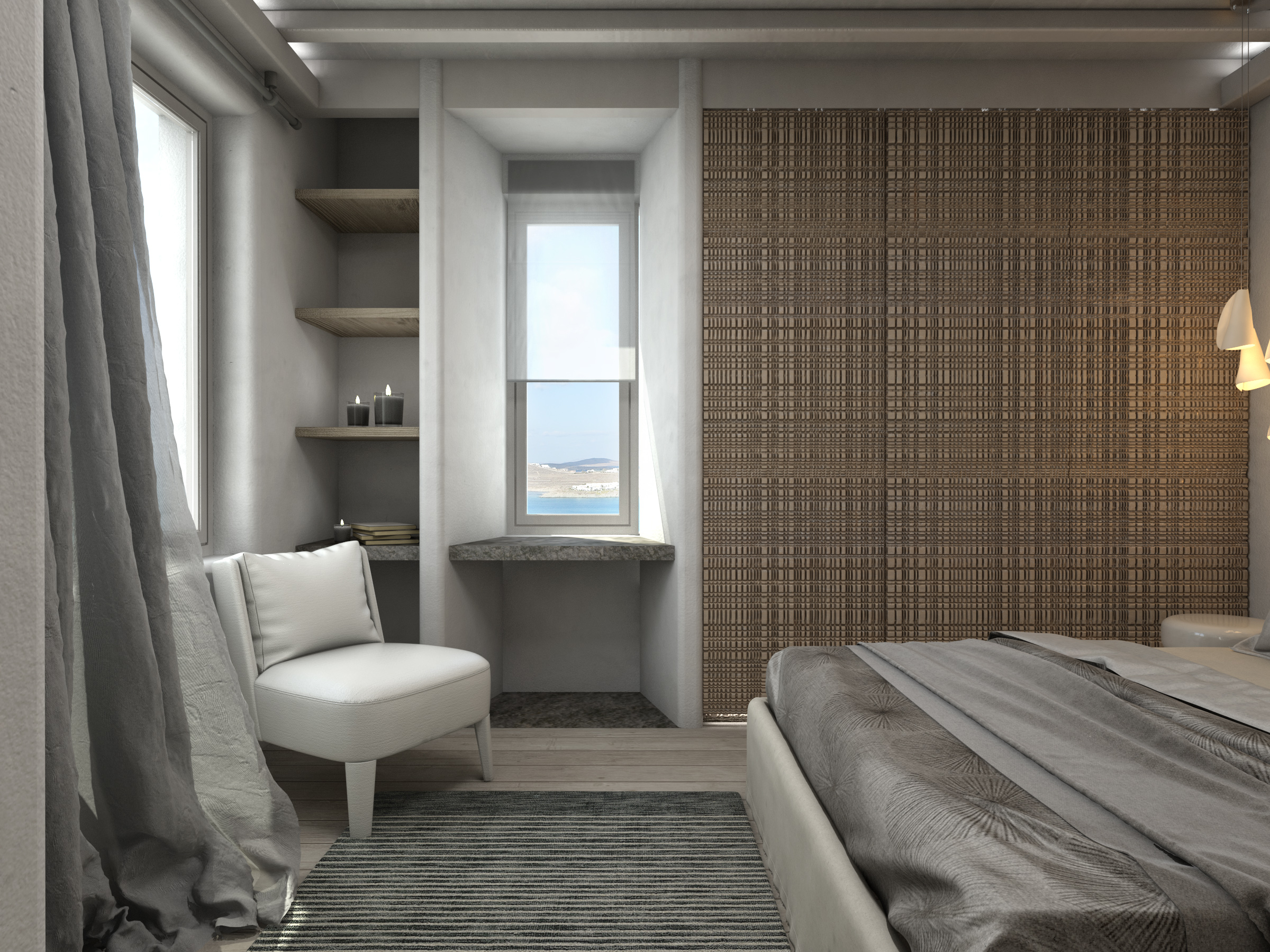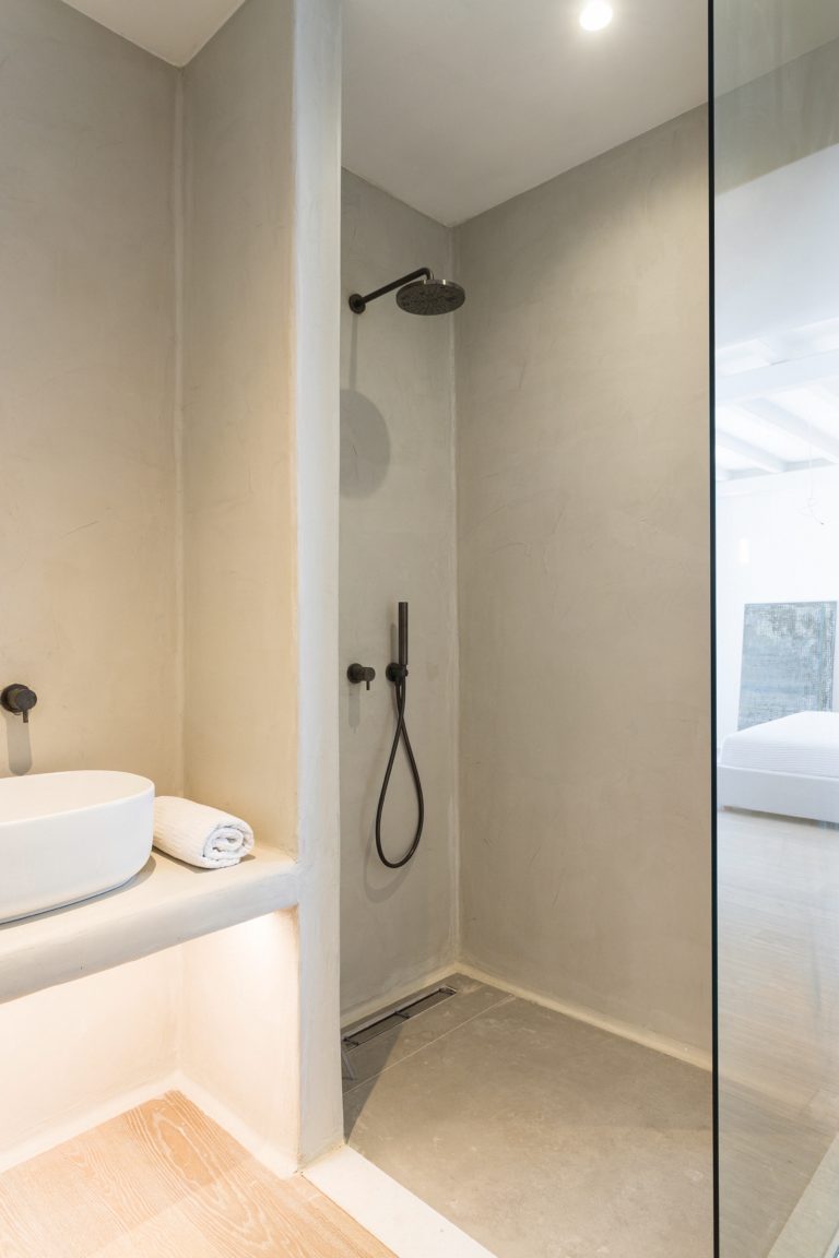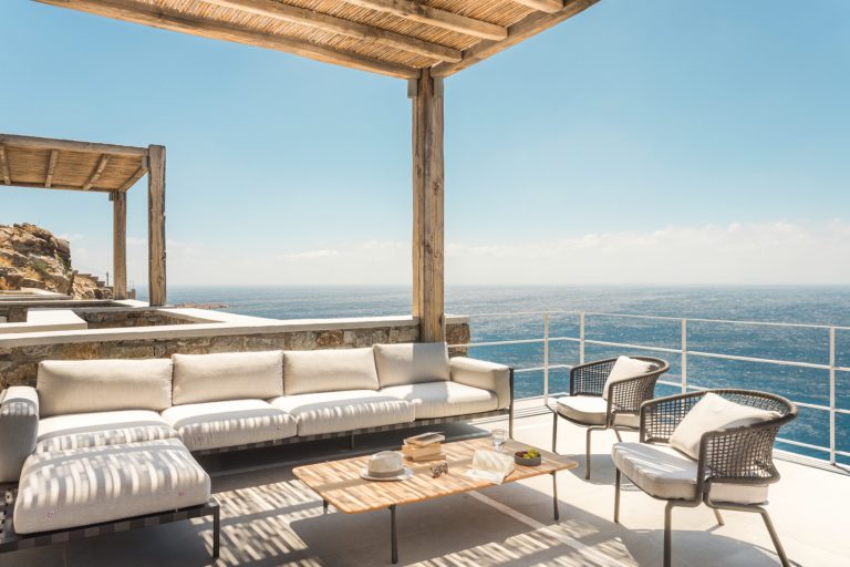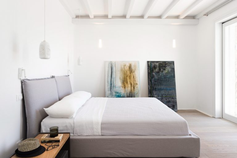Οι απλές, γήινες αποχρώσεις, που τονίζονται από πινελιές μαύρου και λευκού, δημιουργούν μια χαλαρωτική αίσθηση σε όλο το εσωτερικό του καταλύματος. Από τα χειροποίητα έπιπλα κατά παραγγελία μέχρι τα άψογα υλικά και τελειώματα, αυτό το ακίνητο θα ξεχωρίσει ακόμη και ανάμεσα στα πιο επαινετά ακίνητα του νησιού. Ρίξτε μια ματιά από τις μεγάλες γυάλινες πόρτες της βεράντας στην εντυπωσιακή θέα στη θάλασσα. Ανοίξτε αυτές τις πόρτες και μπορείτε εύκολα να γεμίσετε τον εσωτερικό χώρο με φρέσκια θαλασσινή αύρα και φυσικό ηλιακό φως. Ο ανοιχτός σχεδιασμός προωθεί μια ατμόσφαιρα ελεύθερης ροής, καθιστώντας εύκολη την απόλαυση της θέας από το τραπέζι του δείπνου ή τον καναπέ του καθιστικού.