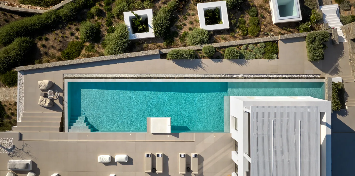 Villa Soleil, μια ονειρεμένη νησιώτικη βίλα με ατμοσφαιρική κομψότητα, που συνδυάζει επιδέξια το στυλ και την άνεση στο πιο εκπληκτικό περιβάλλον με θέα στη θάλασσα.