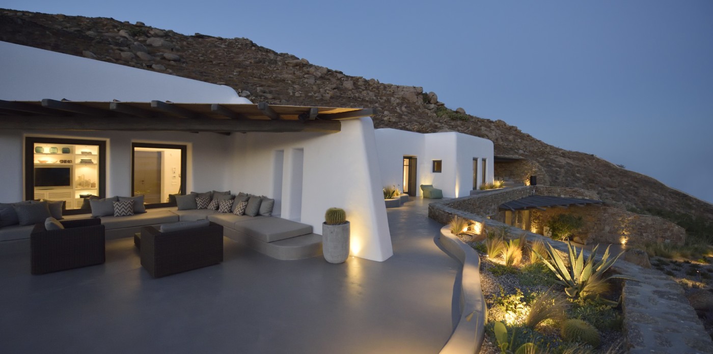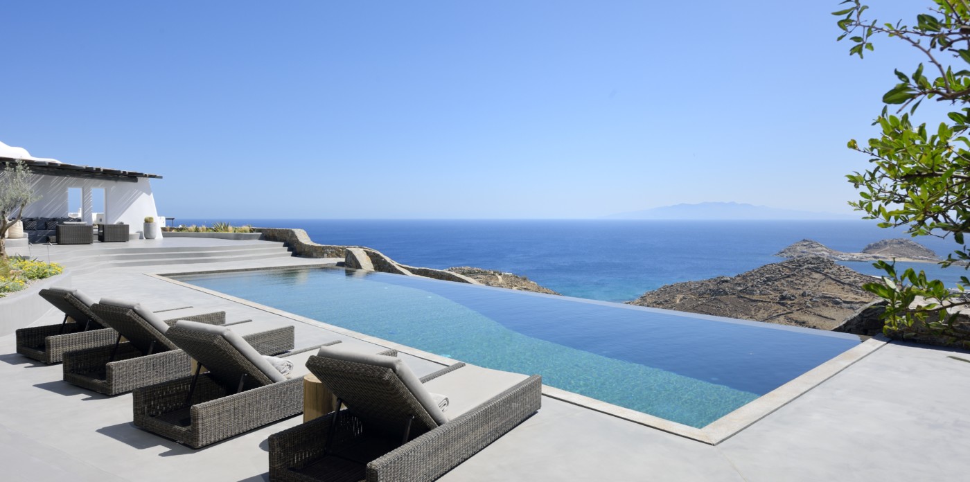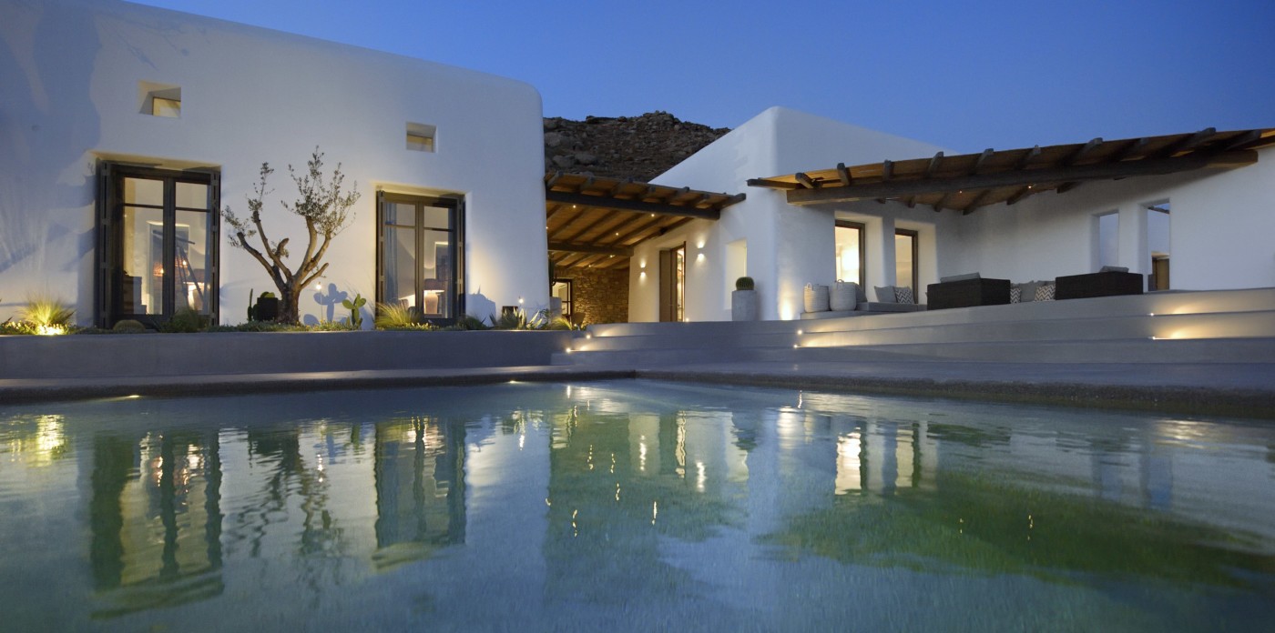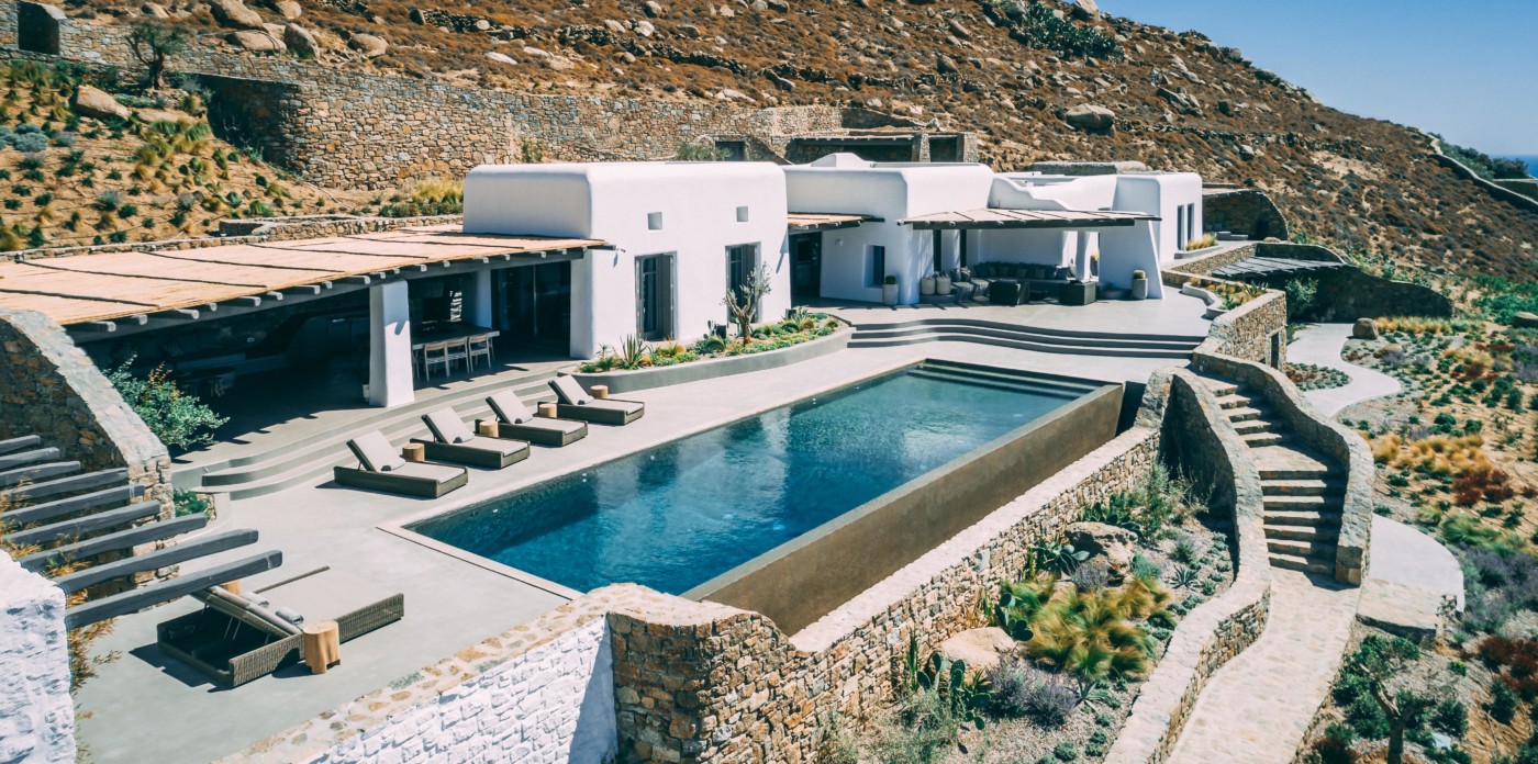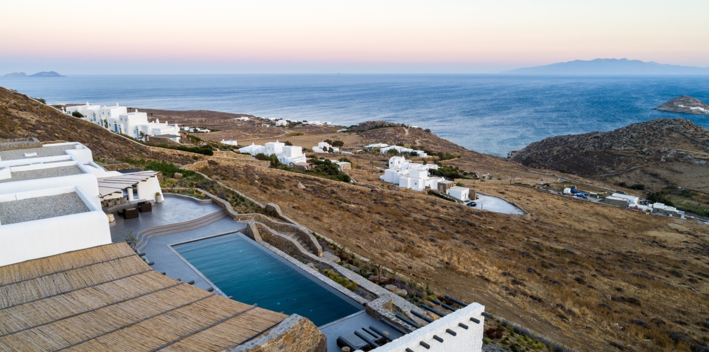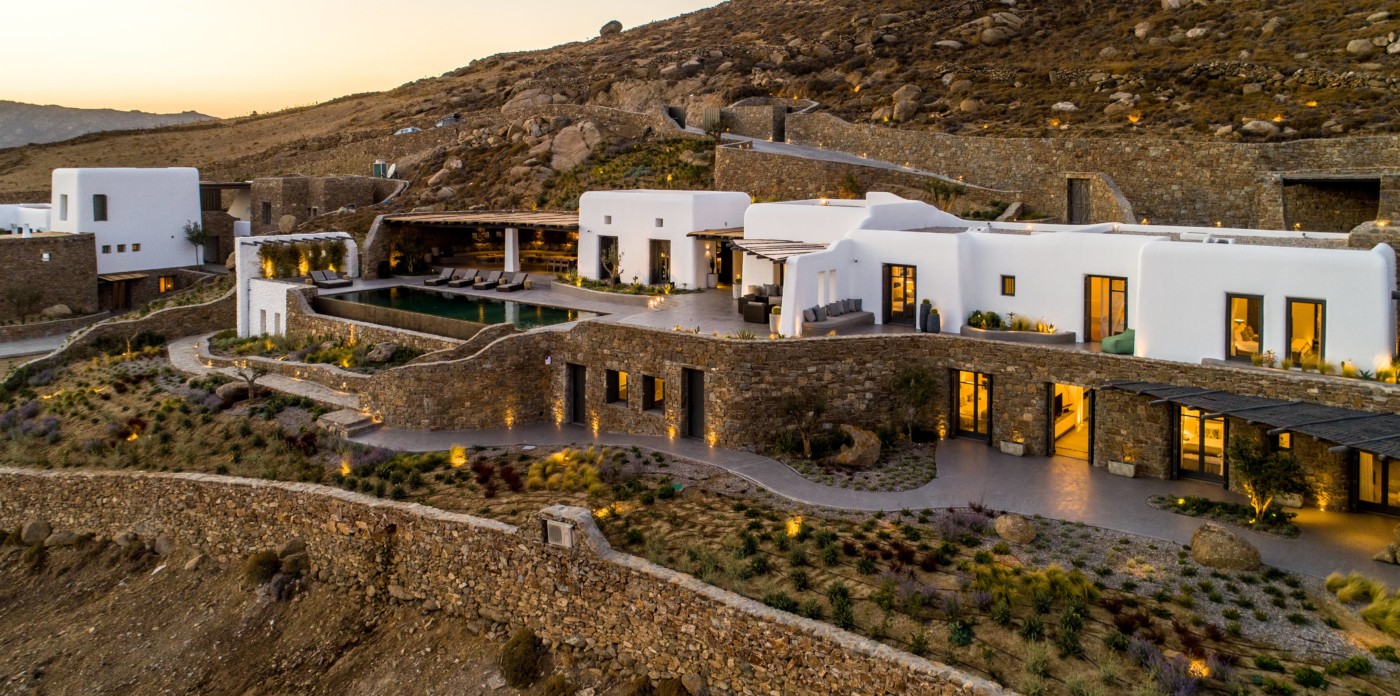 Η βίλα 8 υπνοδωματίων βρίσκεται σε έναν λόφο με σαρωτική θέα 180 μοιρών στο Αιγαίο με τη Νάξο μπροστά και την Πάρο στα δεξιά. Έχει σχεδιαστεί από το κατεξοχήν ελληνικό αρχιτεκτονικό γραφείο και το εσωτερικό της έχει σχεδιαστεί από τους Λονδρέζους Sloane & Cadogan, οι οποίοι έχουν ως αποτέλεσμα μια μοναδική σύγχρονη ερμηνεία της παραδοσιακής κυκλαδίτικης αρχιτεκτονικής και σχεδιασμού.