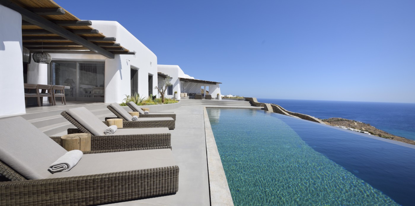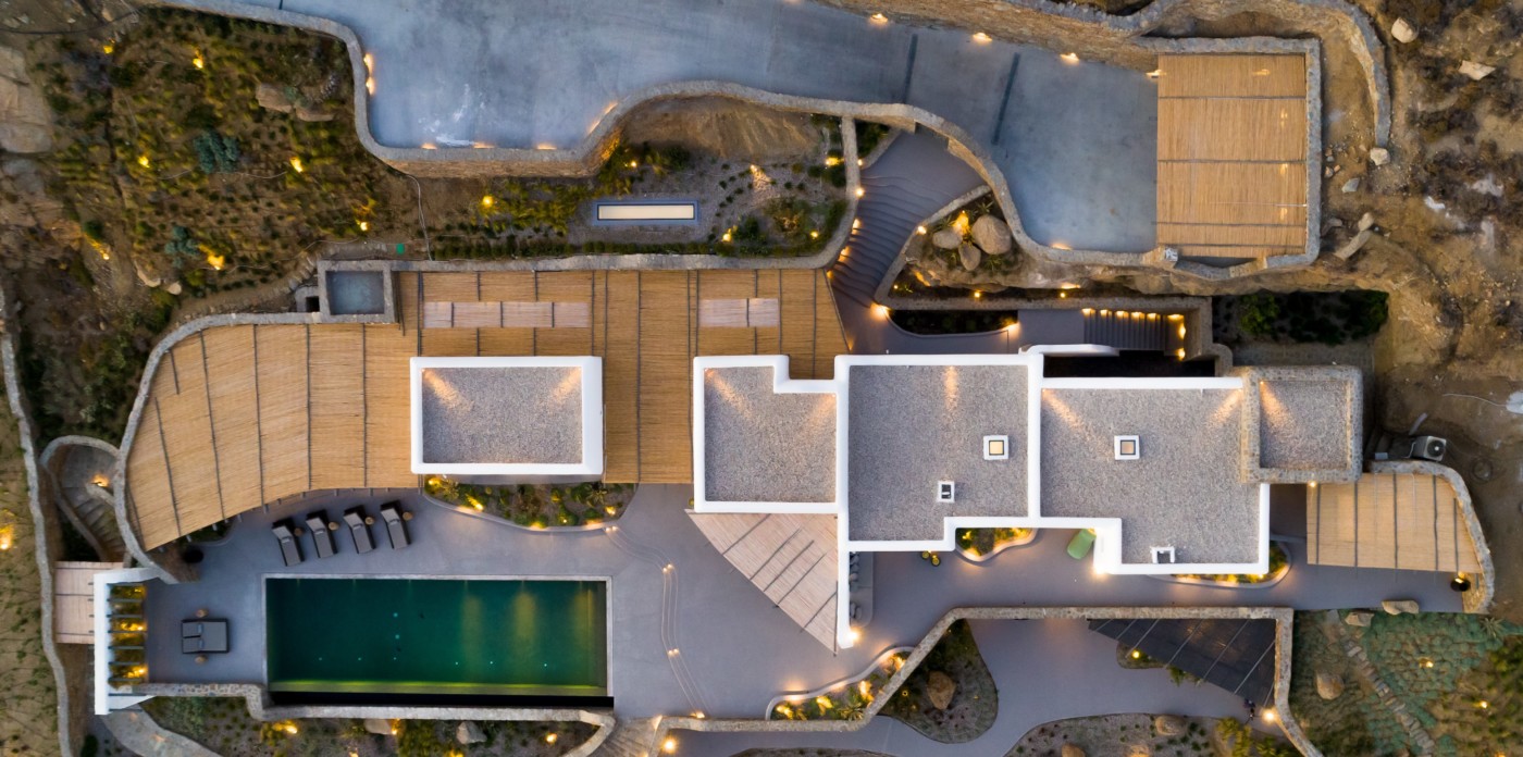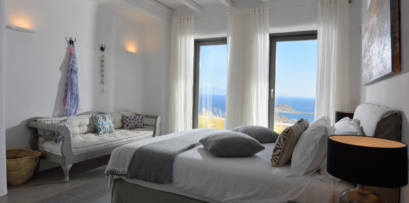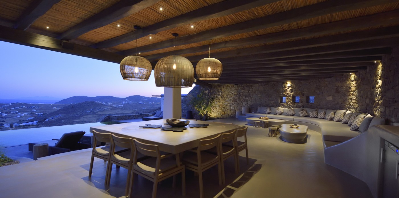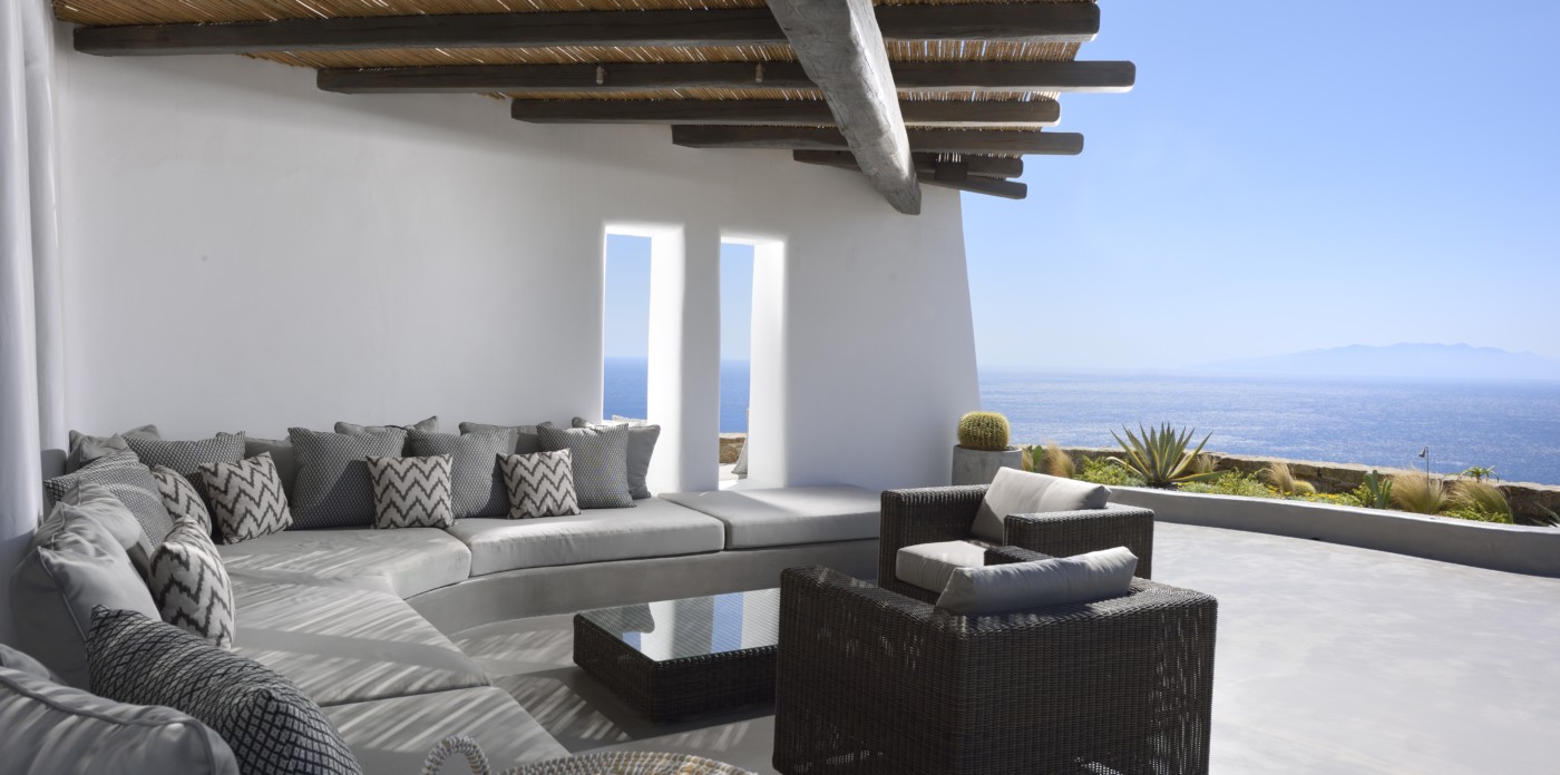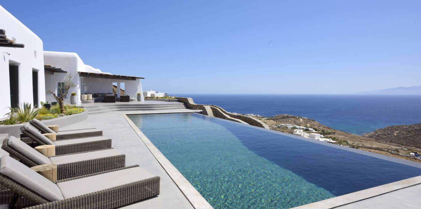 Η βίλα 8 υπνοδωματίων βρίσκεται σε έναν λόφο με σαρωτική θέα 180 μοιρών στο Αιγαίο με τη Νάξο μπροστά και την Πάρο στα δεξιά. Έχει σχεδιαστεί από το κατεξοχήν ελληνικό αρχιτεκτονικό γραφείο και το εσωτερικό της έχει σχεδιαστεί από τους Λονδρέζους Sloane & Cadogan, οι οποίοι έχουν ως αποτέλεσμα μια μοναδική σύγχρονη ερμηνεία της παραδοσιακής κυκλαδίτικης αρχιτεκτονικής και σχεδιασμού.