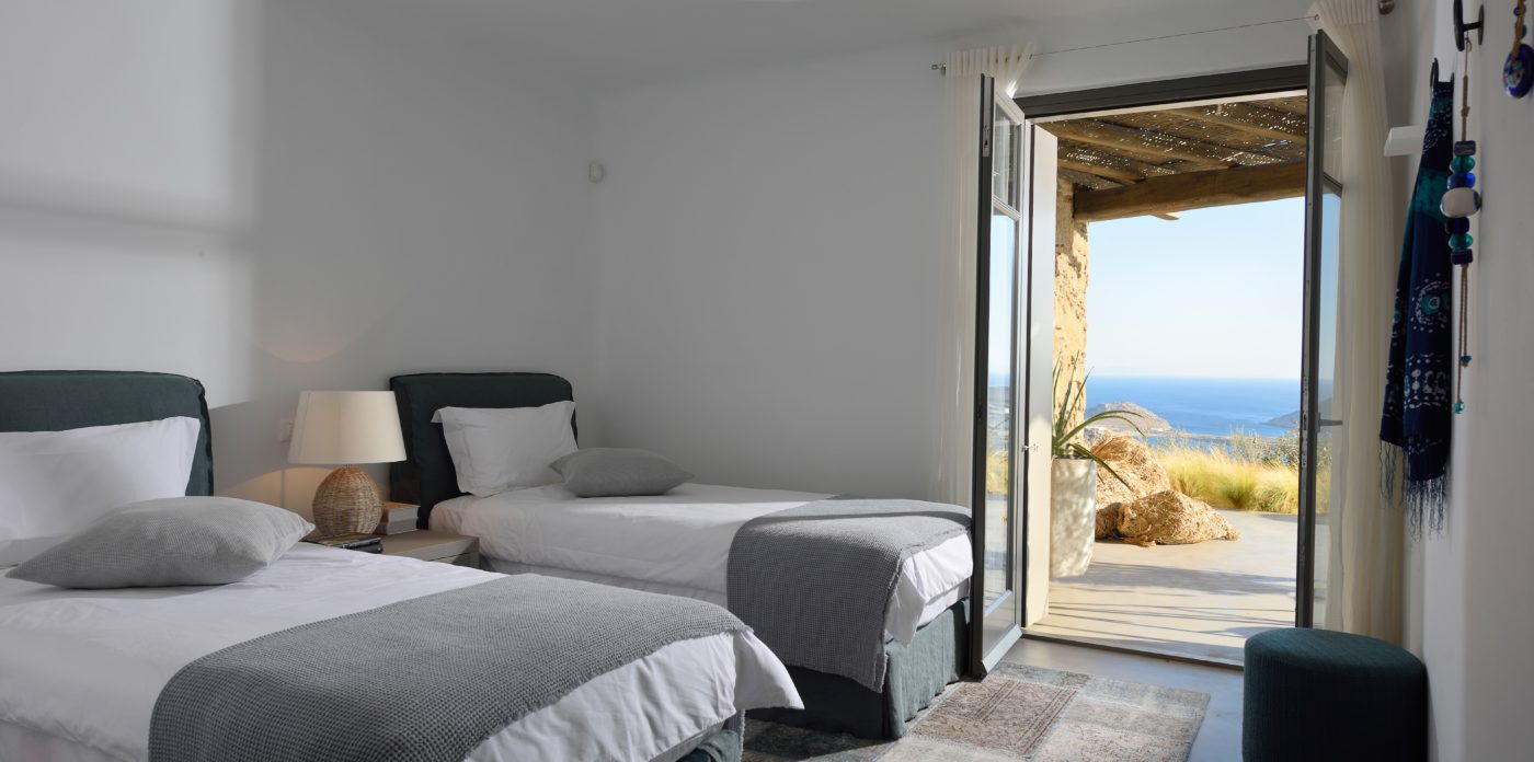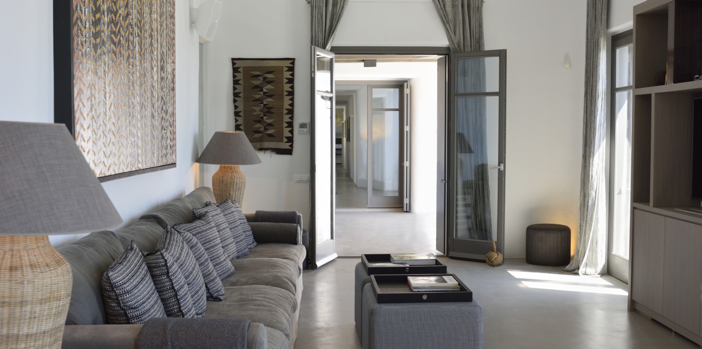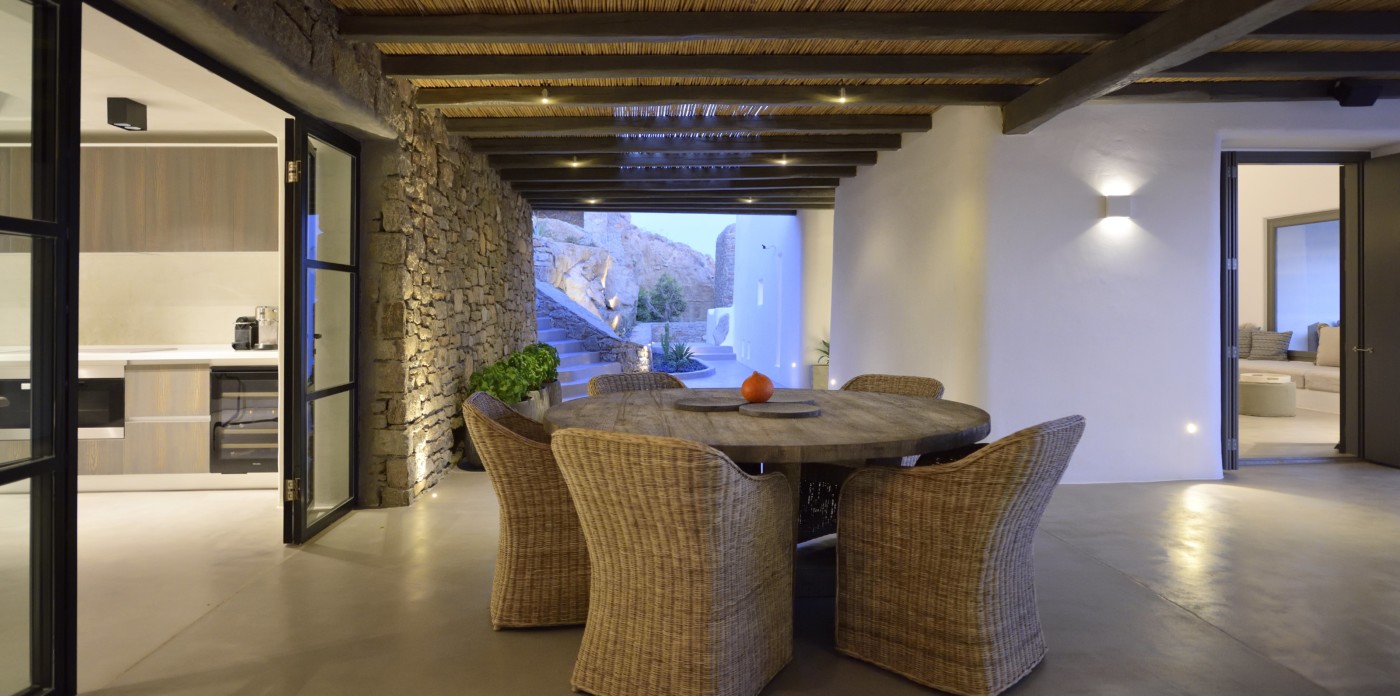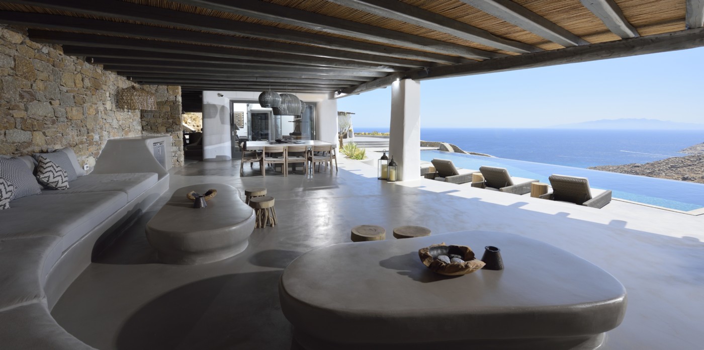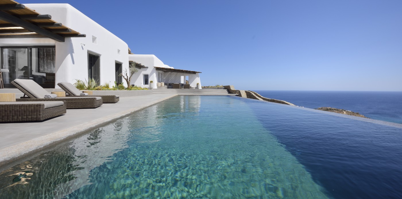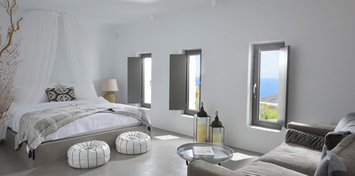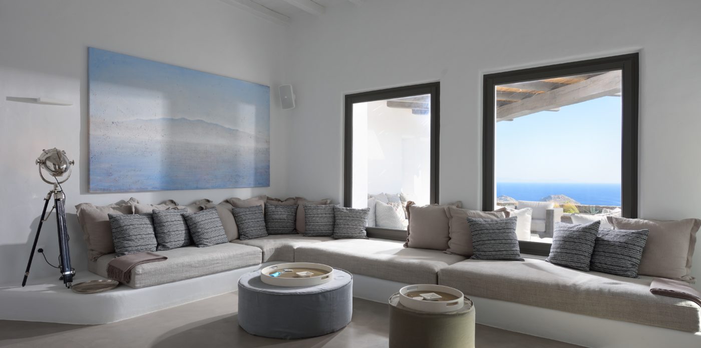 Η βίλα 8 υπνοδωματίων βρίσκεται σε έναν λόφο με σαρωτική θέα 180 μοιρών στο Αιγαίο με τη Νάξο μπροστά και την Πάρο στα δεξιά. Έχει σχεδιαστεί από το κατεξοχήν ελληνικό αρχιτεκτονικό γραφείο και το εσωτερικό της έχει σχεδιαστεί από τους Λονδρέζους Sloane & Cadogan, οι οποίοι έχουν ως αποτέλεσμα μια μοναδική σύγχρονη ερμηνεία της παραδοσιακής κυκλαδίτικης αρχιτεκτονικής και σχεδιασμού.