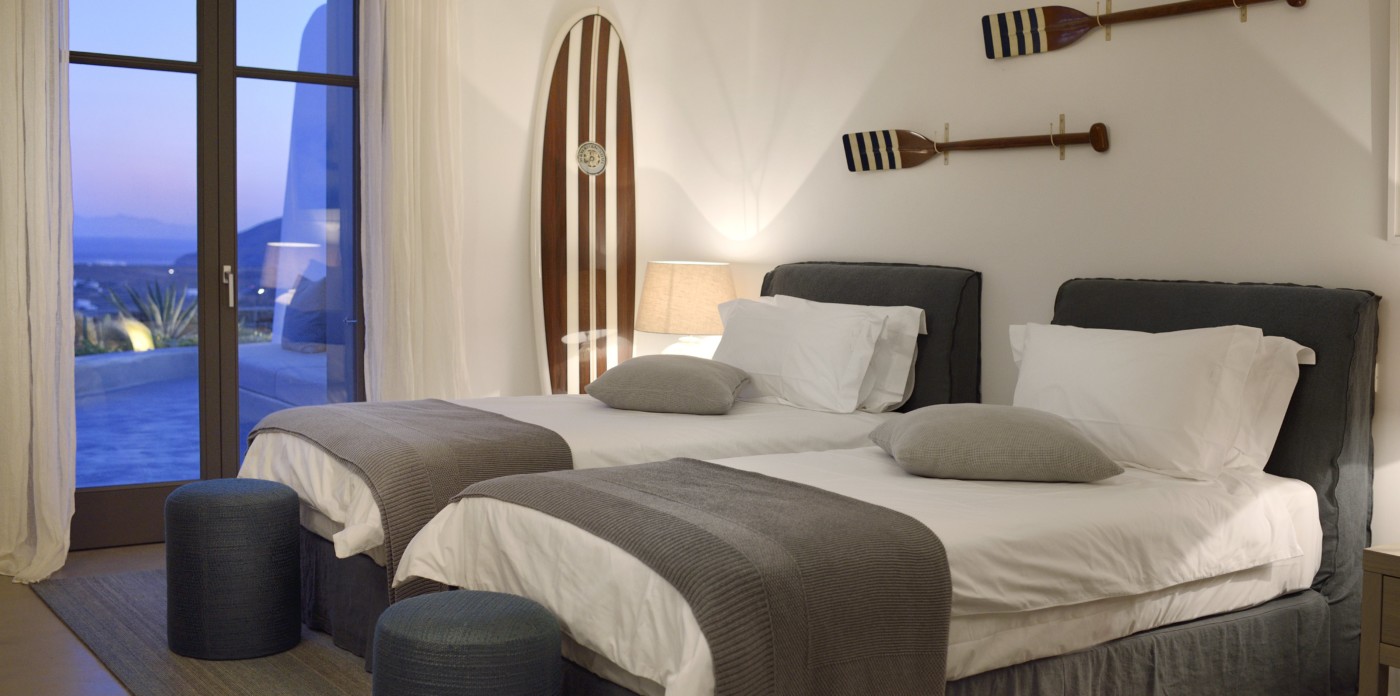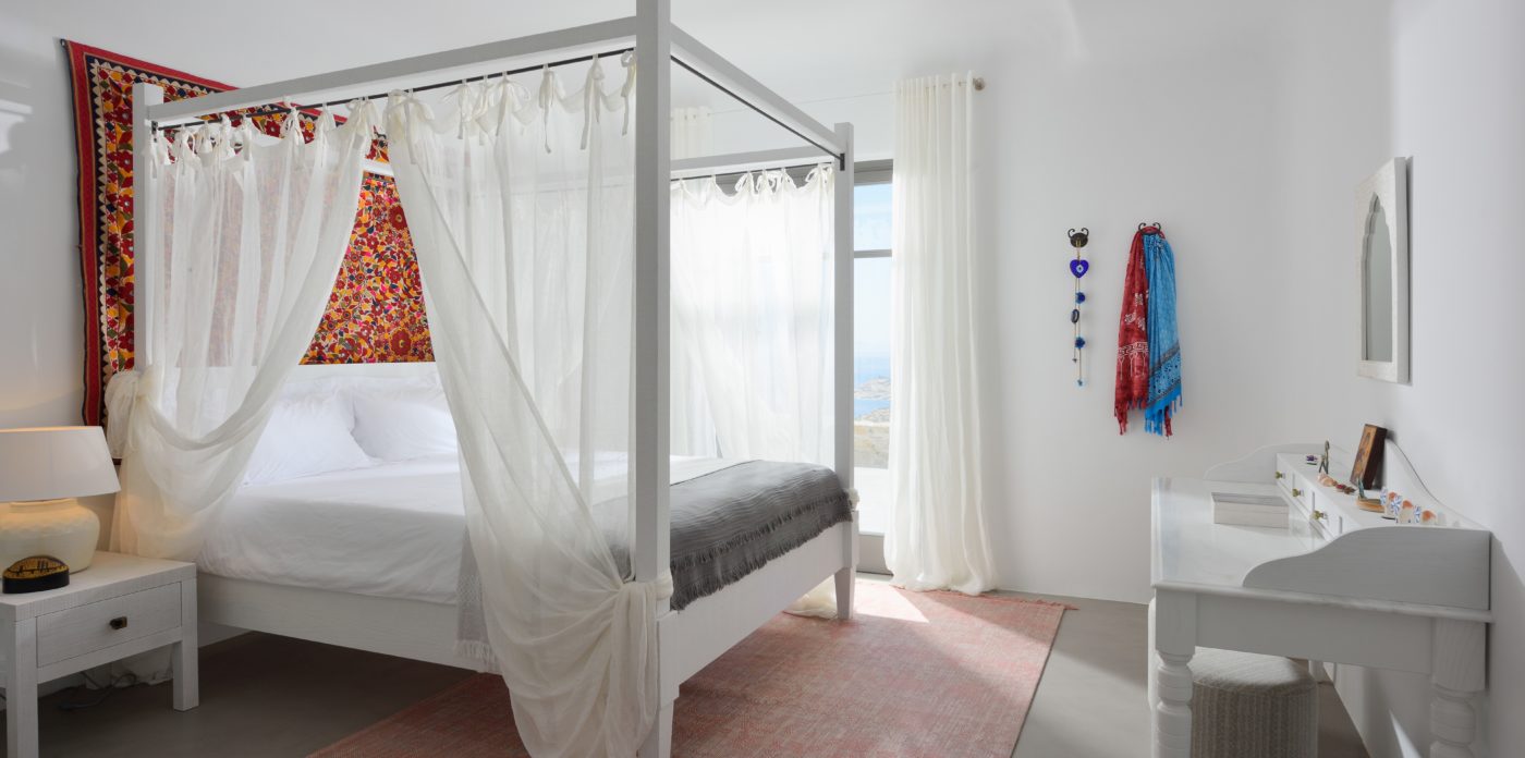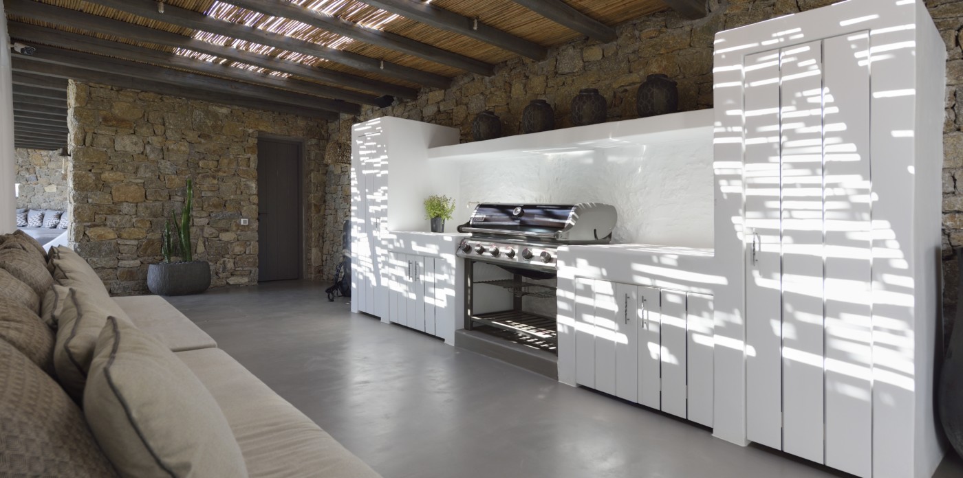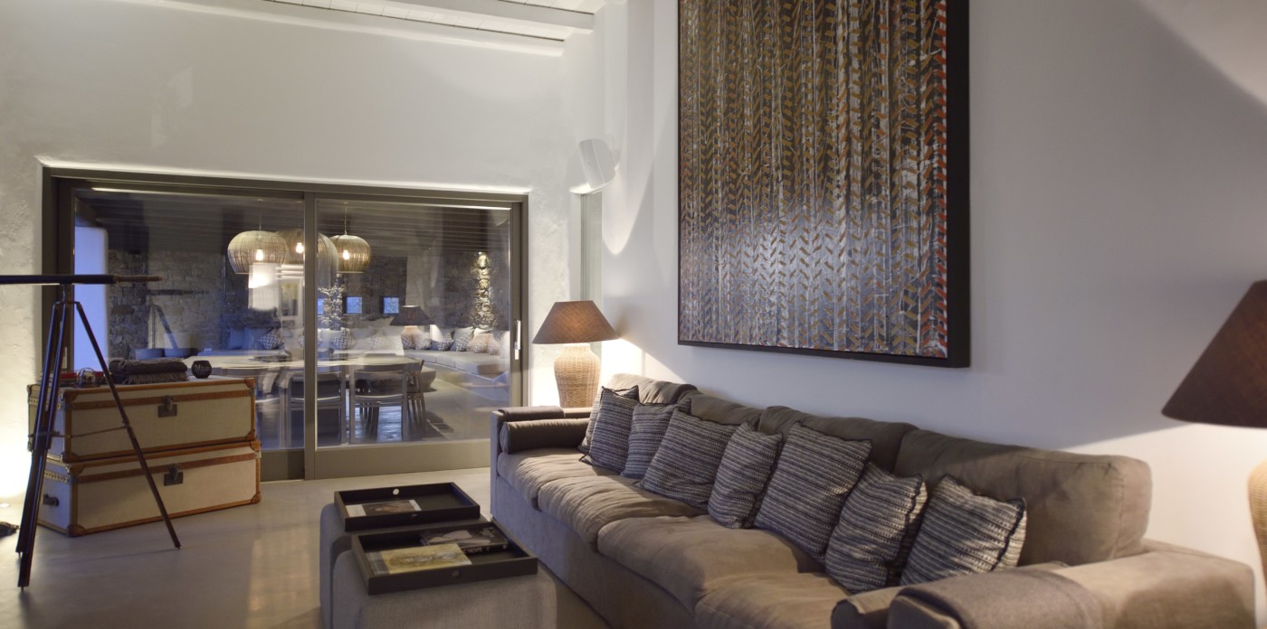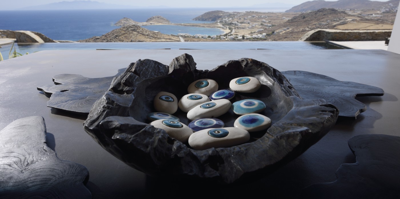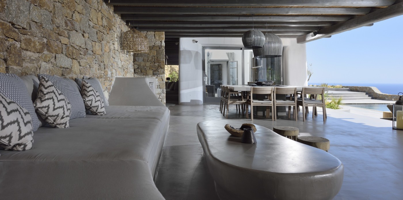Η βίλα 8 υπνοδωματίων βρίσκεται σε έναν λόφο με σαρωτική θέα 180 μοιρών στο Αιγαίο με τη Νάξο μπροστά και την Πάρο στα δεξιά. Έχει σχεδιαστεί από το κατεξοχήν ελληνικό αρχιτεκτονικό γραφείο και το εσωτερικό της έχει σχεδιαστεί από τους Λονδρέζους Sloane & Cadogan, οι οποίοι έχουν ως αποτέλεσμα μια μοναδική σύγχρονη ερμηνεία της παραδοσιακής κυκλαδίτικης αρχιτεκτονικής και σχεδιασμού.