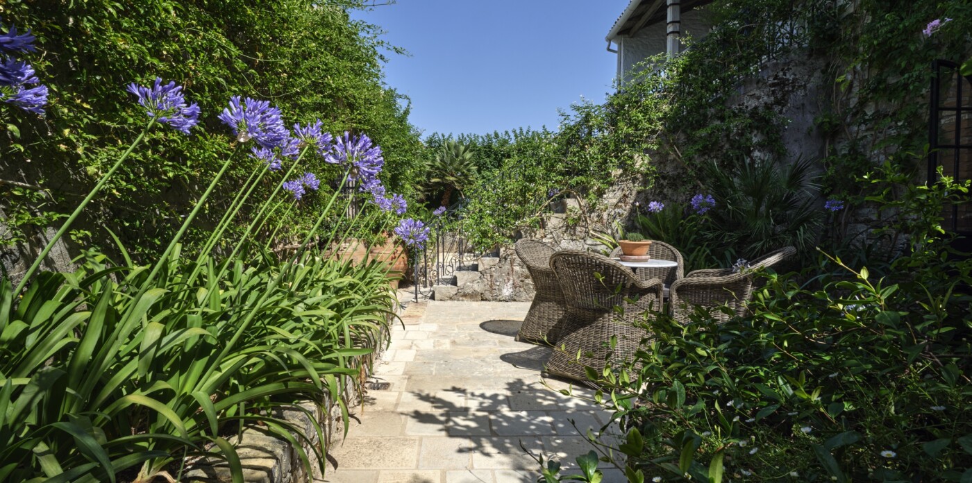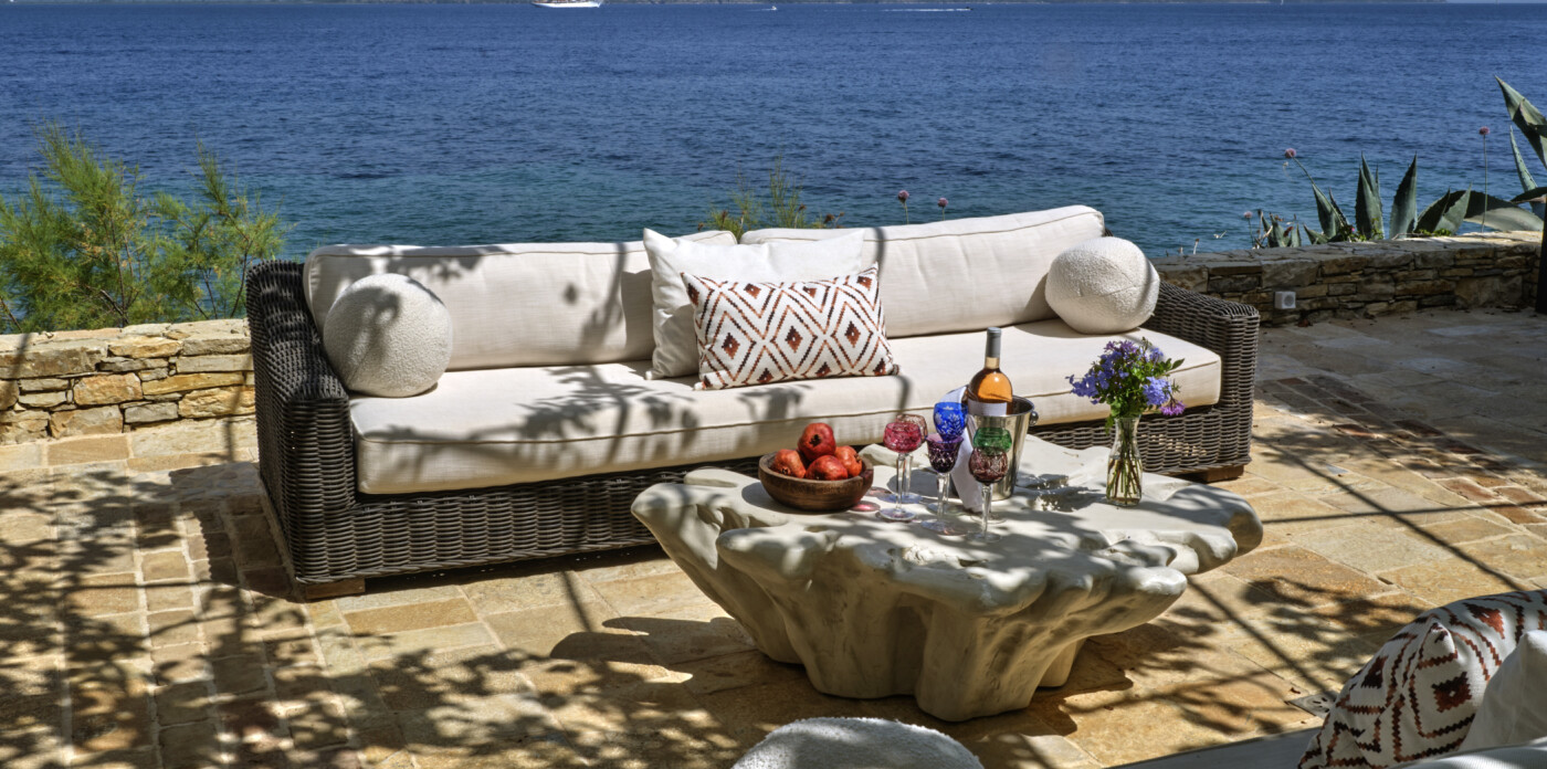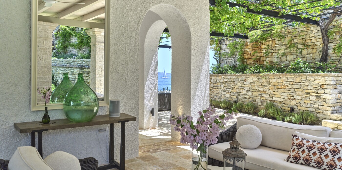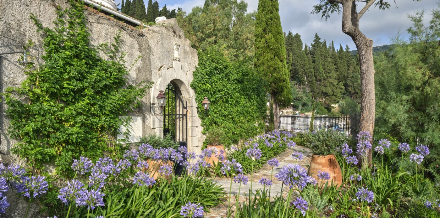 Η βίλα περιβάλλεται από ώριμους μεσογειακούς κήπους, όπου το μεθυστικό άρωμα της σπάνιας και άγριας μακίας αναμειγνύεται με τη θαλασσινή αύρα κατά μήκος της ακτής.