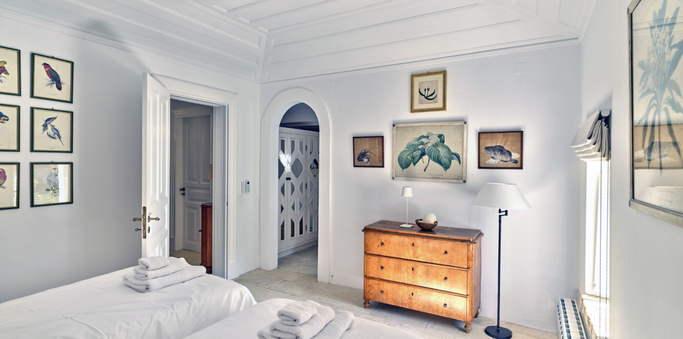 Η κατοικία προσφέρει μια ολοκληρωμένη εμπειρία πολυτέλειας, φιλοξενώντας έως και δεκαοκτώ επισκέπτες στα εννέα καλά εξοπλισμένα υπνοδωμάτια της. Ένας εξειδικευμένος διαχειριστής επιβλέπει μια ολοκληρωμένη σουίτα υπηρεσιών, όπως ιδιωτικό σεφ, θυρωρό, σχολαστικό κηπουρό, συντήρηση της πισίνας και καθημερινή καθαριότητα. Η καρδιά του σπιτιού βρίσκεται στον πρώτο όροφο, όπου σας περιμένουν τέσσερα δίκλινα υπνοδωμάτια με ιδιωτικό μπάνιο, συμπεριλαμβανομένης μιας μεγάλης κύριας σουίτας με το δικό της ιδιωτικό καθιστικό.