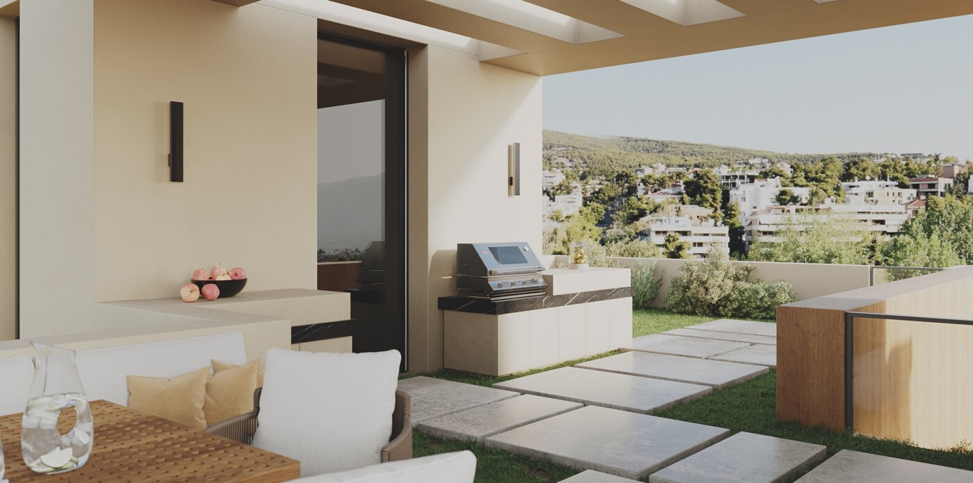 Alden is situated in the prestigious Kifissia-Kefalari district of Athens. This desirable neighborhood is renowned for its peaceful streets, leafy surroundings, and proximity to high-end amenities, providing the perfect balance of tranquility and vibrant city living.
